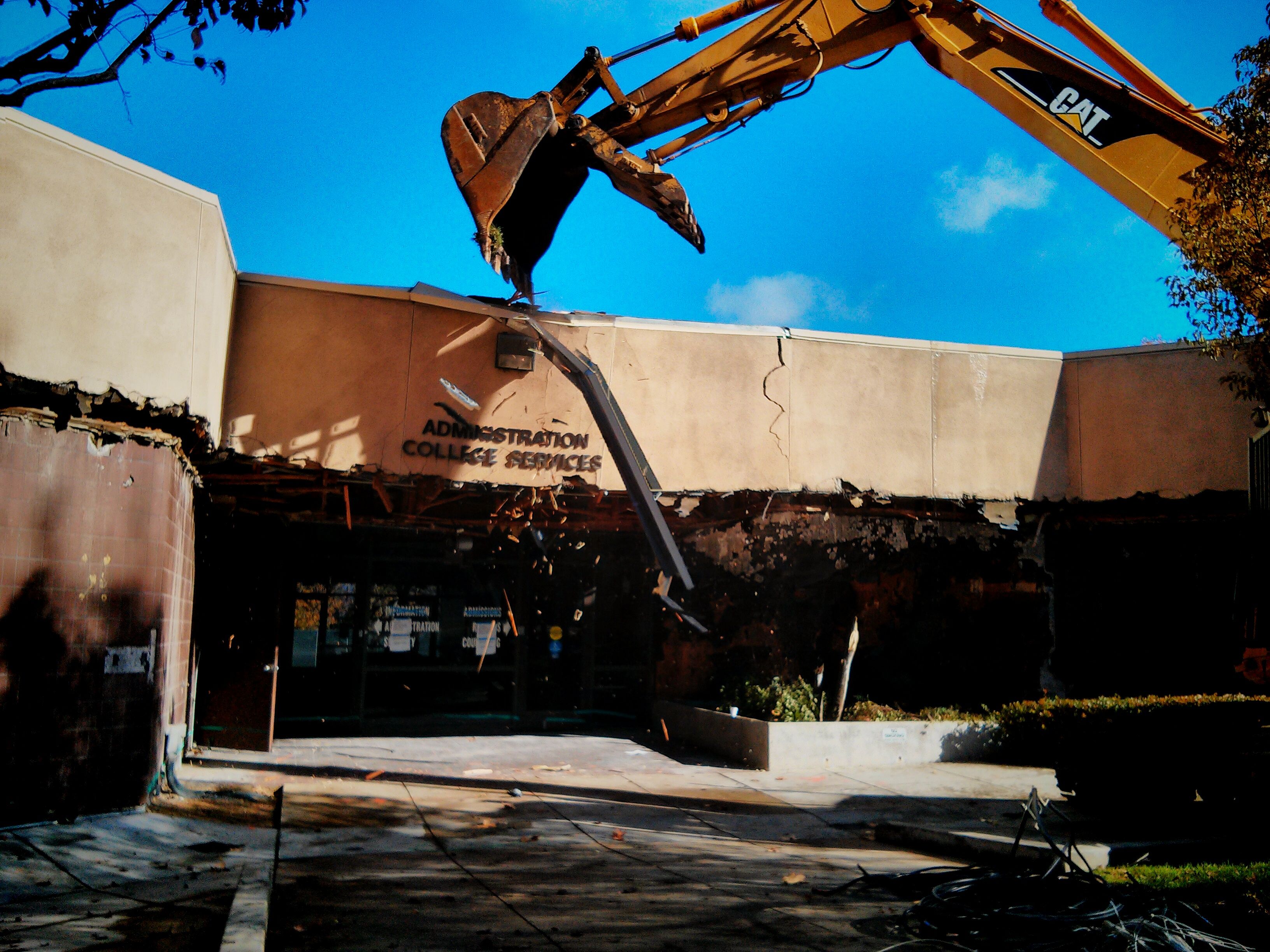 Those are the three sounds that resonated last December from the location of one of the oldest campus buildings at College of the Canyons, as the college began the demolition phase of the replacement plan for the campus’ Administration and Records building.