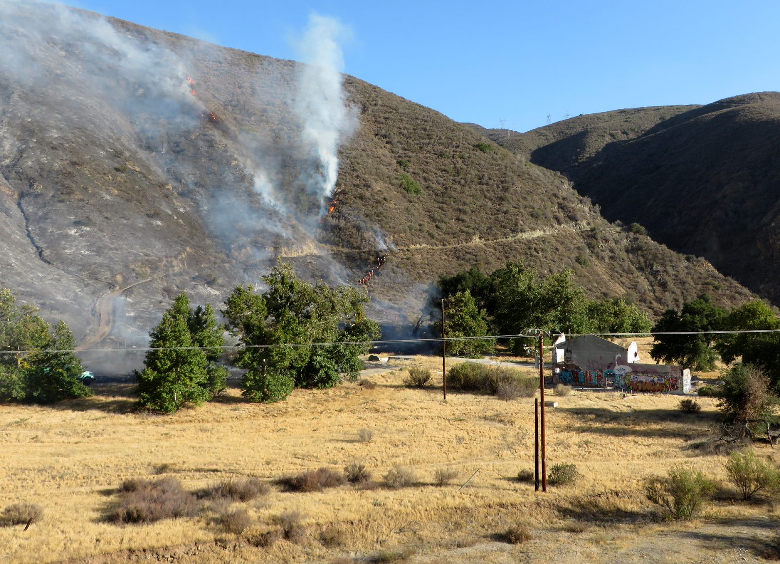 Uploaded 08/09/2013 A brush fire has charred 60 acres of brush near San Francisquito Canyon Road and Bee Canyon Road, north of Santa Clarita. San Francisquito Canyon Road has been shut down.