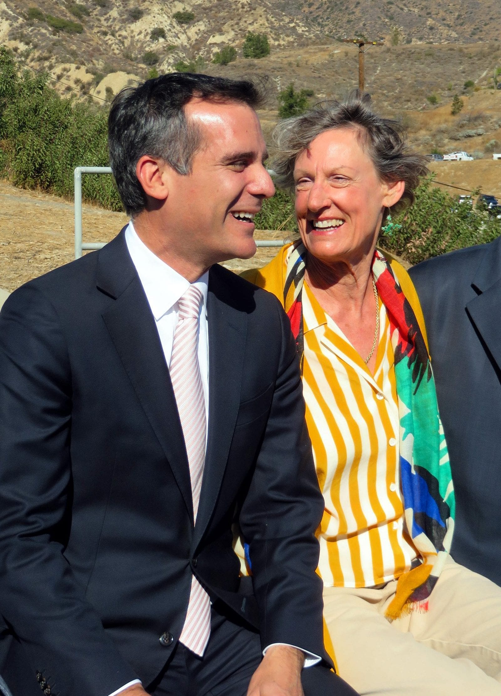 Uploaded 11/05/2013 The City of Los Angeles Department of Water and Power marked the 100th anniversary of the initial completion of the L.A. Aqueduct on Nov. 5, 2013, with a celebration at the Cascades in Sylmar (the man-made waterfall you see off to the side of the freeway when you return home to the Santa Clarita Valley from down below). The highlight of the event was a series of scripted speeches delivered by actors portraying important figures in the water story such as aqueduct engineer William Mulholland; L.A. Mayor and wheeler-dealer Fred Eaton; and newspaper mogul-turned-land baron Harry Chandler. Real-life dignitaries seen in these photos include L.A.’s new mayor, Eric Garcetti; Eaton’s great-grandson (seen at left in group photos); Mulholland’s great-granddaughter Christine Mulholland (wearing yellow); and L.A. City Councilman Tom LaBonge (at right in group photos).