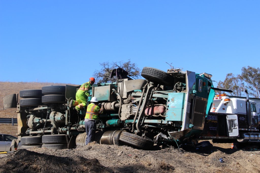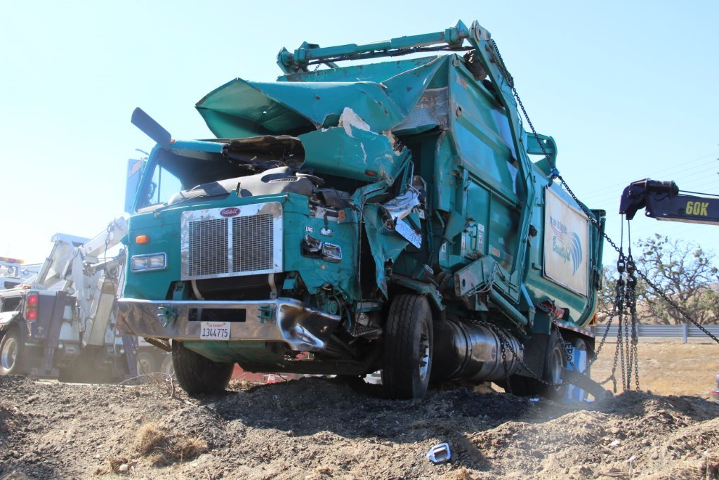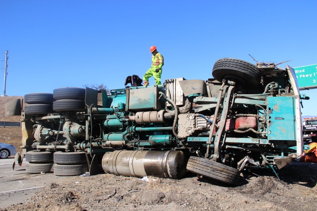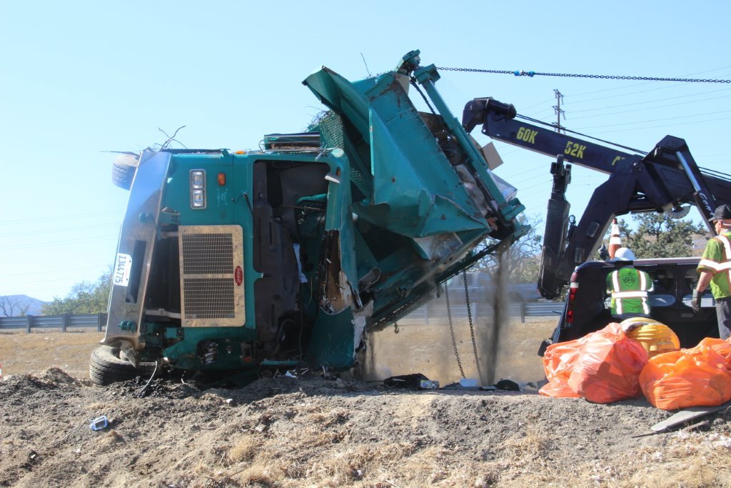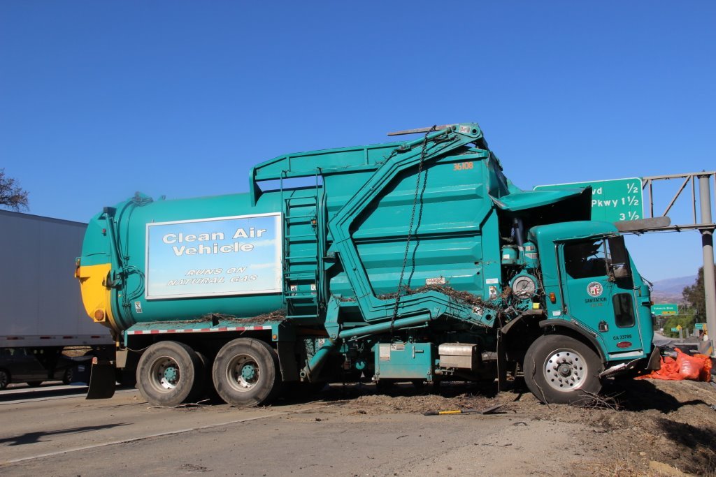 Trash Truck Overturned, North 5 at Valencia, 8am