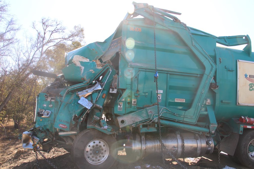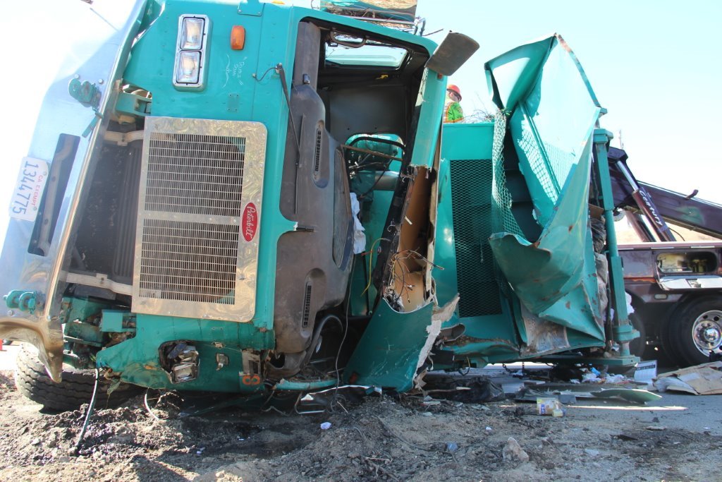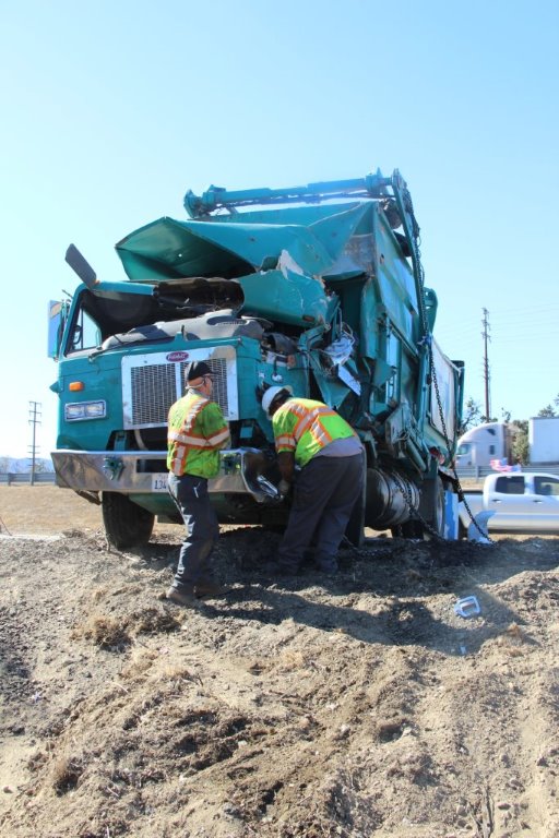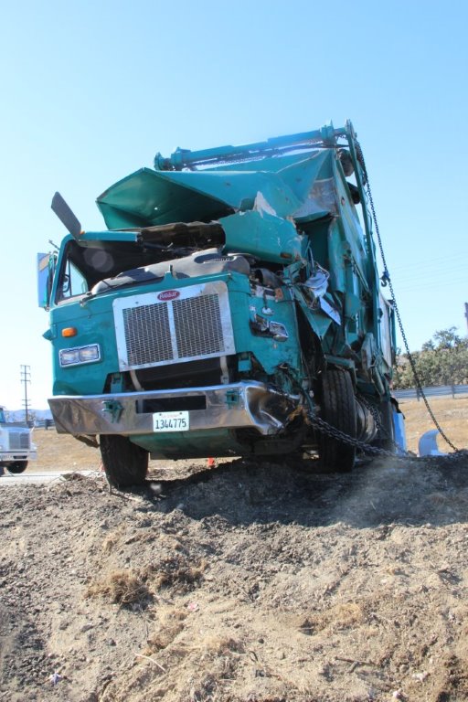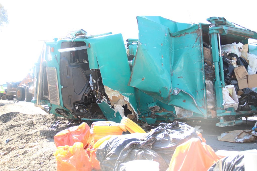Trash Truck Overturned, North 5 at Valencia, 8am