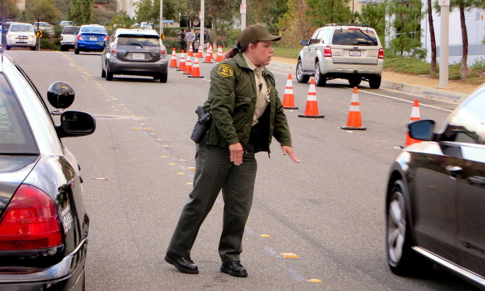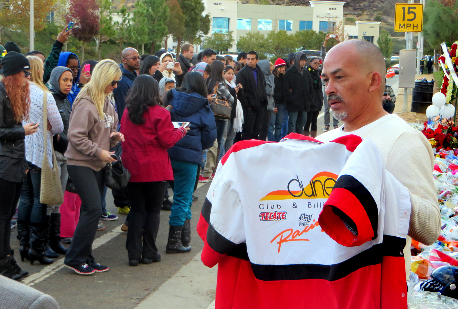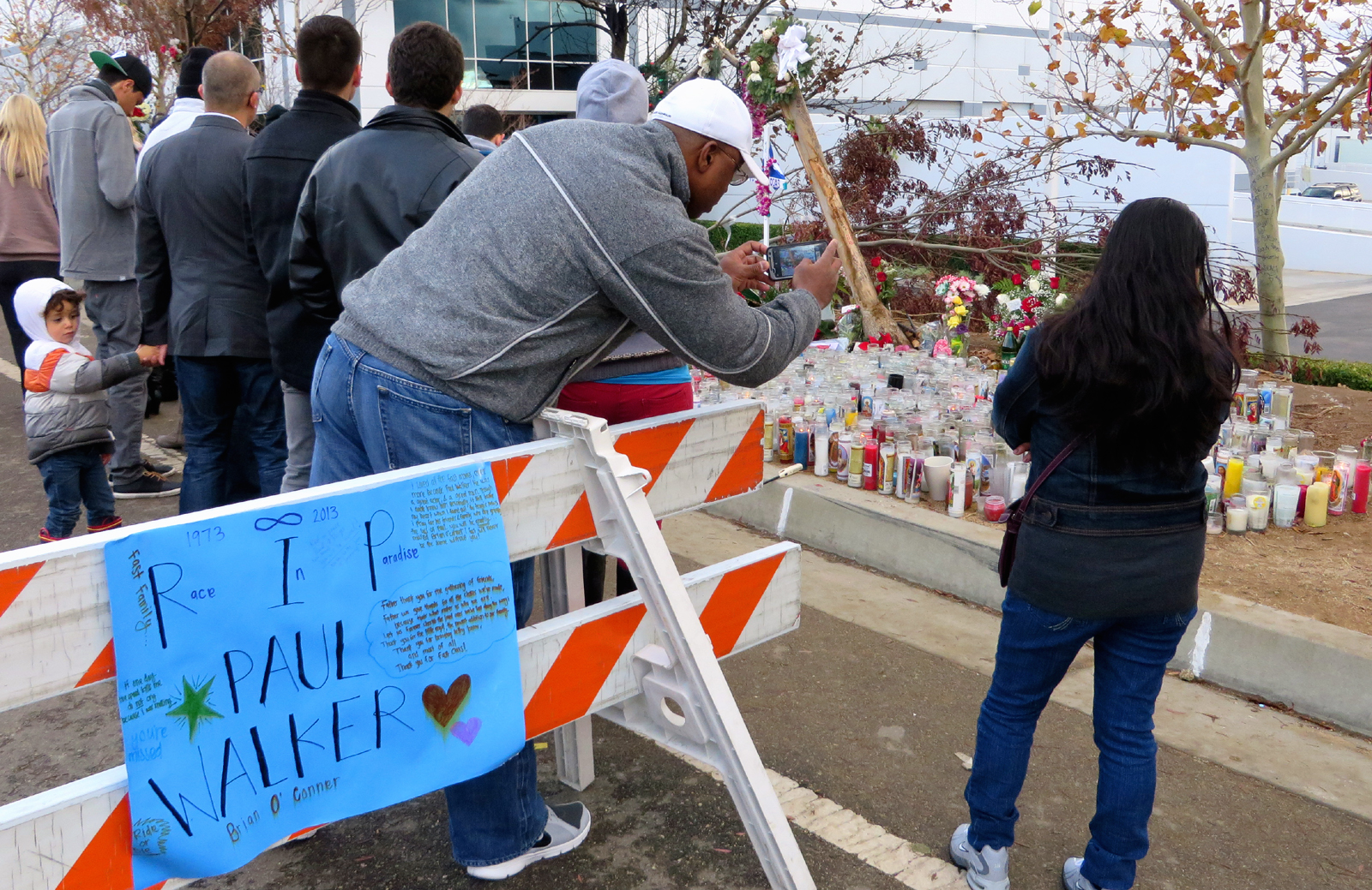 Uploaded 12/07/2013 A steady stream of humanity has filtered through Valencia’s Rye Canyon Business Park ever since actor Paul Walker and racecar driver Roger Rodas lost their lives there one week ago. The crowd is expected to intensify as Sunday’s impromptu memorial service approaches. Deputies were out in force again Saturday, providing traffic control and patrolling the area. All businesses in the Kelly Johnson Parkway-Constellation Road area have cordoned off their parking lots, and most have hired private security guards to keep people out. Sunday’s memorial, slated for noon, isn’t sanctioned by the city of Santa Clarita, so there is no formal parking plan. The city and Sheriff’s Department advise residents to avoid the area.