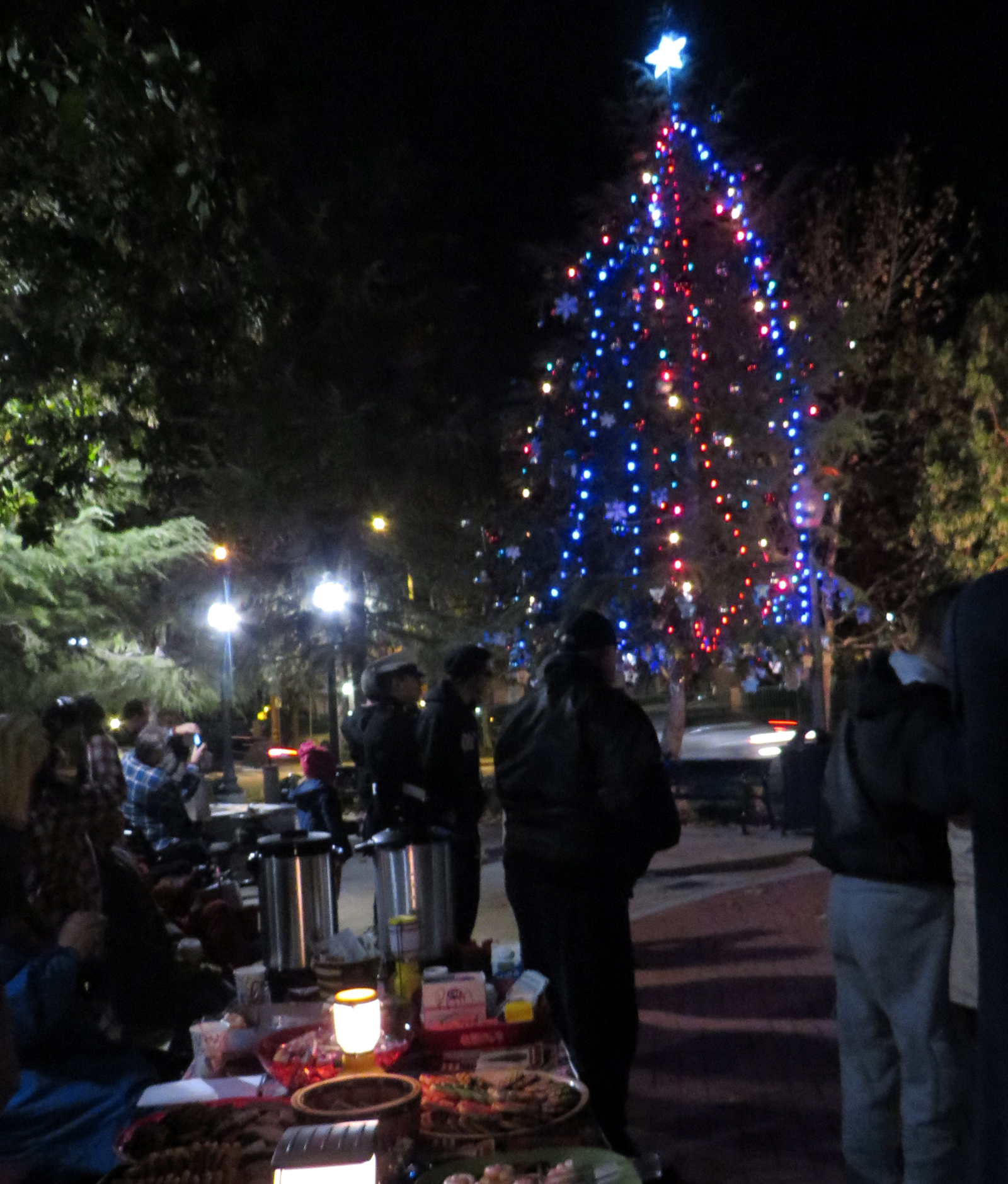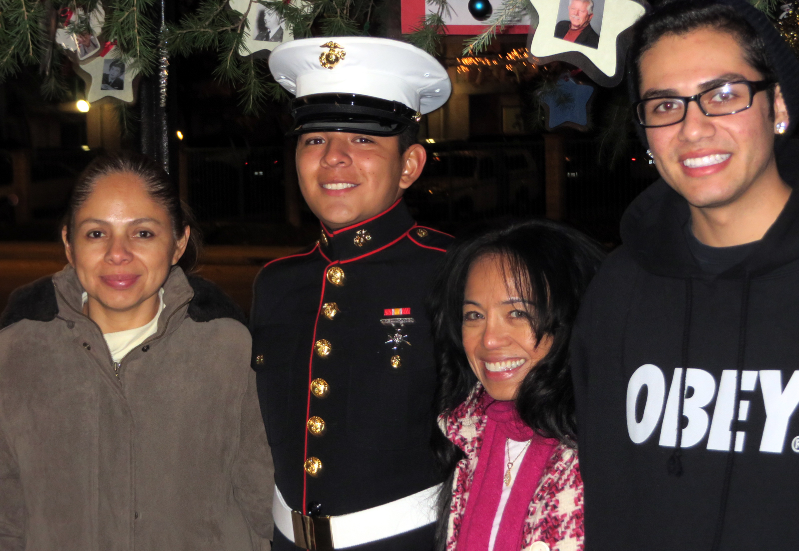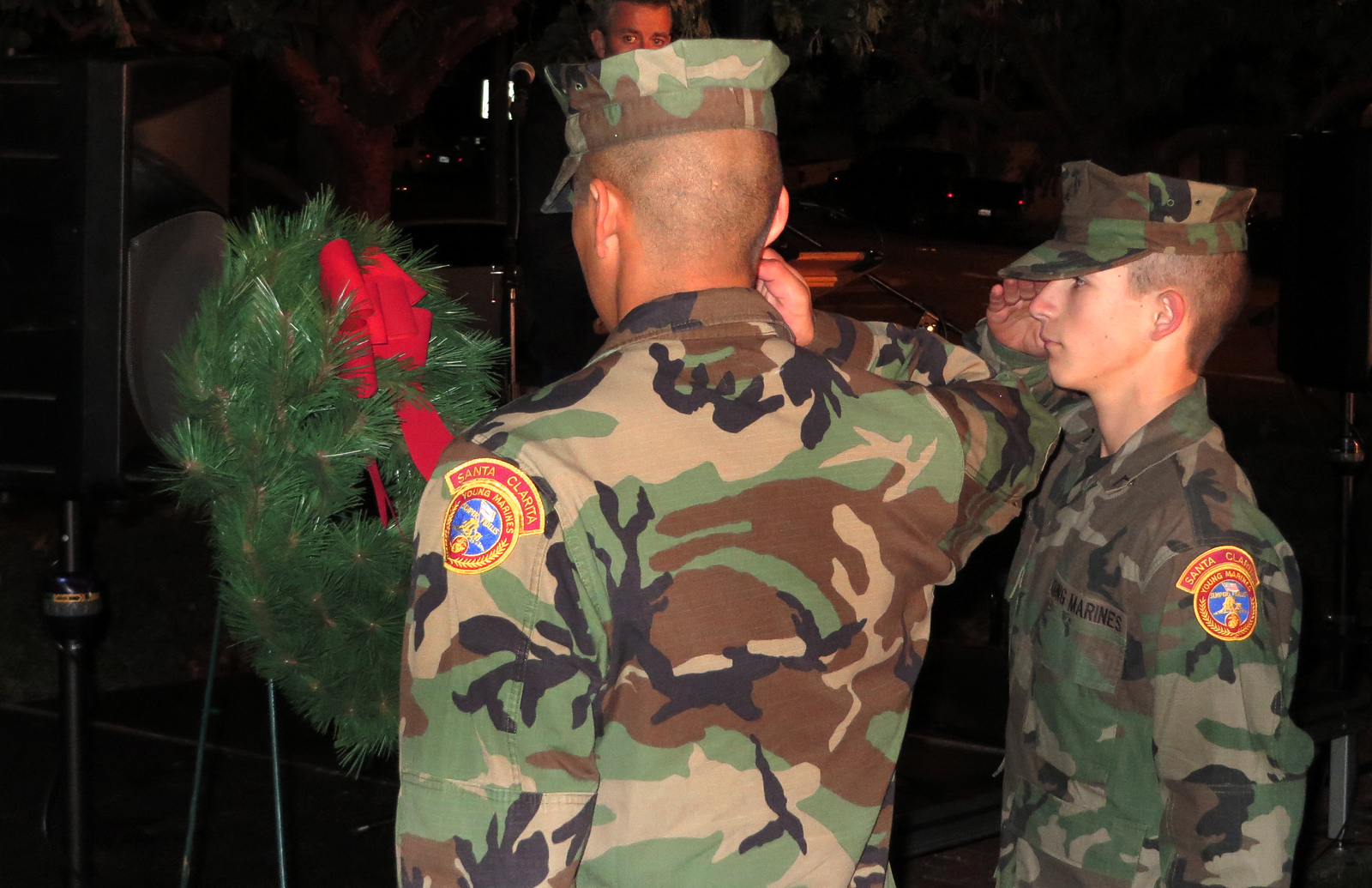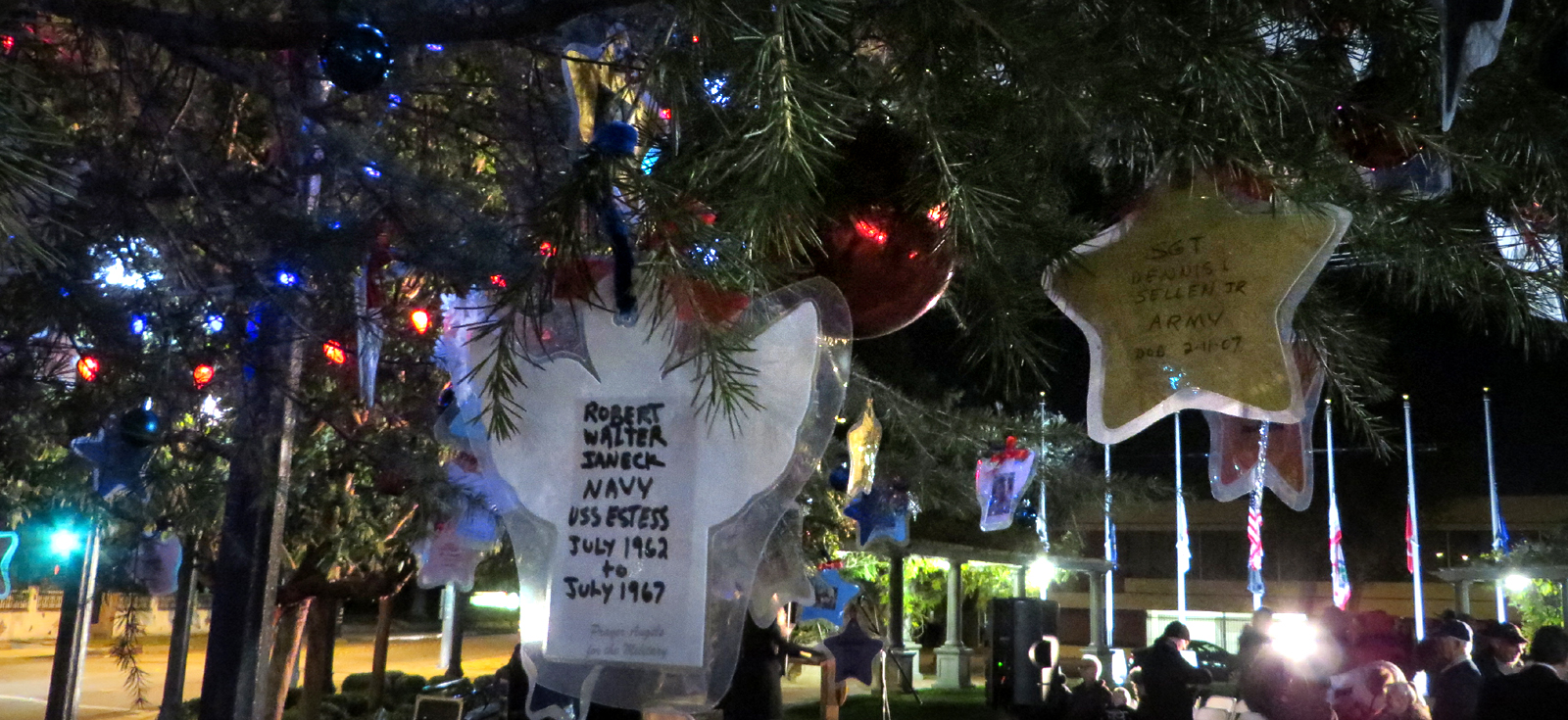 Uploaded 12/07/2013 Santa Clarita celebrated the annual lighting of the Military Honor Christmas Tree on Saturday night at Veterans Historical Plaza in Newhall. The tree honors all local military personnel, past and present. Prayer Angels for the Military, the SCV Young Marines and members of other military support groups were on hand for the event, which included Christmas carols, patriotic speeches and cupcakes. Setup took place Friday, thanks in part to the Prayer Angels, the city of Santa Clarita Parks Department and Andy Gump Inc., which sent a truck and a crew. Emceed by Fred Arnold, Saturday’s lineup included the following: – Pastor John Shaver of Valencia United Methodist Church (invocation) – PVT Alexis Valencia, USMC Camp Pendleton (Pledge of Allegiance) – Hart High School Carolers (National Anthem) – Councilwoman Marsha McLean (Recognition of Service Members & Veterans) – Actor Bob Zachar (Singing “The Christmas Song” and “White Christmas”) – Chuck Morris, Korean War Veteran (Keynote address) – Councilman TimBen Boydston (Recognition of Gold Star Families) – Author/Producer Marilyn Hackett (singing “I’ll Be Home for Christmas”) – SCV Young Marines (Wreath presentation donated by Prayer Angels for the Military/Suzon Gerstel) Light refreshments were provided by iDare Inc. / Nicky Dare, National Association of Professional Women