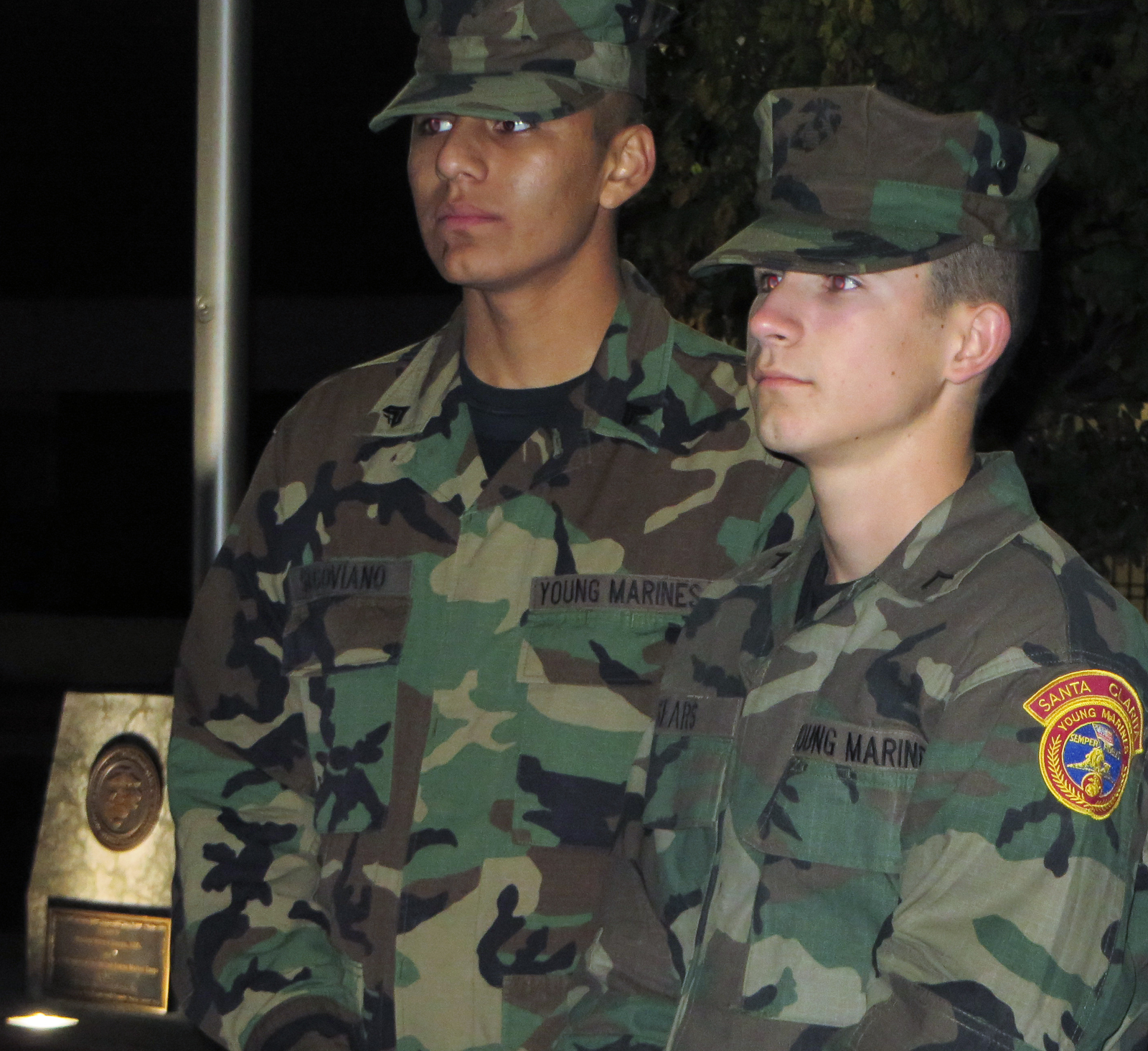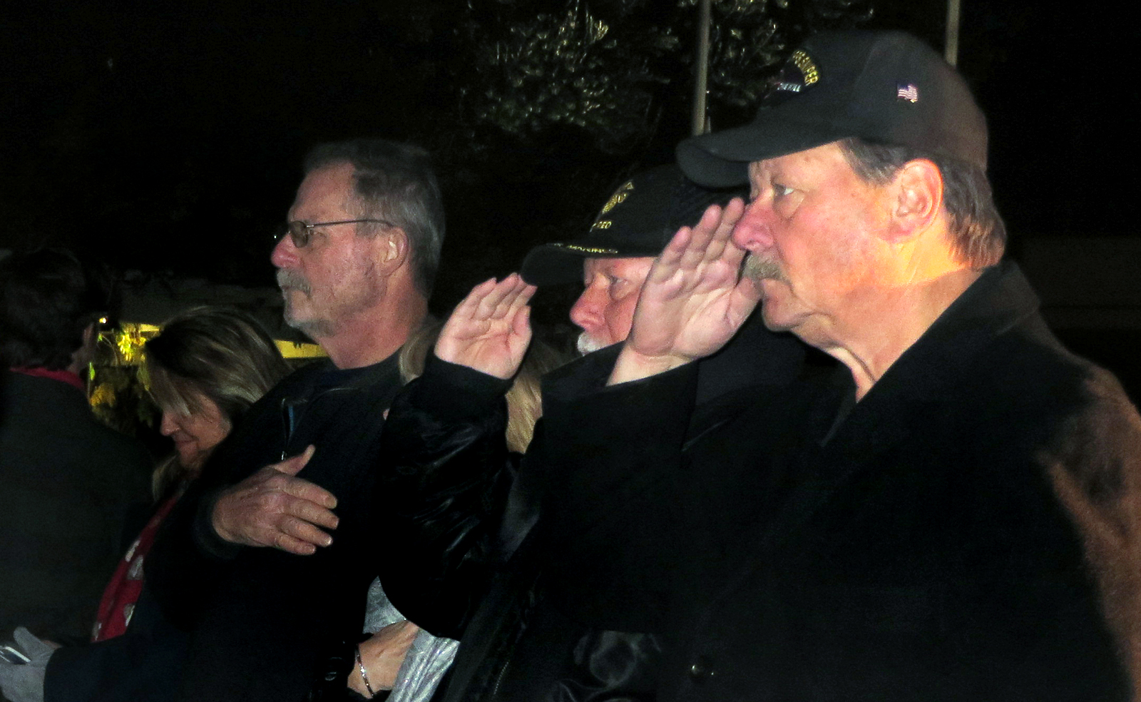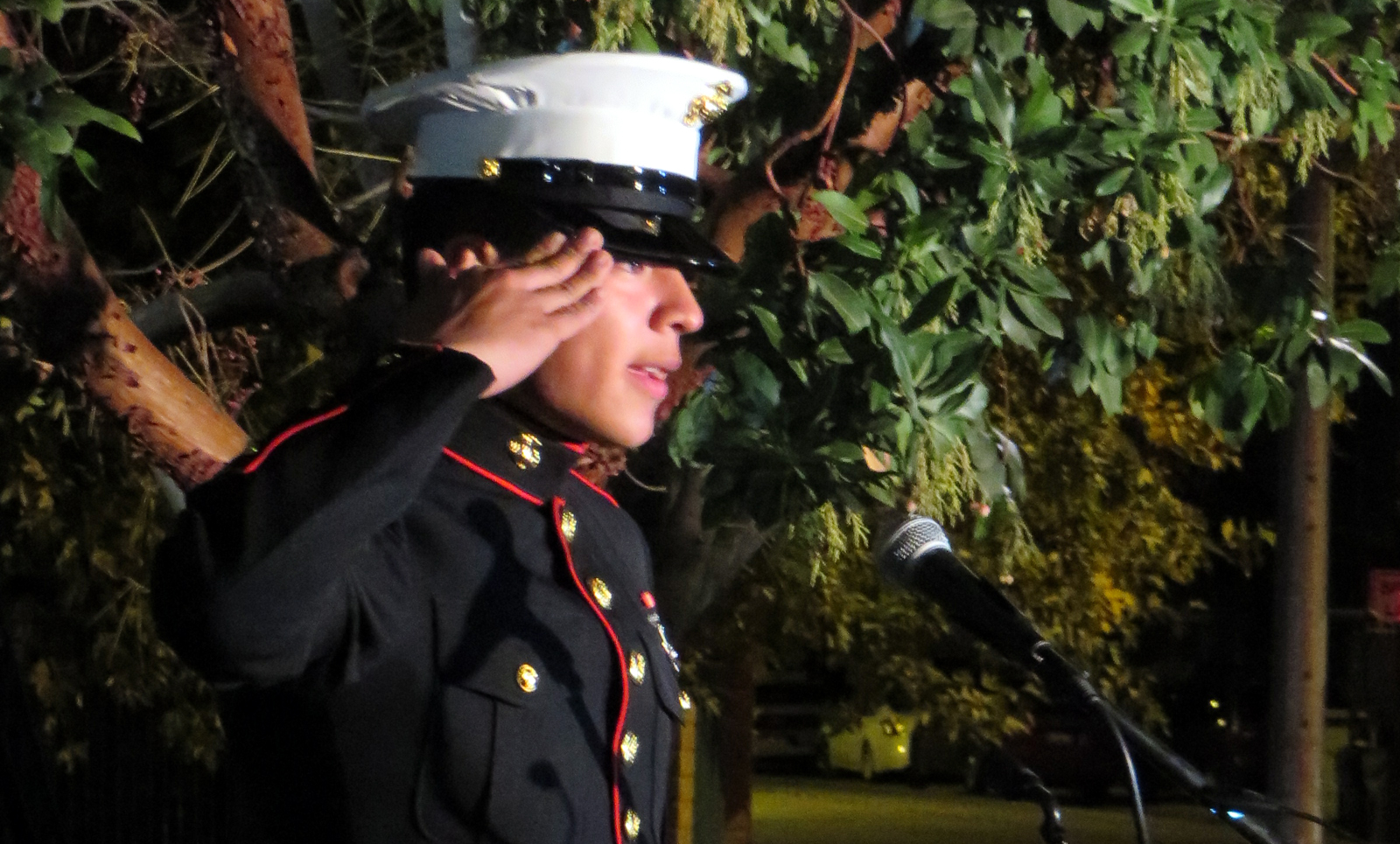 Uploaded 12/07/2013 Santa Clarita celebrated the annual lighting of the Military Honor Christmas Tree on Saturday night at Veterans Historical Plaza in Newhall. The tree honors all local military personnel, past and present. Prayer Angels for the Military, the SCV Young Marines and members of other military support groups were on hand for the event, which included Christmas carols, patriotic speeches and cupcakes. Setup took place Friday, thanks in part to the Prayer Angels, the city of Santa Clarita Parks Department and Andy Gump Inc., which sent a truck and a crew. Emceed by Fred Arnold, Saturday’s lineup included the following: – Pastor John Shaver of Valencia United Methodist Church (invocation) – PVT Alexis Valencia, USMC Camp Pendleton (Pledge of Allegiance) – Hart High School Carolers (National Anthem) – Councilwoman Marsha McLean (Recognition of Service Members & Veterans) – Actor Bob Zachar (Singing “The Christmas Song” and “White Christmas”) – Chuck Morris, Korean War Veteran (Keynote address) – Councilman TimBen Boydston (Recognition of Gold Star Families) – Author/Producer Marilyn Hackett (singing “I’ll Be Home for Christmas”) – SCV Young Marines (Wreath presentation donated by Prayer Angels for the Military/Suzon Gerstel) Light refreshments were provided by iDare Inc. / Nicky Dare, National Association of Professional Women