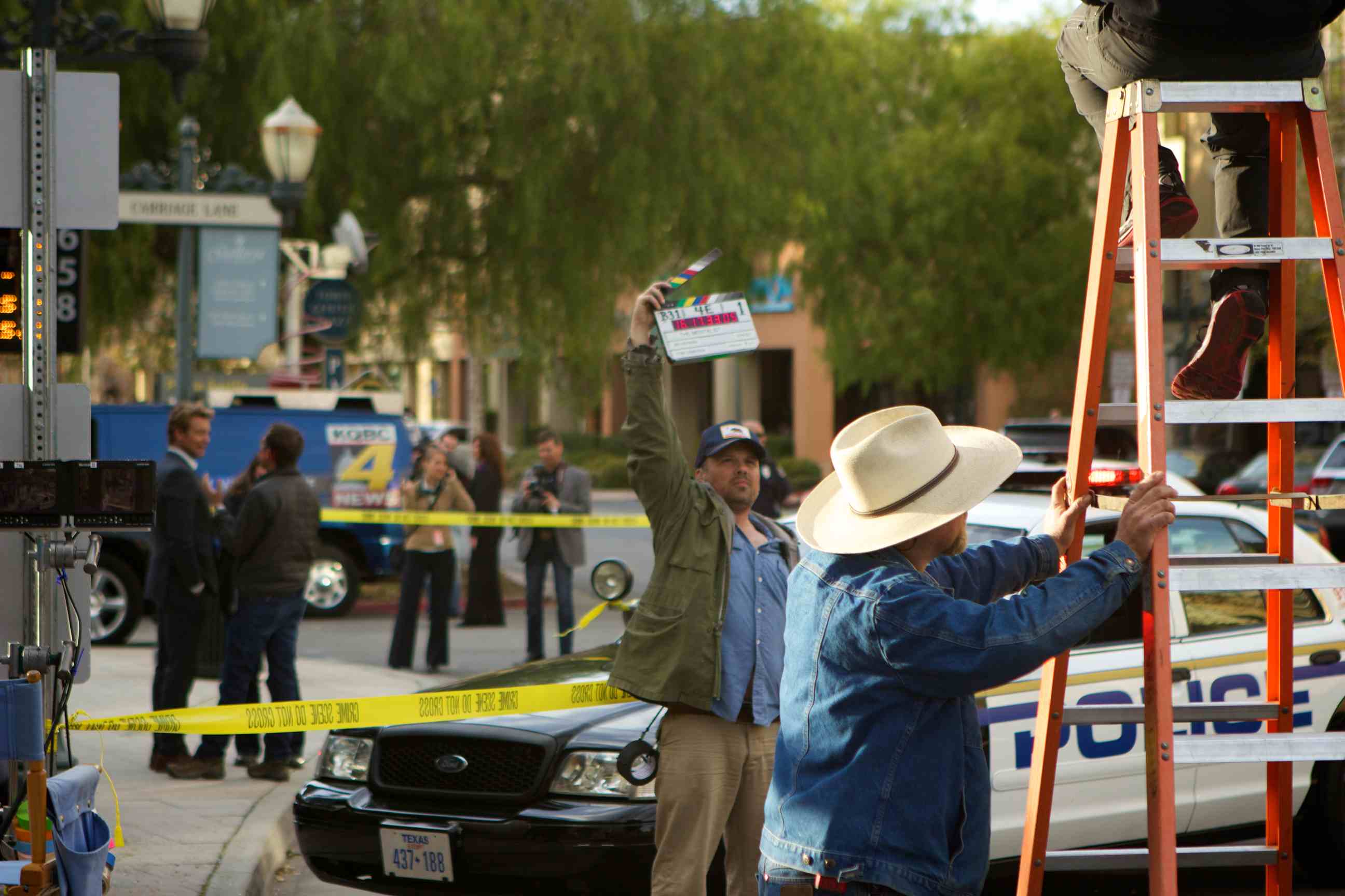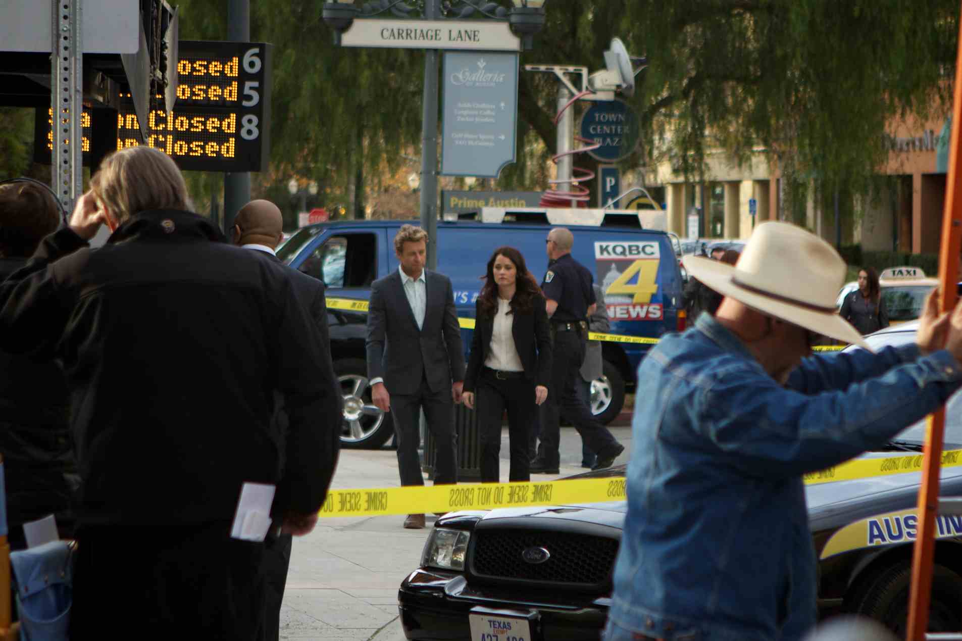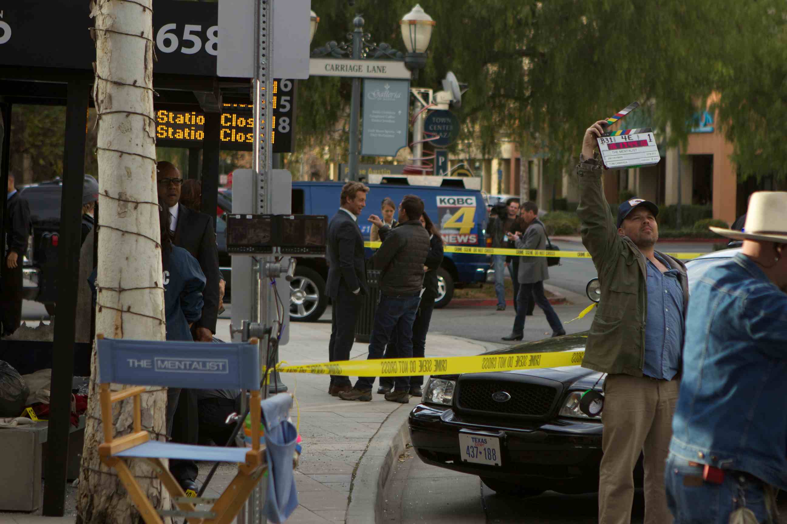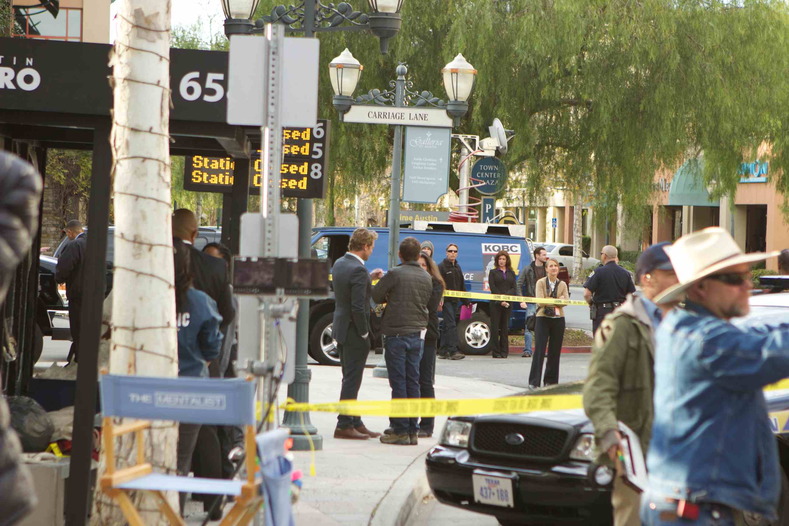 The sight of a blown up bus stop, the FBI, the bomb squad and Texas police cars caught the eyes of a few looky-loos near the Hyatt Regency Valencia hotel on Tuesday. Fear not: It was just another day on set of “The Mentalist.”