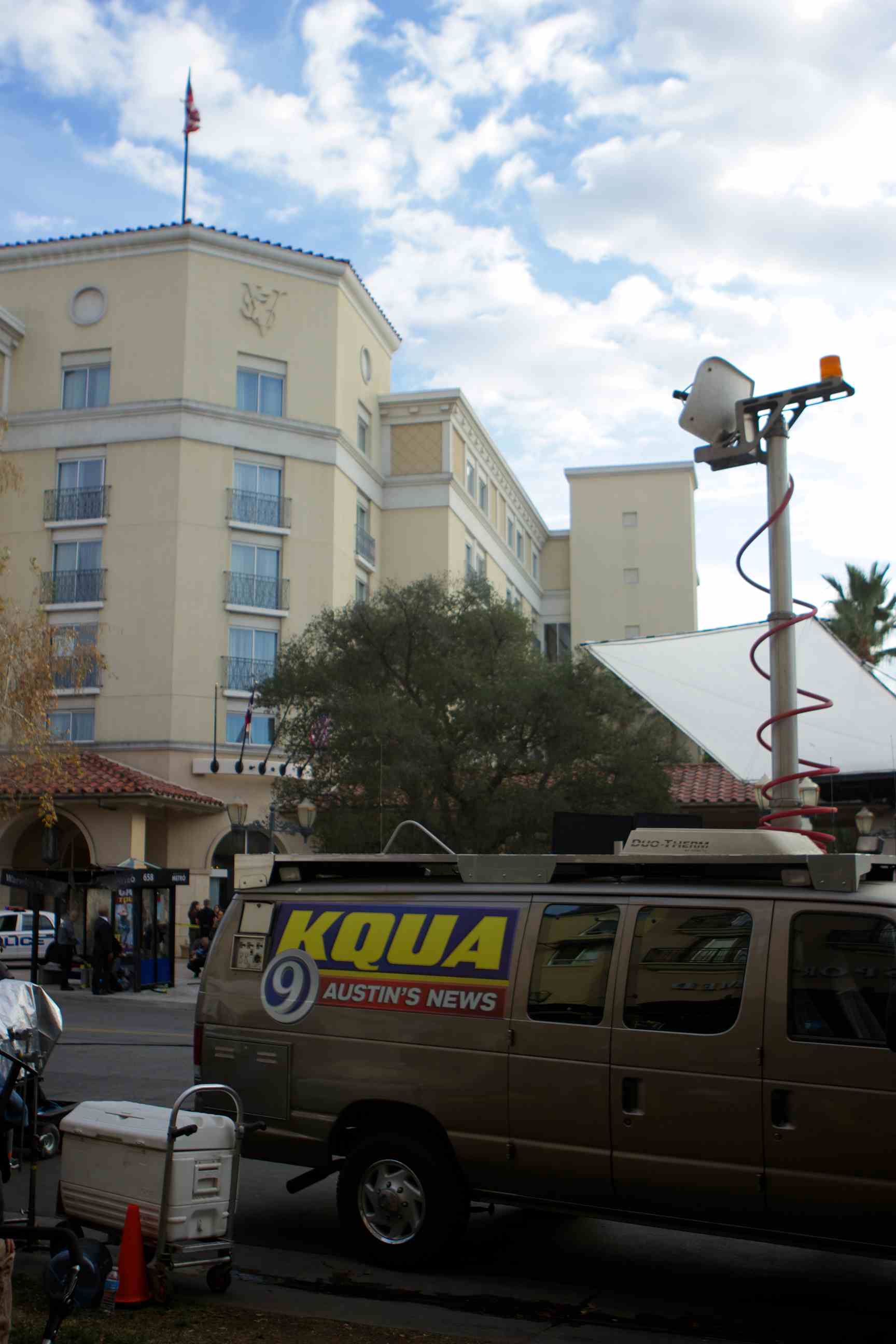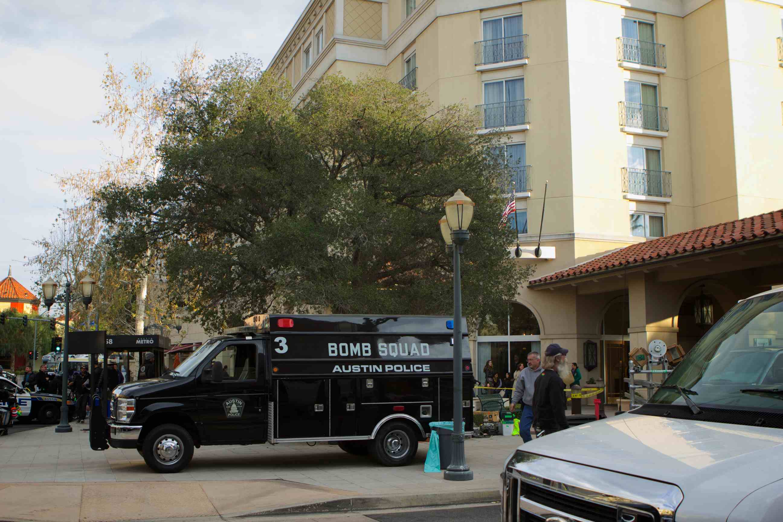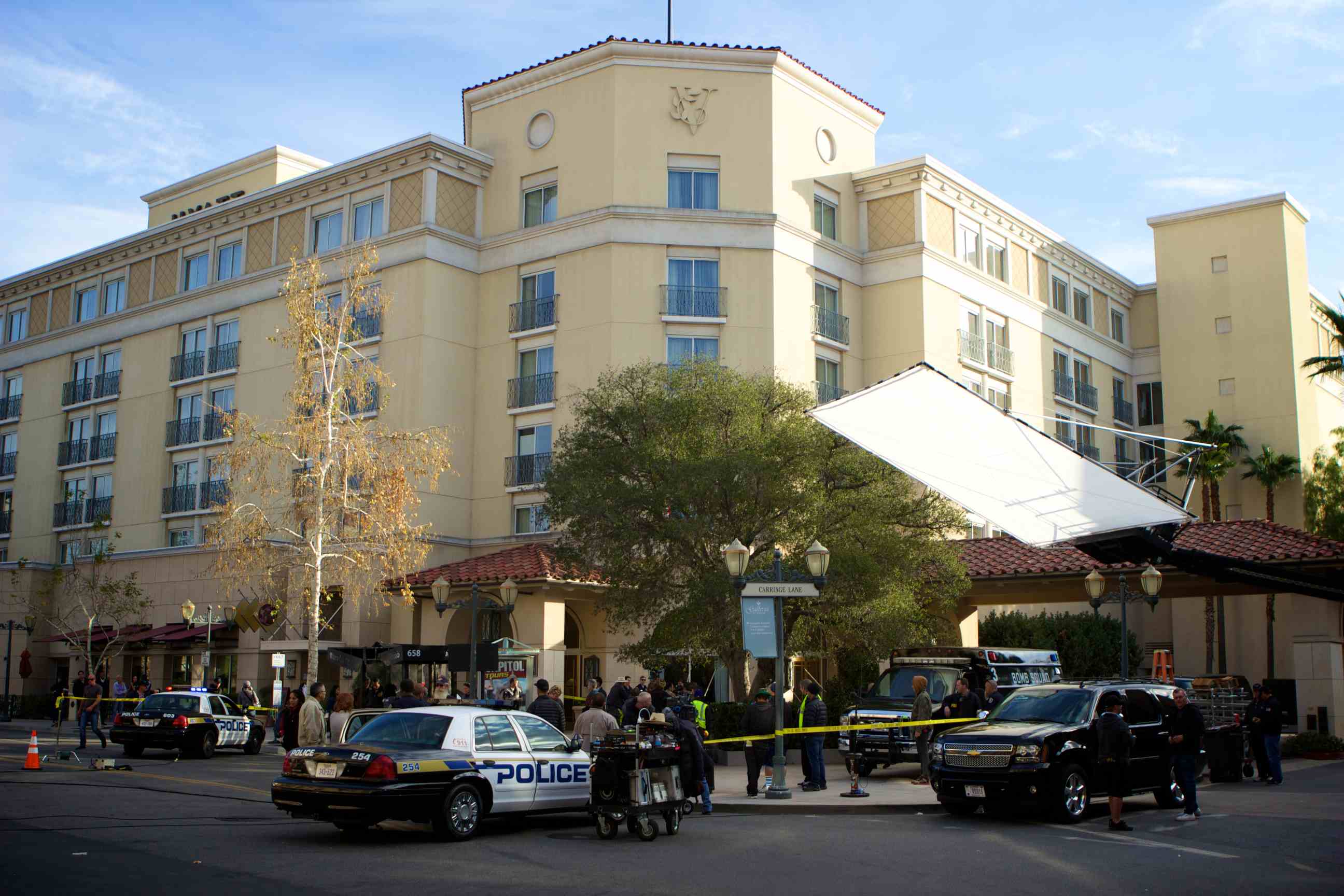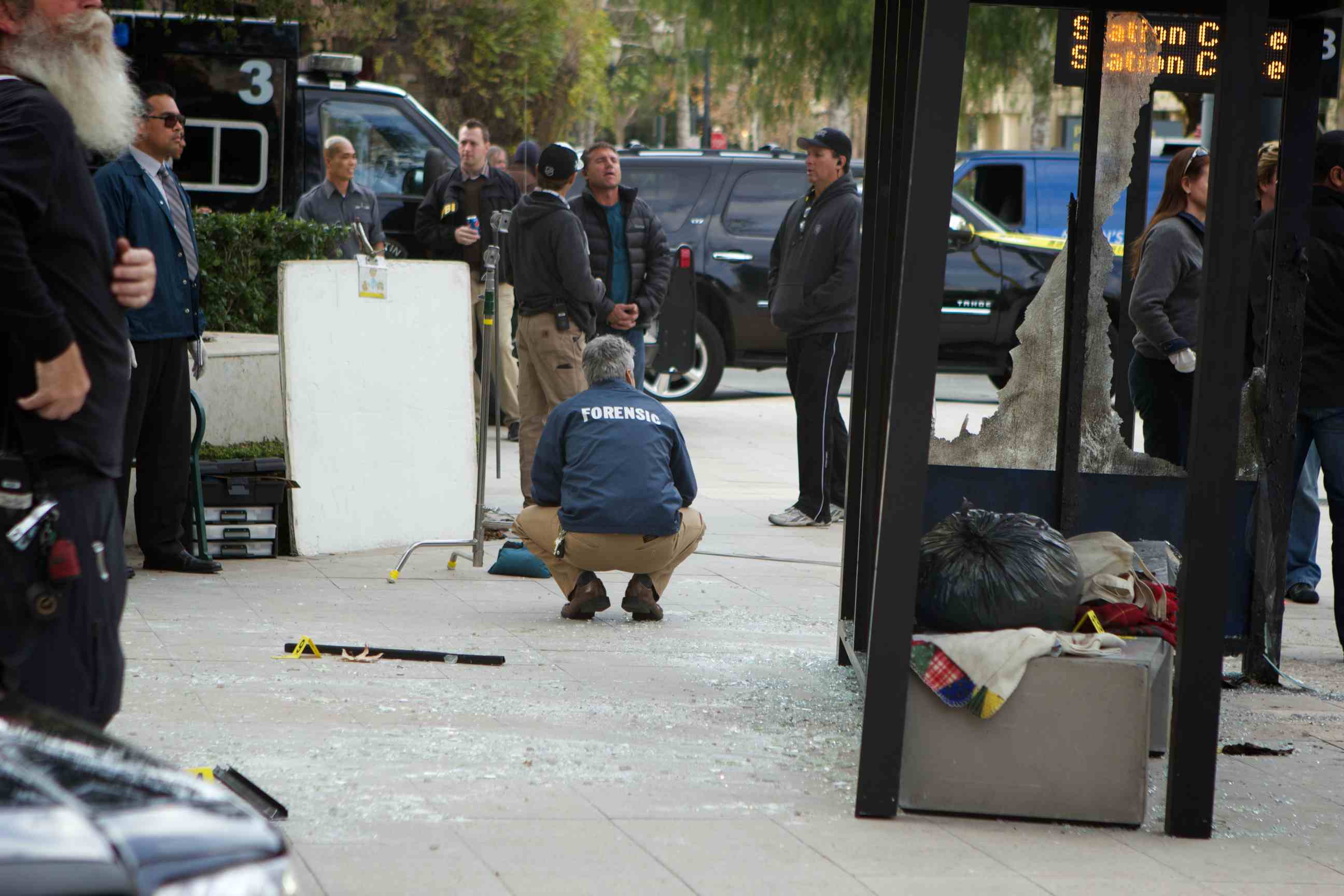 The sight of a blown up bus stop, the FBI, the bomb squad and Texas police cars caught the eyes of a few looky-loos near the Hyatt Regency Valencia hotel on Tuesday. Fear not: It was just another day on set of “The Mentalist.”