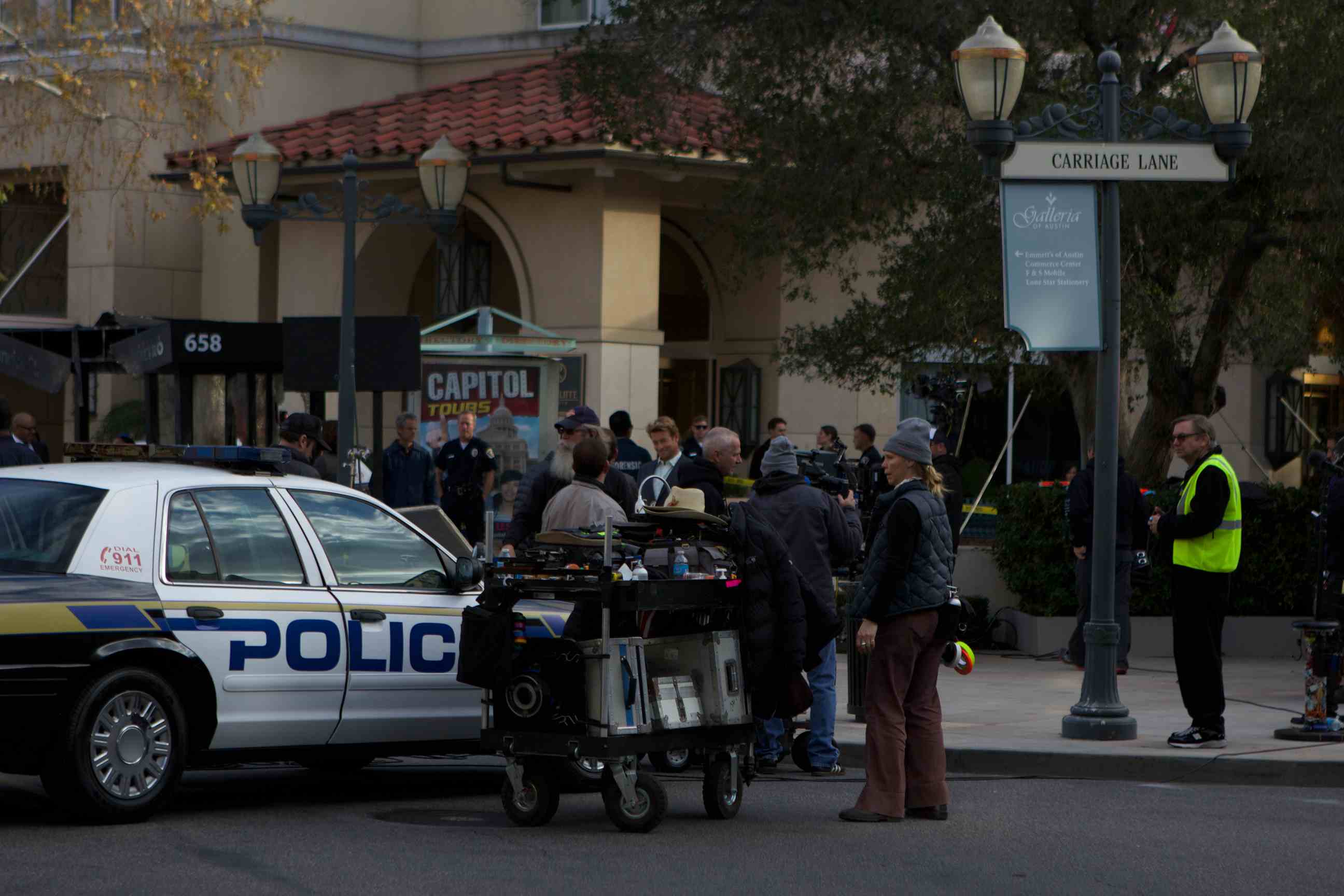 I quickly looked over and was wondering what was happening. Once I saw the cars said Police I realized they were filming.