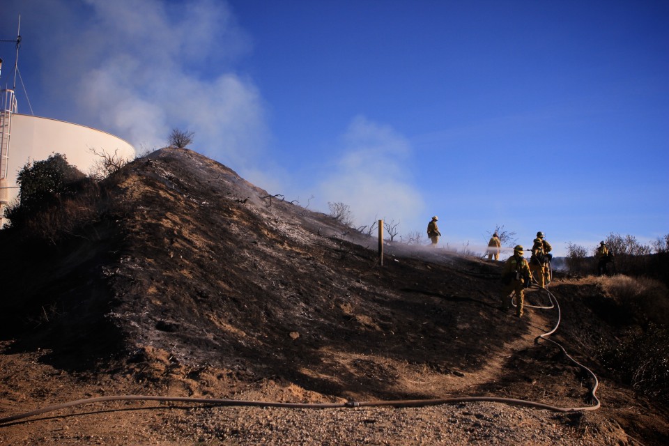 Firefighters made quick work of the Briardale Fire near Creekside Drive and Briardale Way in Newhall this afternoon. The blaze broke out after 3:00 p.m. and was contained nearly an hour later. With support in the air, firefighters held the blaze to half an acre.