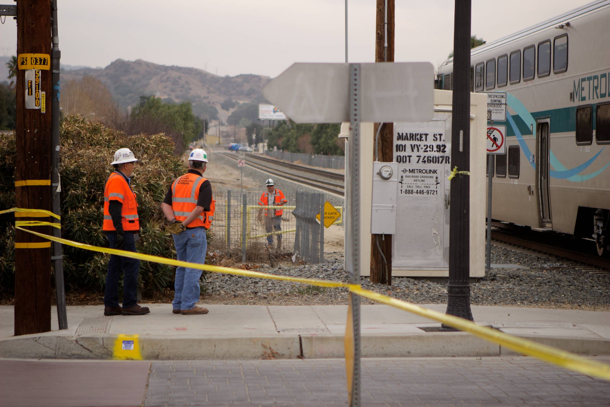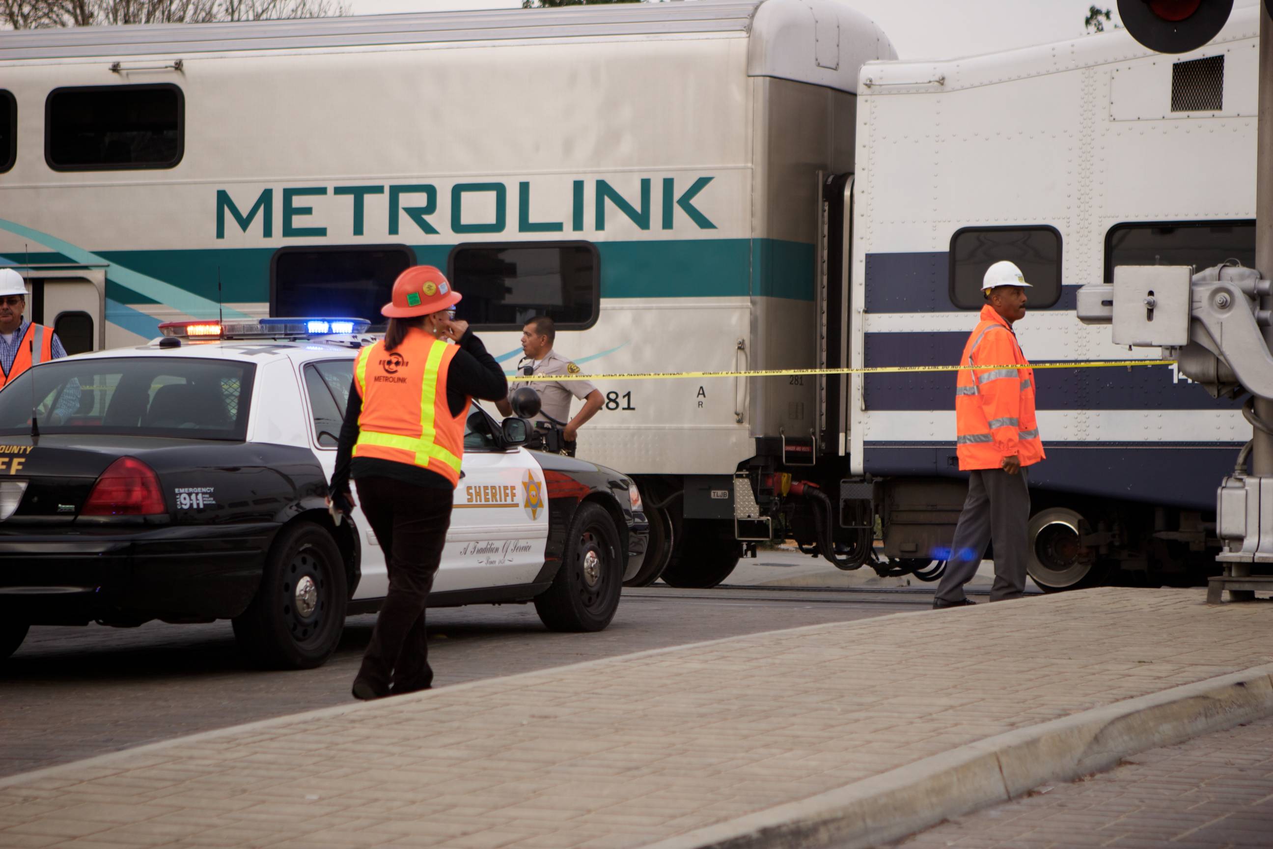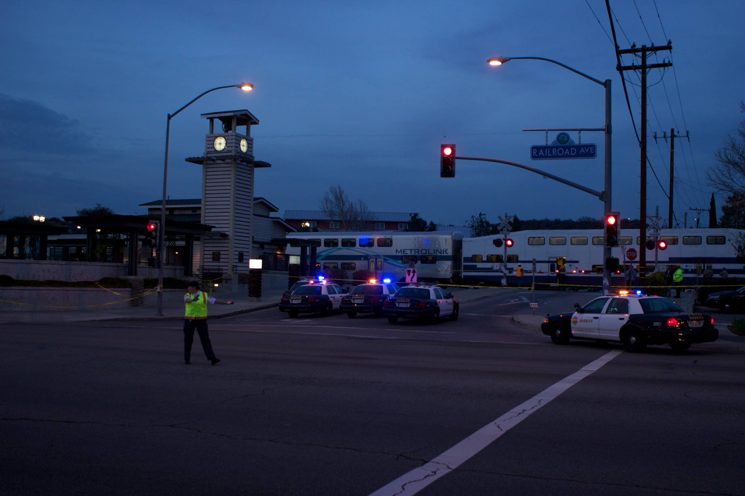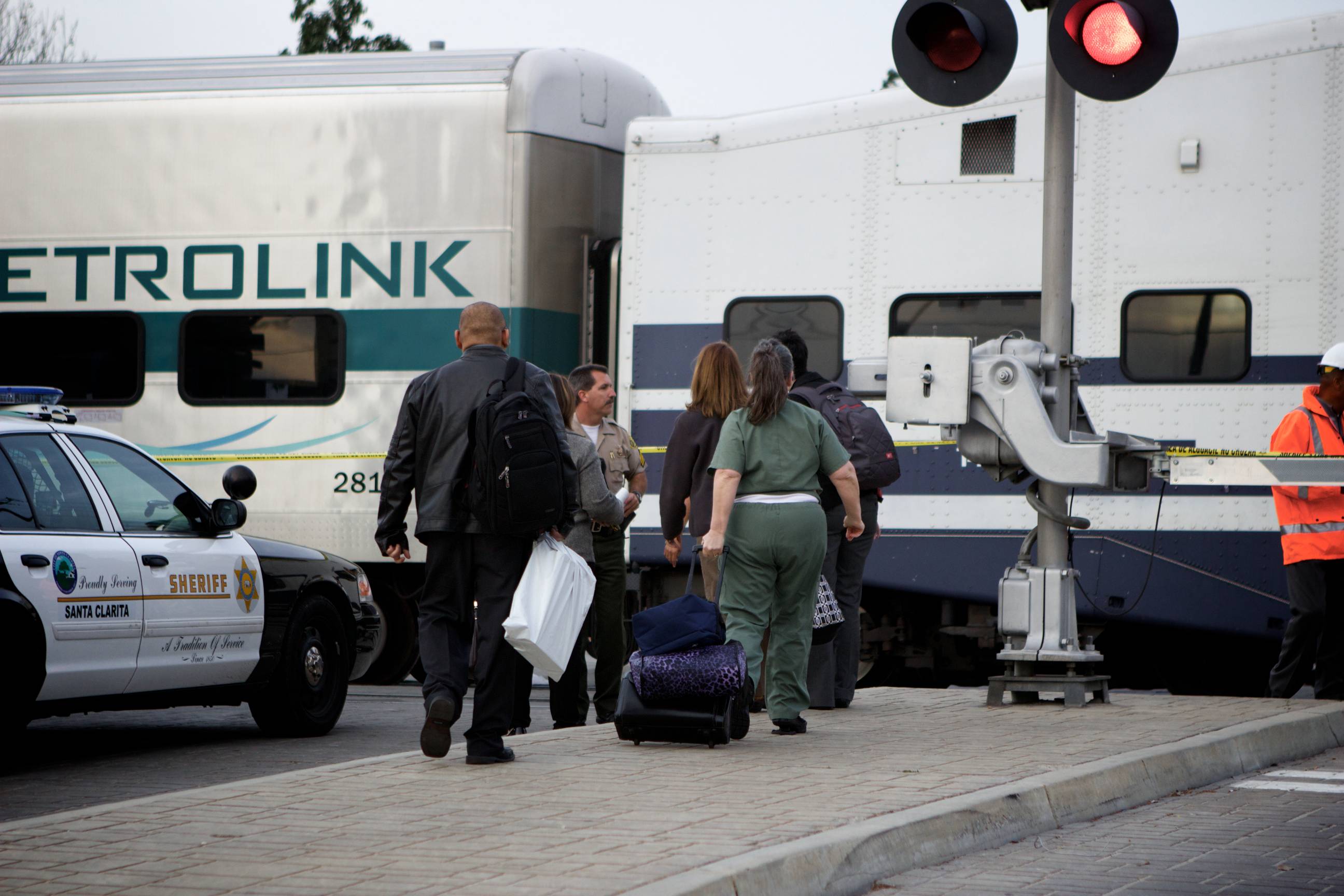 Uploaded 02/18/2014 Photos: Austin Dave [KHTS] – A man reportedly committed suicide by jumping in front of a mid-day Metrolink commuter train carrying 95 passengers. The person, who was not identified by officials, reportedly committed suicide around 2:30 p.m. near Railroad Avenue and Market Street, in Newhall. Homicide detectives are on scene and investigating the incident. “Sadly, an individual did step onto our tracks this afternoon, the incident did result in a fatality,” said Scott Johnson, spokesman for Metrolink. Homicide detectives will investigate any death that involves a vehicle or not suspected to be natural causes, according to a Sheriff’s Station officials. Detectives have not made any statement regarding the circumstances of the death; however, it was initially reported as a suicide by deputies on scene. “The train that was involved was northbound No. 209,” Johnson said. “The ultimate destination was going to be Via Princessa.” “The incident occurred just south of our Newhall Station,” Johnson said, noting the train was about 10 miles from its destination. “The incident occurred at a non-pedestrian area,” Johnson said. “There was no reason for that individual to be where the individual was.” No additional details are being released at this time. Santa Clarita Valley Sheriff’s Station deputies are handling the investigation. “There were 95 passengers on the train,” Johnson said. “At this point, because of its proximity, two buses are en route to taken those passengers to their final destination (Newhall to Via Princessa).” Metrolink service on routes 209 and 218 was suspended and riders were asked to check Twitter @MetroLink for updated information regarding when normal service might resume.