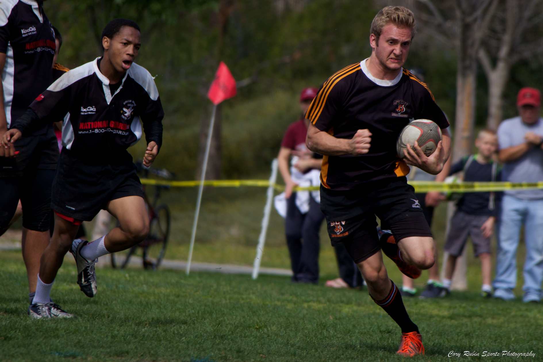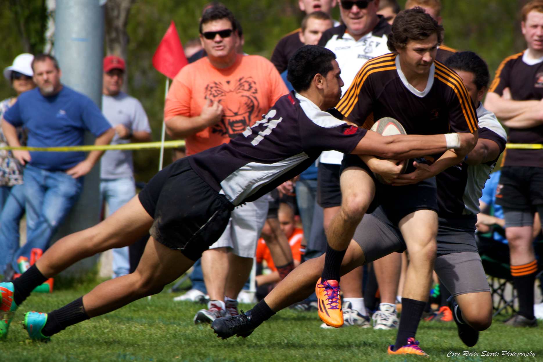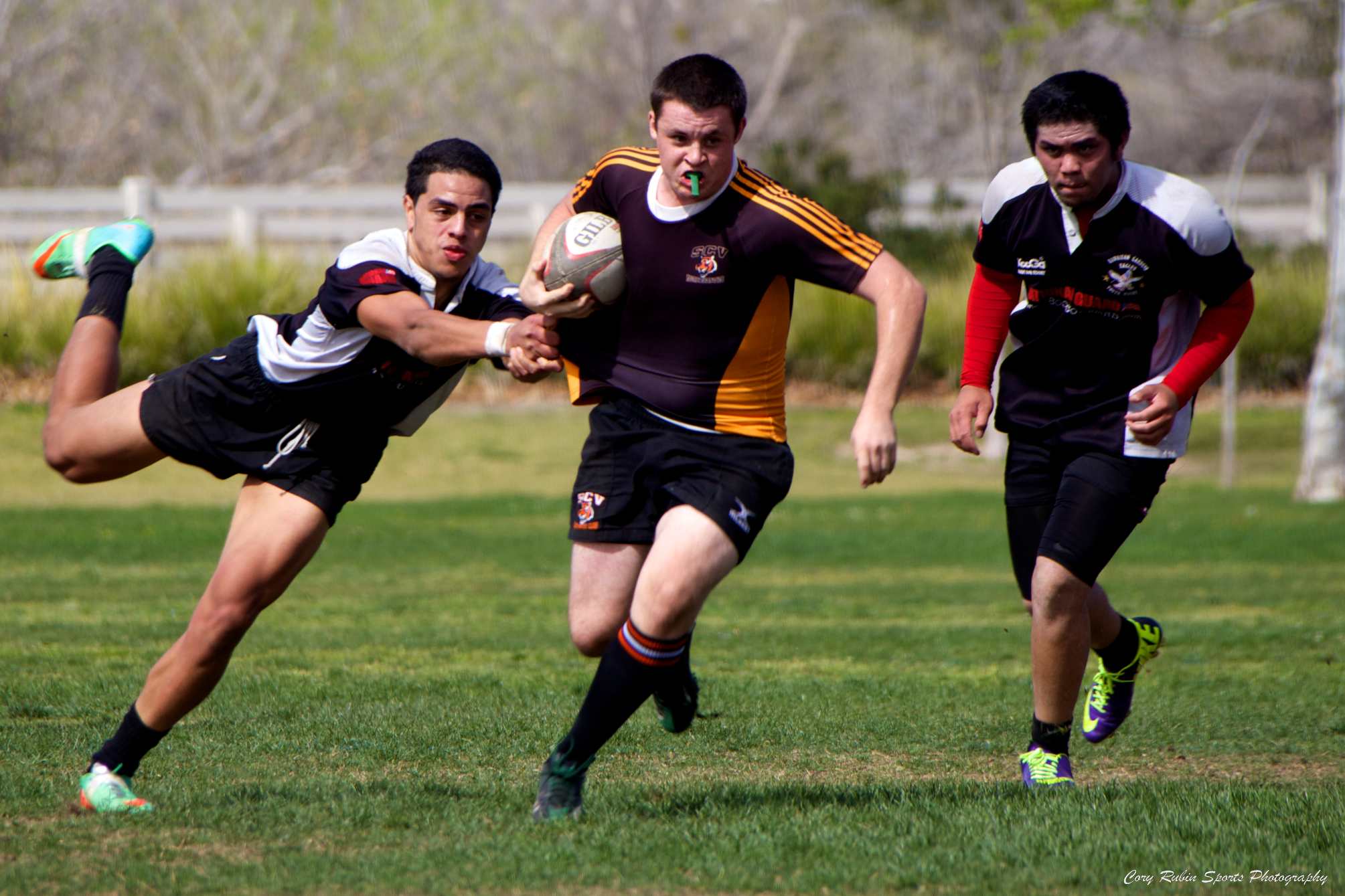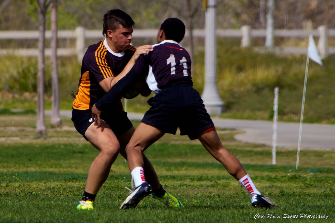 The SCV Youth Rugby Tigers score two unanswered tries to tie the Hawaiian Garden Rugby Eagles on Saturday at Heritage Park in Valencia.