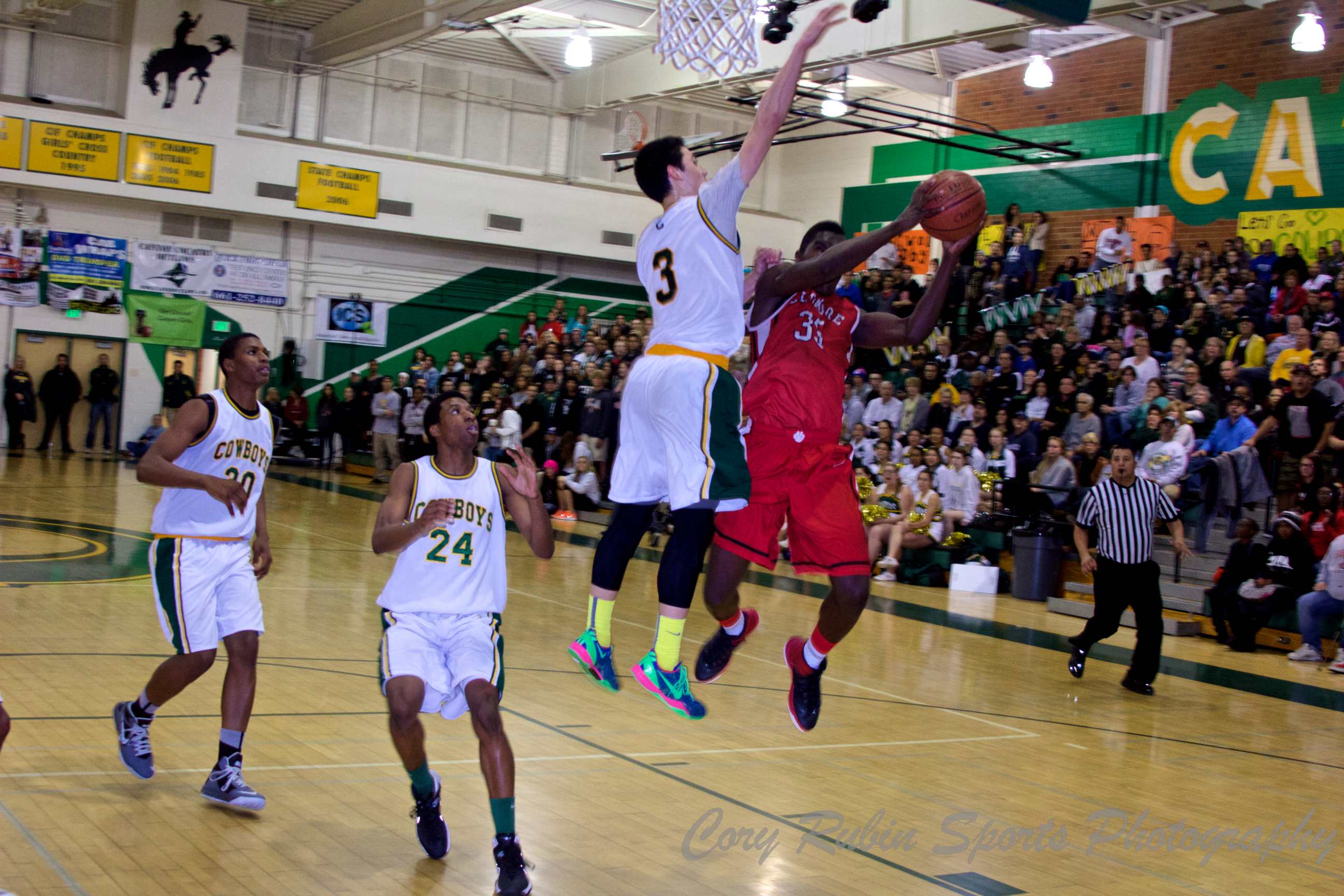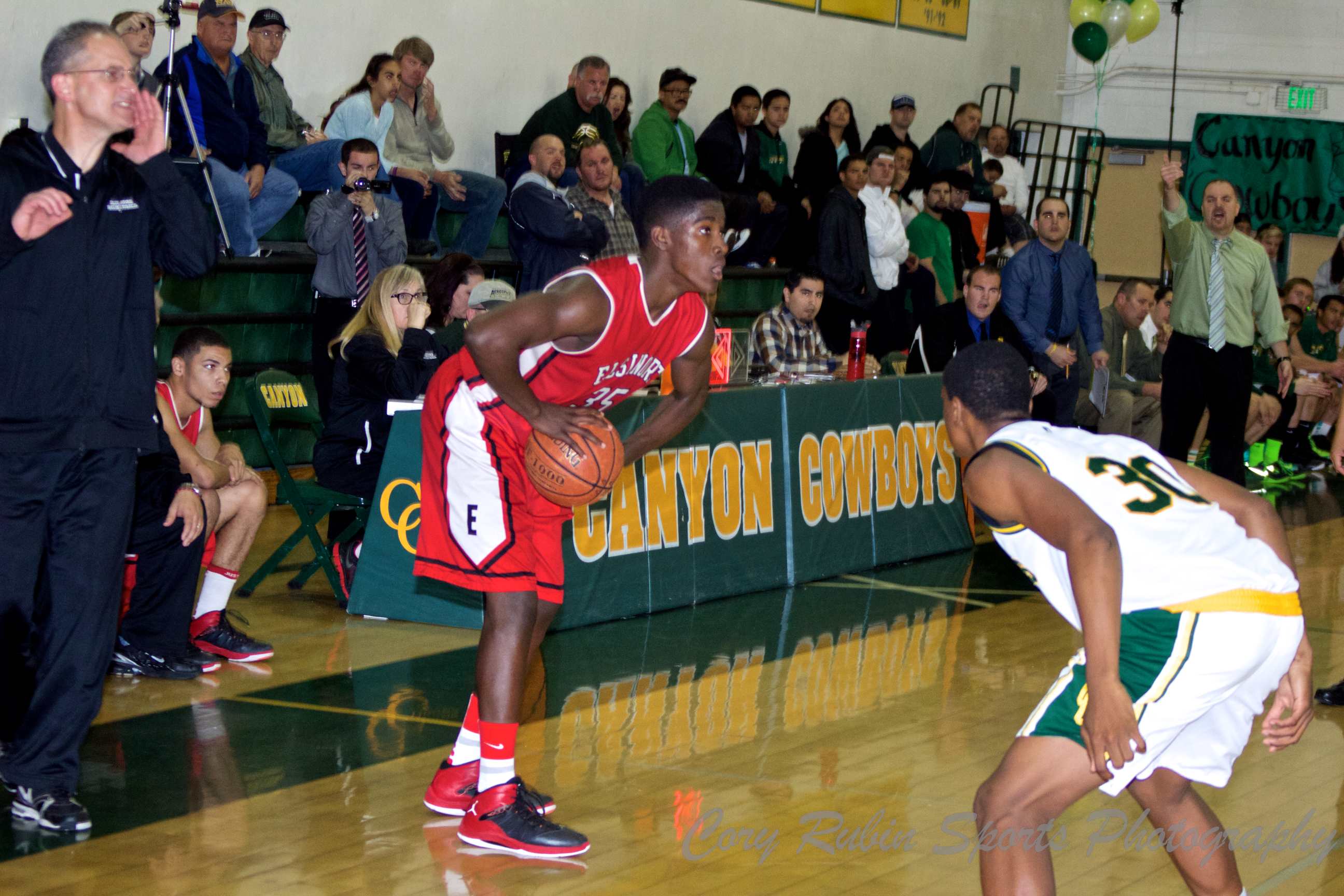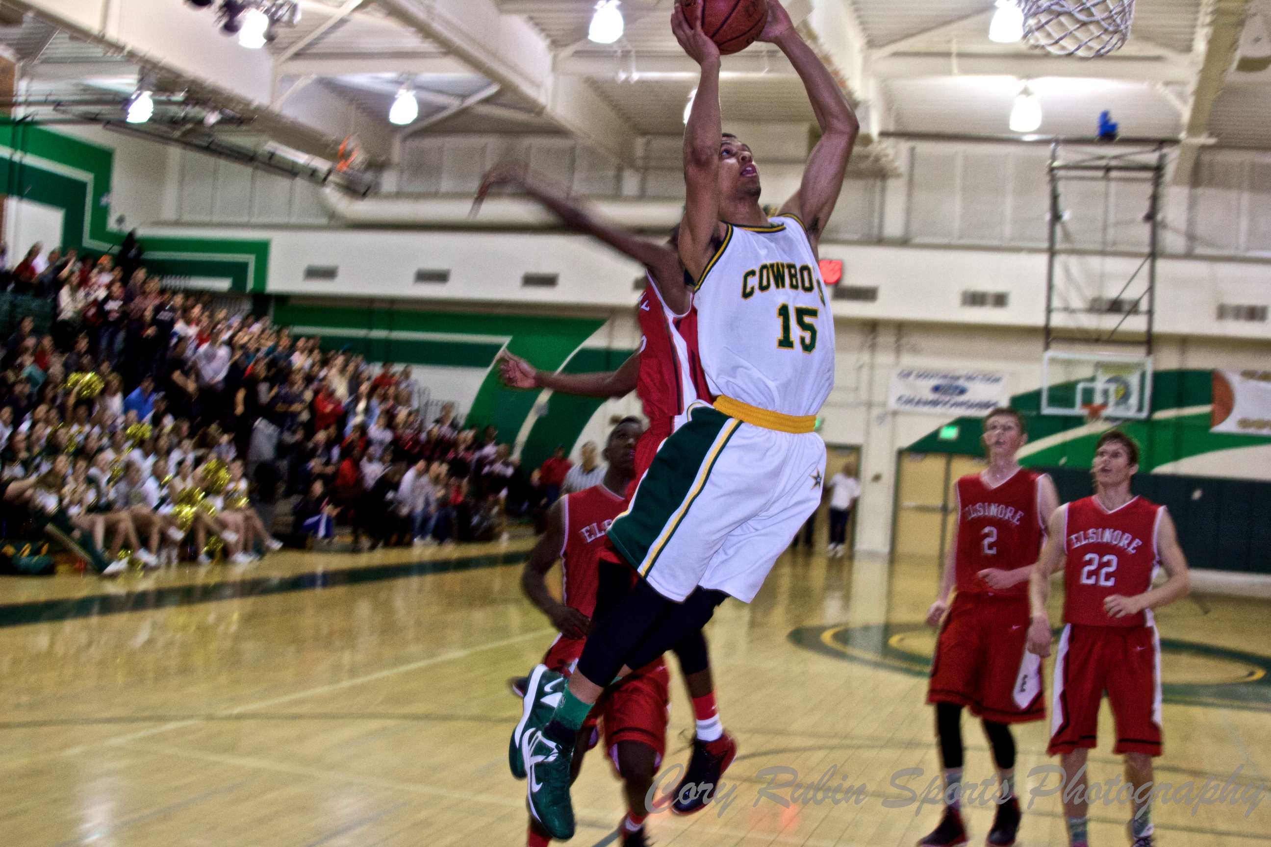 Uploaded 03/01/2014 The Canyon Cowboys Score 58 points in the second half behind 28 points from Ben Taufahema and 25 from Mark Bell to defeat the Elsinore Tigers in the CIF Southern Section Division 2-AA Elite Eight. They will take on the top seeded Canyon (of Anaheim) Comanches in the Final Four on Tuesday at 7 P.M. in Anaheim. |