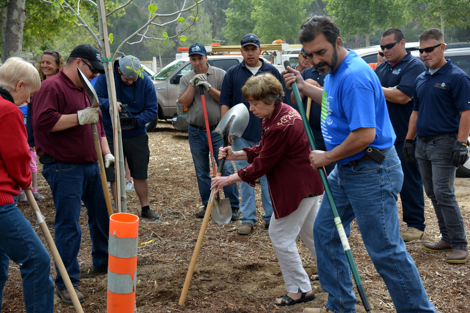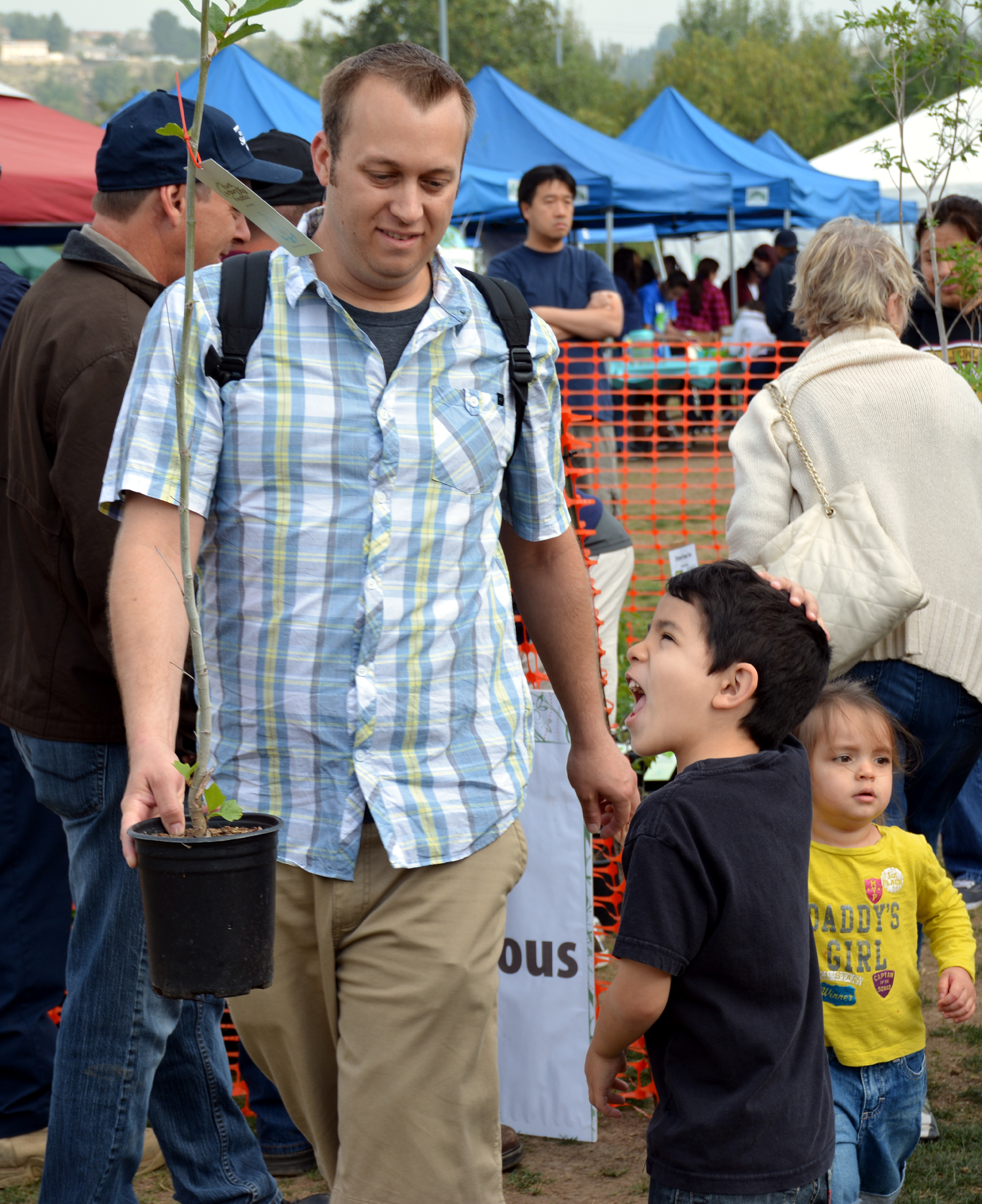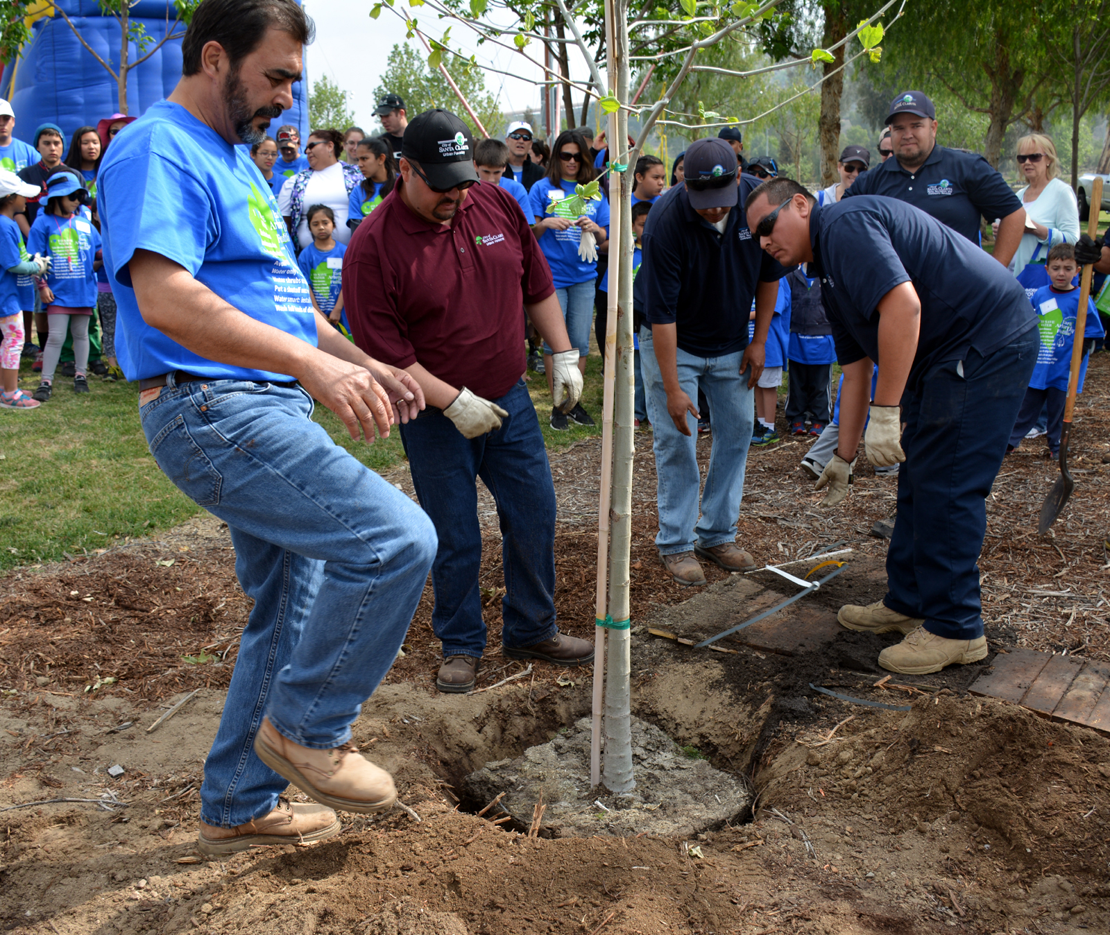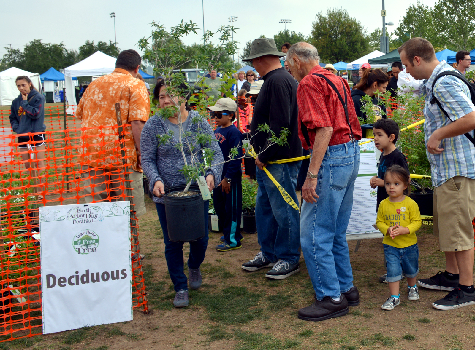 The City of Santa Clarita hosted its 25th annual Earth Arbor Day celebration Saturday at Central Park in Saugus. Santa Clarita Mayor Laurene Weste and Urban Forestry Supervisor Robert Sartain spoke at the opening ceremony before teaming up with Santa Clarita City Council member Marsha McLean and several Urban Forestry staff to plant the first tree of the day behind the main stage. Weste spoke about Santa Clarita commitment to environmental responsibility and said that the free Earth Arbor Day event is a way to celebrate this ideal. “Santa Clarita really loves its trees,” Weste said. “We trimmed more than 20,000 trees last year and we are very proud of that number. We want to give you as many opportunities as we can to enrich your life and enrich our planet and our community.” Twenty-four trees were planted at Central Park throughout the day by Urban Forestry staff and volunteers. Sartain said the Earth Arbor Day event fulfills a requirement that allows Santa Clarita to apply for the Tree City USA award, which it has received for the past 24 years. “To qualify as a Tree City USA community, we have to meet four standards from the Arbor Day Foundation and the National Association of State Foresters,” Sartain said. “We must have a tree board or department … also we must have a tree care ordinance. We have to show we are taking care of the trees financially .. and lastly, an Arbor Day observance and proclamation, which the council proclaims each year.” 1000 free trees were provided at the event on a first come, first serve basis. The trees were donated by the City of Santa Clarita and Four Seasons. Free mulch and compost were also provided for attendees, donated by C & M Topsoil and Whole Foods, respectively. 65 vendors were on hand to share information about their environmentally friendly products and general services. Vendors included, Snow Orthodontics, Dr. Thomas Polucki, Green Convergence, Whole Foods and more. Urban Forestry for the City of Santa Clarita was also on hand at the event to share information about tree pruning and other proper tree care techniques. Wayne Smith, Urban Forestry Tree Specialist for the City of Santa Clarita, said having trees in a community can give many benefits to the area. “Trees are homes for wildlife, provide shade and add property value,” Smith said. “In addition to aesthetic beauty, tree lined streets can add safety to the community and, at the most basic level, reduce carbon dioxide levels and increase oxygen through carbon sequestration. We want people to know how to take care of their trees and today is a day of nothing but education for people who want to learn to protect trees. ” The event was free to the public and sponsored by the Santa Clarita Family of Water Suppliers, which includes Castaic Lake Water Agency, Newhall County Water District, Santa Clarita Water Division, Los Angeles County Waterworks District 36 and Valencia Water Company.