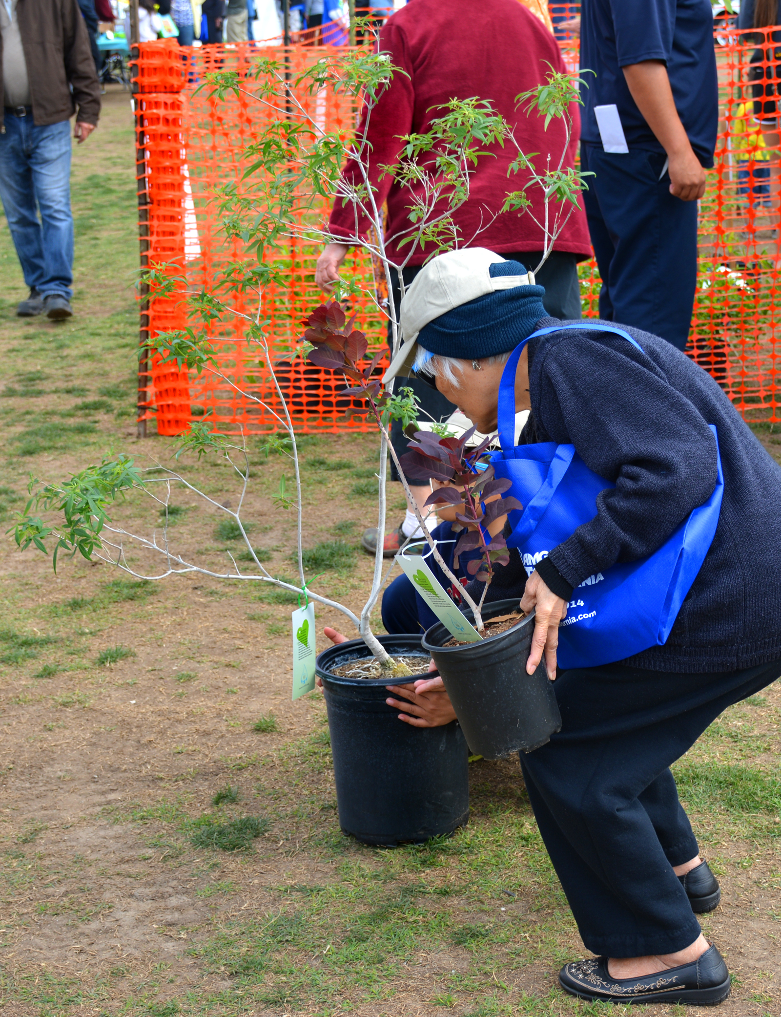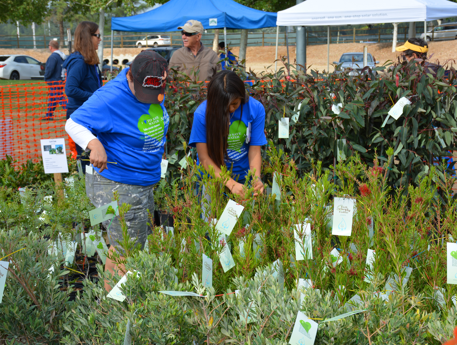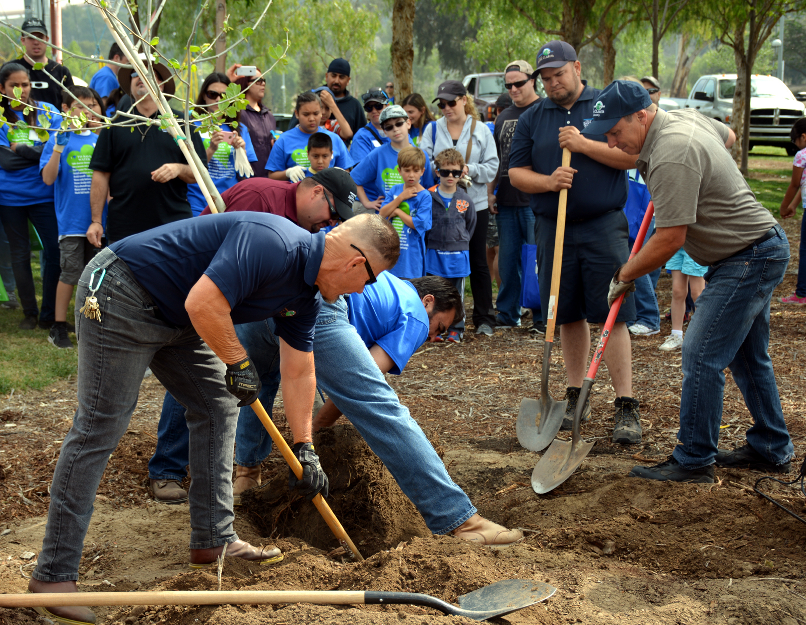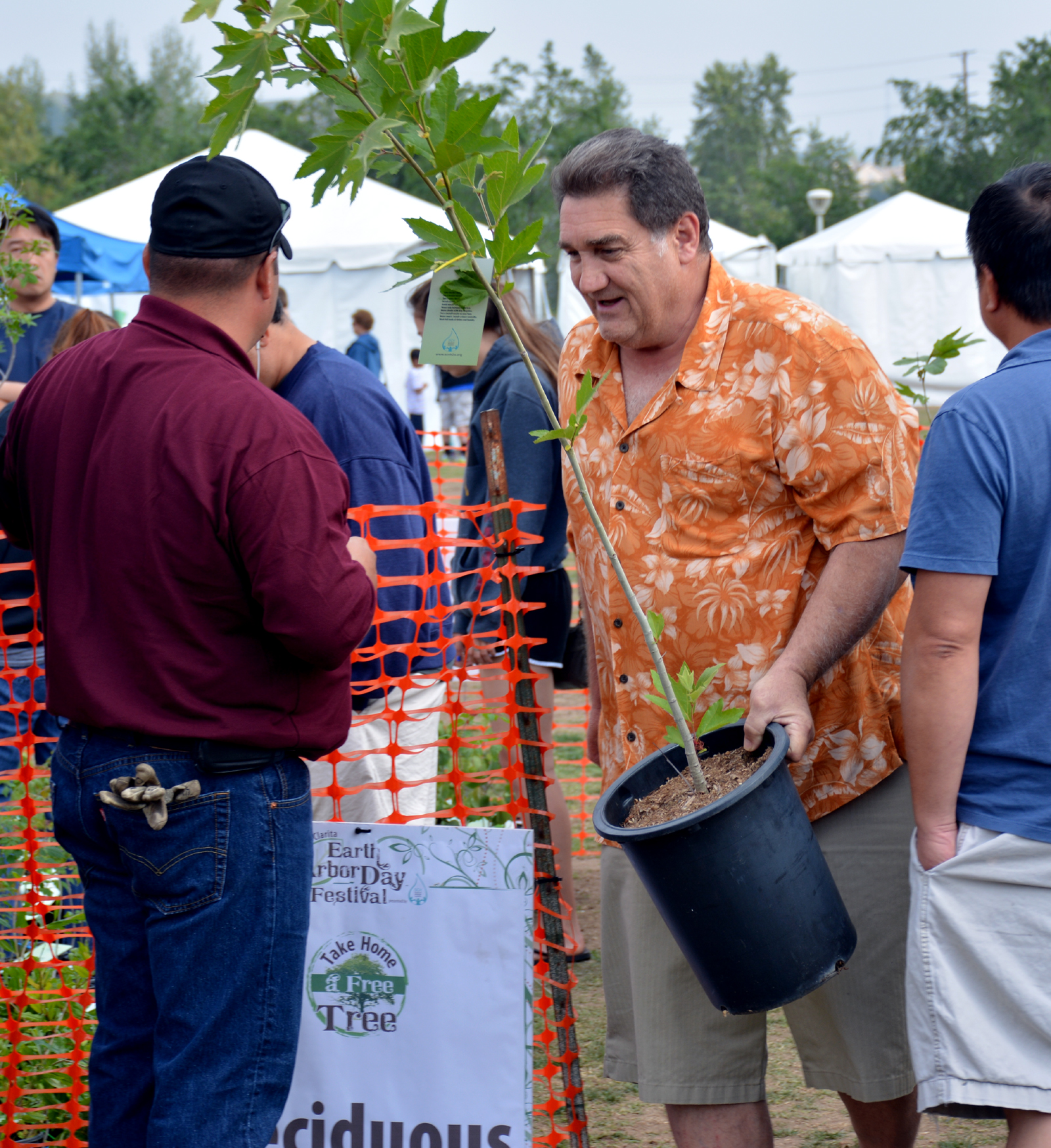 The City of Santa Clarita hosted its 25th annual Earth Arbor Day celebration Saturday at Central Park in Saugus. Santa Clarita Mayor Laurene Weste and Urban Forestry Supervisor Robert Sartain spoke at the opening ceremony before teaming up with Santa Clarita City Council member Marsha McLean and several Urban Forestry staff to plant the first tree of the day behind the main stage. Weste spoke about Santa Clarita commitment to environmental responsibility and said that the free Earth Arbor Day event is a way to celebrate this ideal. “Santa Clarita really loves its trees,” Weste said. “We trimmed more than 20,000 trees last year and we are very proud of that number. We want to give you as many opportunities as we can to enrich your life and enrich our planet and our community.” Twenty-four trees were planted at Central Park throughout the day by Urban Forestry staff and volunteers. Sartain said the Earth Arbor Day event fulfills a requirement that allows Santa Clarita to apply for the Tree City USA award, which it has received for the past 24 years. “To qualify as a Tree City USA community, we have to meet four standards from the Arbor Day Foundation and the National Association of State Foresters,” Sartain said. “We must have a tree board or department … also we must have a tree care ordinance. We have to show we are taking care of the trees financially .. and lastly, an Arbor Day observance and proclamation, which the council proclaims each year.” 1000 free trees were provided at the event on a first come, first serve basis. The trees were donated by the City of Santa Clarita and Four Seasons. Free mulch and compost were also provided for attendees, donated by C & M Topsoil and Whole Foods, respectively. 65 vendors were on hand to share information about their environmentally friendly products and general services. Vendors included, Snow Orthodontics, Dr. Thomas Polucki, Green Convergence, Whole Foods and more. Urban Forestry for the City of Santa Clarita was also on hand at the event to share information about tree pruning and other proper tree care techniques. Wayne Smith, Urban Forestry Tree Specialist for the City of Santa Clarita, said having trees in a community can give many benefits to the area. “Trees are homes for wildlife, provide shade and add property value,” Smith said. “In addition to aesthetic beauty, tree lined streets can add safety to the community and, at the most basic level, reduce carbon dioxide levels and increase oxygen through carbon sequestration. We want people to know how to take care of their trees and today is a day of nothing but education for people who want to learn to protect trees. ” The event was free to the public and sponsored by the Santa Clarita Family of Water Suppliers, which includes Castaic Lake Water Agency, Newhall County Water District, Santa Clarita Water Division, Los Angeles County Waterworks District 36 and Valencia Water Company.