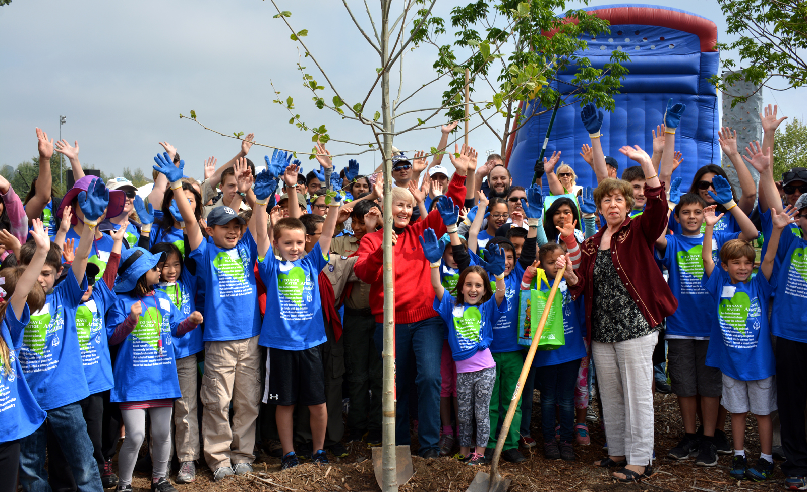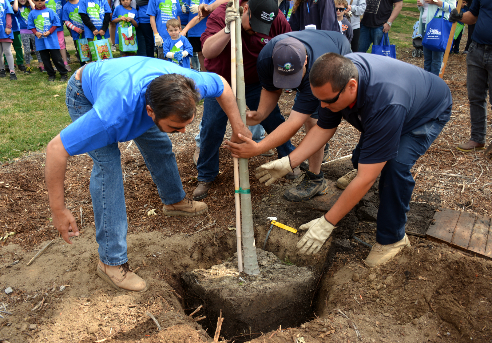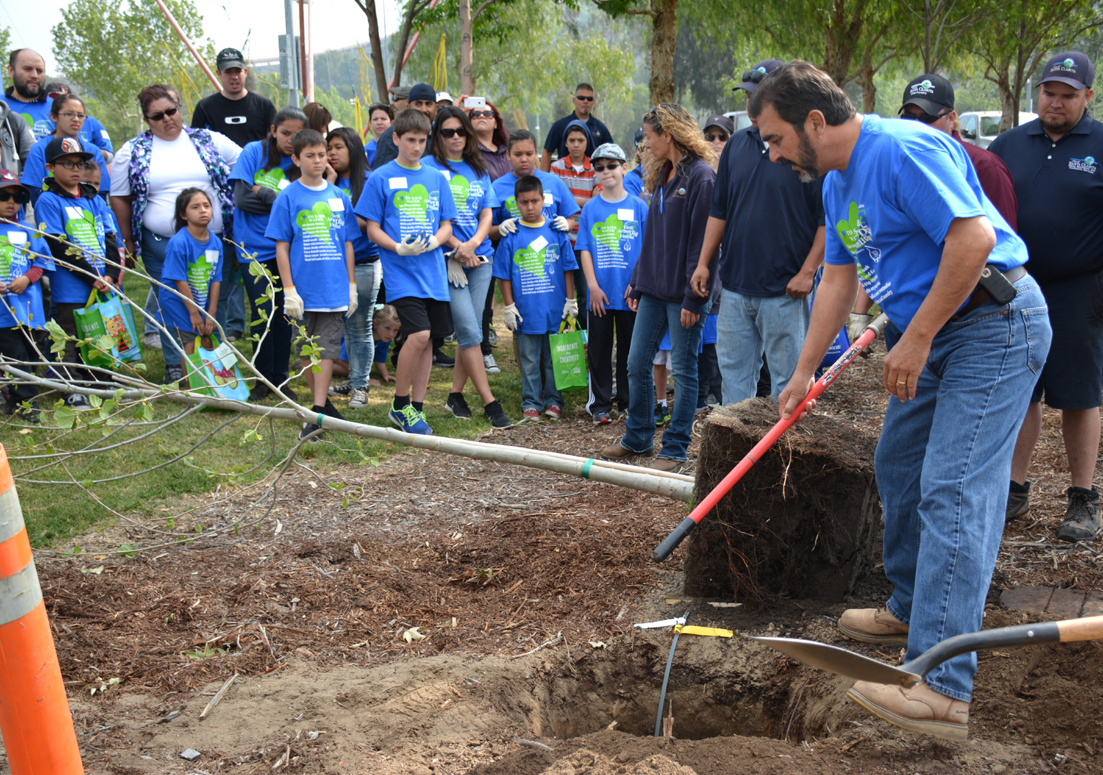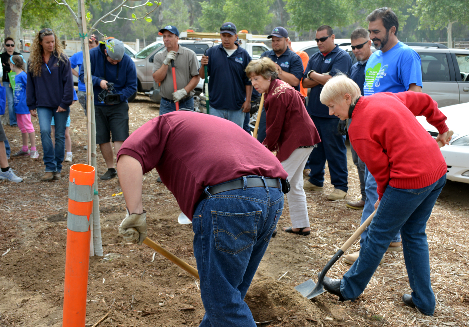 The City of Santa Clarita hosted its 25th annual Earth Arbor Day celebration Saturday at Central Park in Saugus. Santa Clarita Mayor Laurene Weste and Urban Forestry Supervisor Robert Sartain spoke at the opening ceremony before teaming up with Santa Clarita City Council member Marsha McLean and several Urban Forestry staff to plant the first tree of the day behind the main stage. Weste spoke about Santa Clarita commitment to environmental responsibility and said that the free Earth Arbor Day event is a way to celebrate this ideal. “Santa Clarita really loves its trees,” Weste said. “We trimmed more than 20,000 trees last year and we are very proud of that number. We want to give you as many opportunities as we can to enrich your life and enrich our planet and our community.” Twenty-four trees were planted at Central Park throughout the day by Urban Forestry staff and volunteers. Sartain said the Earth Arbor Day event fulfills a requirement that allows Santa Clarita to apply for the Tree City USA award, which it has received for the past 24 years. “To qualify as a Tree City USA community, we have to meet four standards from the Arbor Day Foundation and the National Association of State Foresters,” Sartain said. “We must have a tree board or department … also we must have a tree care ordinance. We have to show we are taking care of the trees financially .. and lastly, an Arbor Day observance and proclamation, which the council proclaims each year.” 1000 free trees were provided at the event on a first come, first serve basis. The trees were donated by the City of Santa Clarita and Four Seasons. Free mulch and compost were also provided for attendees, donated by C & M Topsoil and Whole Foods, respectively. 65 vendors were on hand to share information about their environmentally friendly products and general services. Vendors included, Snow Orthodontics, Dr. Thomas Polucki, Green Convergence, Whole Foods and more. Urban Forestry for the City of Santa Clarita was also on hand at the event to share information about tree pruning and other proper tree care techniques. Wayne Smith, Urban Forestry Tree Specialist for the City of Santa Clarita, said having trees in a community can give many benefits to the area. “Trees are homes for wildlife, provide shade and add property value,” Smith said. “In addition to aesthetic beauty, tree lined streets can add safety to the community and, at the most basic level, reduce carbon dioxide levels and increase oxygen through carbon sequestration. We want people to know how to take care of their trees and today is a day of nothing but education for people who want to learn to protect trees. ” The event was free to the public and sponsored by the Santa Clarita Family of Water Suppliers, which includes Castaic Lake Water Agency, Newhall County Water District, Santa Clarita Water Division, Los Angeles County Waterworks District 36 and Valencia Water Company.