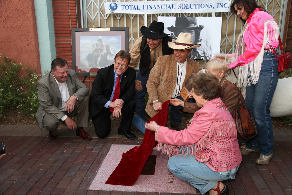 Two more western actors, Steve McQueen and Charles Bronson, were added to Newhall’s Walk of Western Stars Thursday night, as part of the “Rockin’ Rodeo”-themed SENSES block party on Main Street. The induction ceremony helped kick off the 21st annual Santa Clarita Cowboy Festival, which will be held at Melody Ranch Motion Picture Studio on April 26 and 27. McQueen, who acted on Broadway and for television and movies, was known for his anti-hero persona. Nicknamed the “King of Cool,” he is best known for films like “The Thomas Crown Affair,” “The Great Escape” and “The Magnificent Seven.” Bronson’s started his career as a television actor in the 1950s, and he went on to star the in successful western films “The Dirty Dozen,” “Once Upon a Time in the West,” “Red Sun” and also “The Magnificent Seven.” “The committee feels that they are very notable for their contributions to western filmmaking and deserve to be on the Walk of Western Stars,” said Andree Walper, economic development associate for the city. Similar in style to the Hollywood Walk of Fame, the Walk of Western Stars honors actors, directors and film professionals for their contributions to the Western heritage of America. Steve McQueen and Charles Bronson each received a bronze and terrazzo tile stamped into the streets of Old Town Newhall. They are joined by famous western actors Gene Autry, Lee Marvin, James Stewart, John Wayne, Roy Rogers and William S. Hart, among others. Steve McQueen “The city of Santa Clarita takes great pride in its rich, Western culture,” said Mayor Laurene Weste in a press release. “Our annualCowboy Festival and famed Walk of Western Stars are just two ways we pay tribute to our Western roots…” Sponsored by the city of Santa Clarita, the Santa Clarita Valley Chamber of Commerce and Total Financial Solutions, Inc., the Walk of Western Stars was established in 1981. The city adds tiles to the Walk every year during the Cowboy Festival. This year’s additions bring the total to 87 tiles. For more information on the Walk of Western Stars, please contact the city’s economic development associate Andree Walper at 661-286-4166 or awalper@santa-clarita.com. |