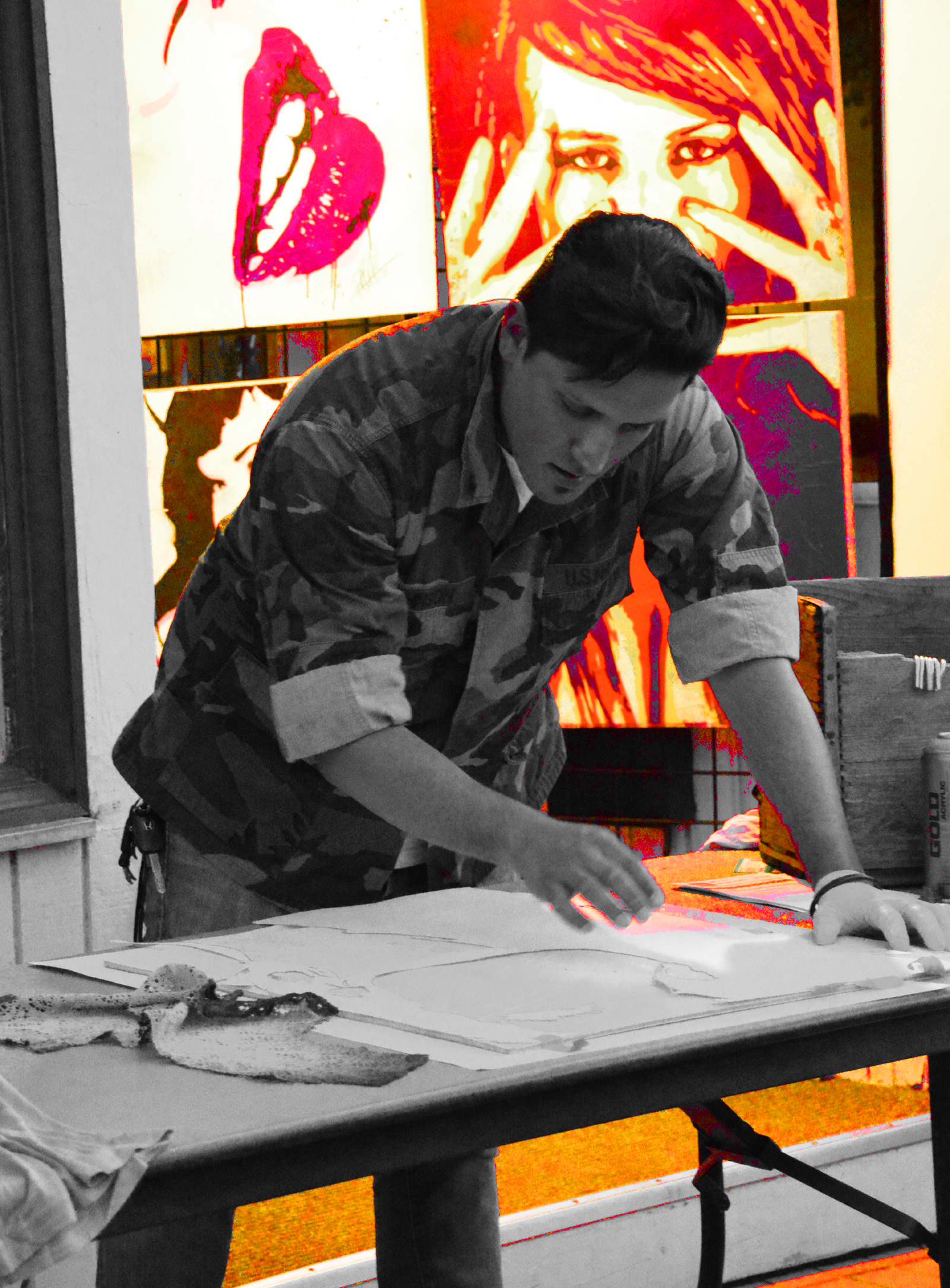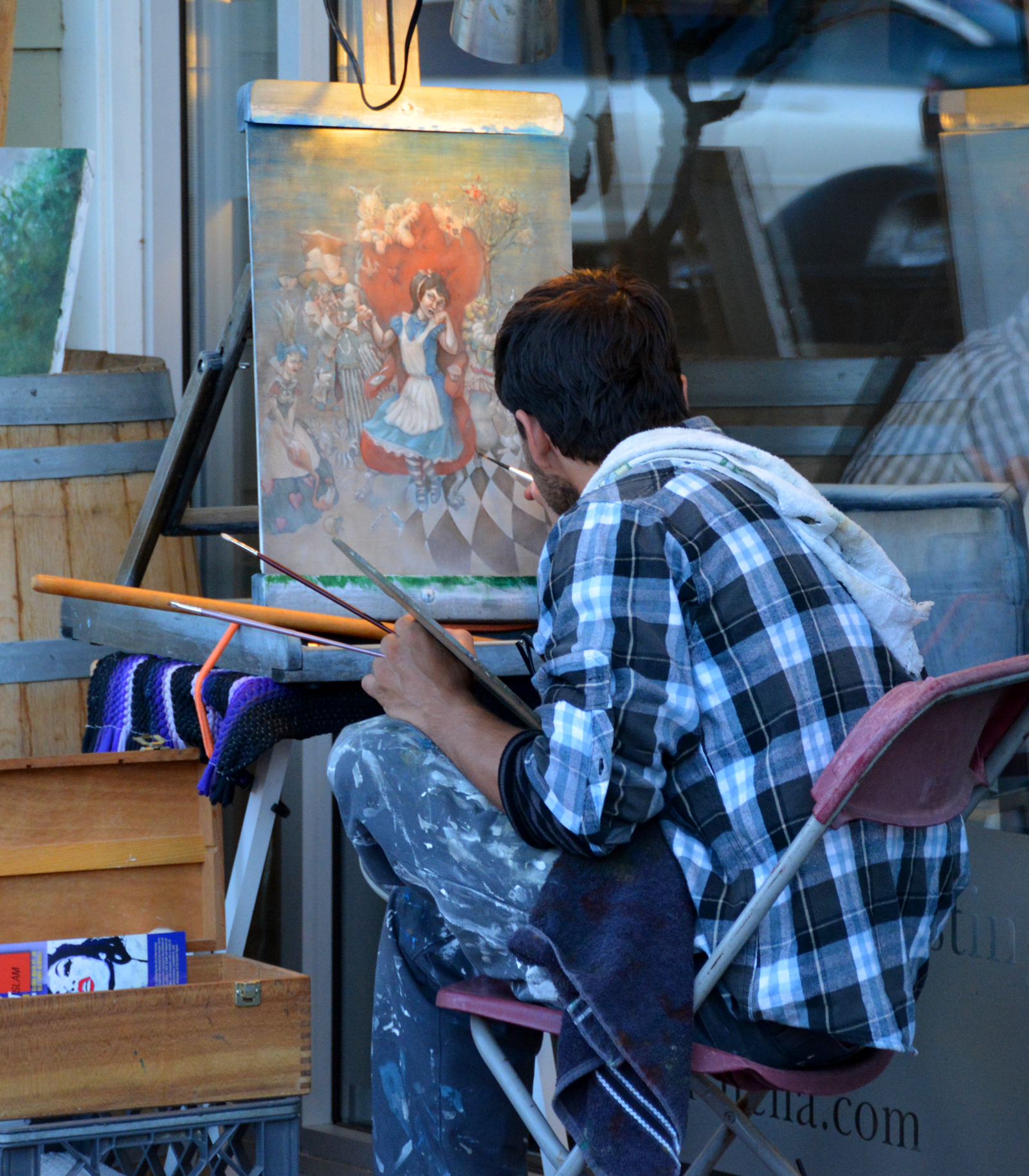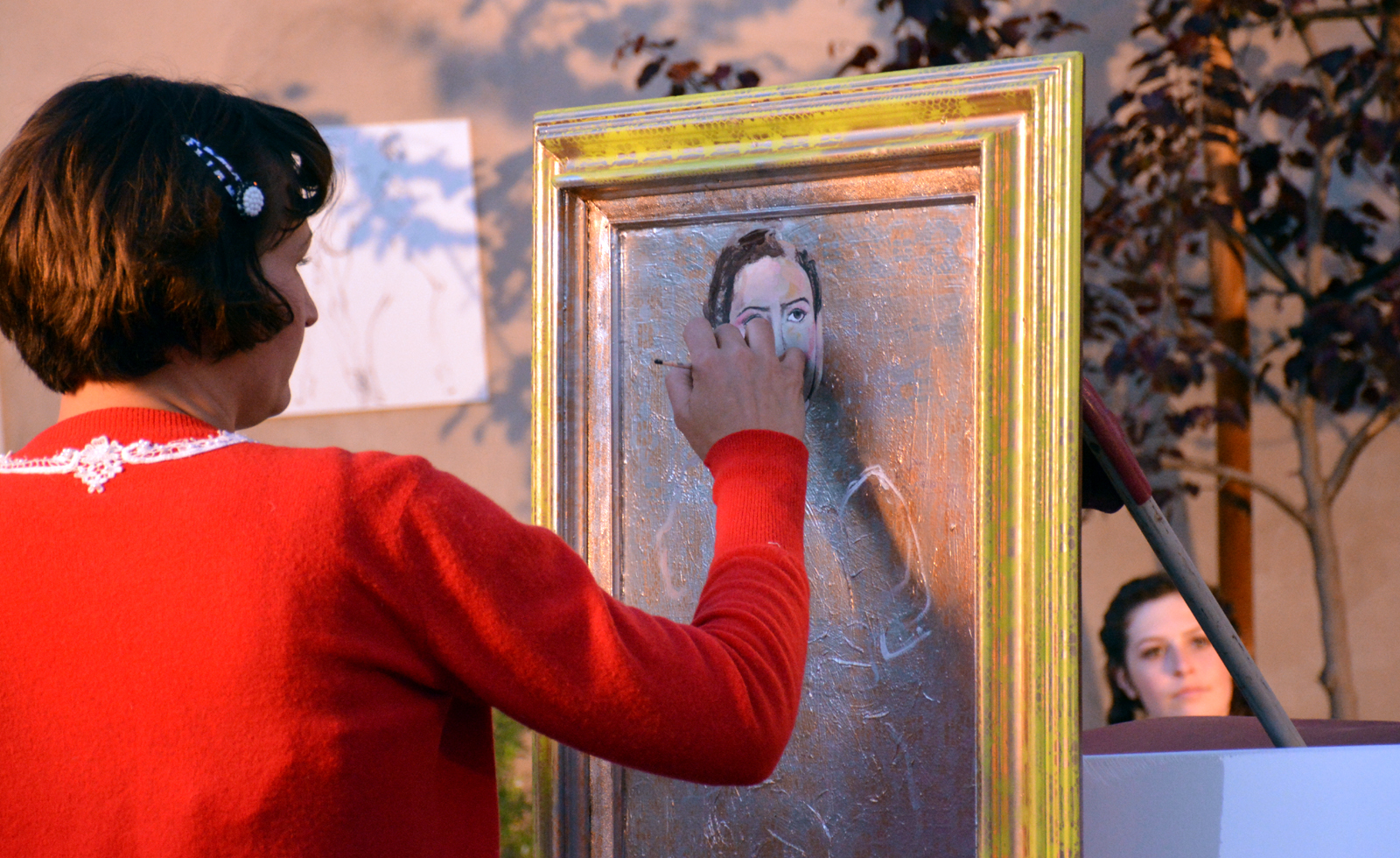 “Art of the Human Figure” was the theme of Thursday’s Art Slam in Old Town Newhall. Featured along Main Street were a video installation of faces presented by local art group ARTree; David Green’s “The Other Side of the Lens” exhibit featuring portraits of photographers with their cameras; Dianne Foderaro’s whimsical metal sculptures made entirely from recycled materials; and more. The event included music provided by DJ Justin Cornwall and several art demonstrations and activities, including a live photo shoot featuring professional models and photographers; sidewalk drawings with artist Zach Hill; costumed model painting with local artists Steph Darling and Suzi Kades; and stenciling with Pablo Cevallos. |