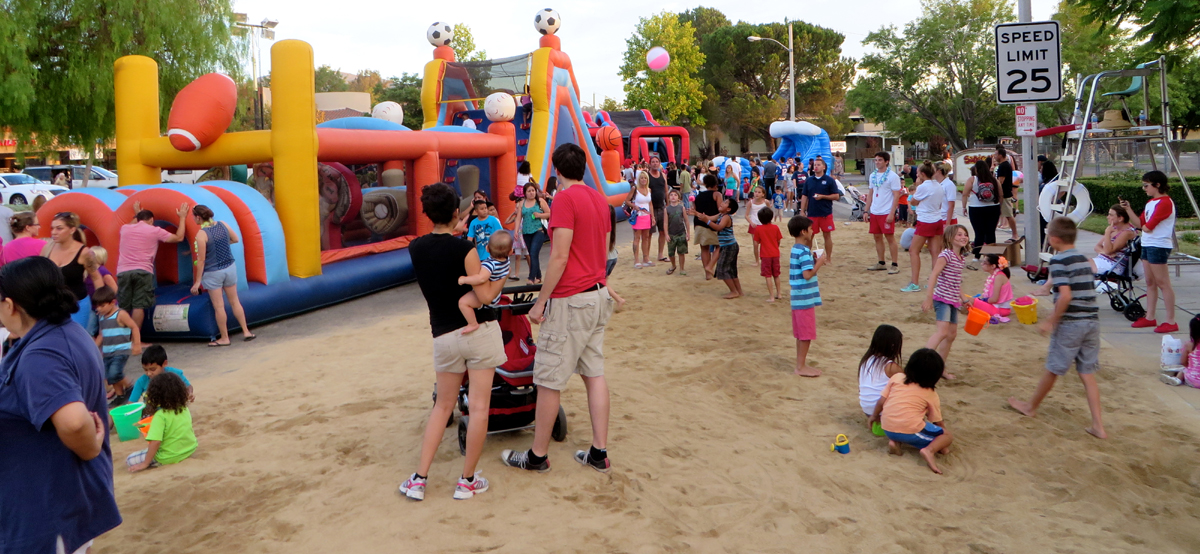 Uploaded 07/25/2014 The city of Santa Clarita put on its first -ever “Summer Bash” Friday night in Canyon Country, transforming Luther Drive into a family-friendly beach experience complete with a live rock n’ roll band, food trucks, fun activities – and 75 tons of sand. The event also marked the culmination of the Santa Clarita Public Library system’s summer reading program, “Paws to Read.”