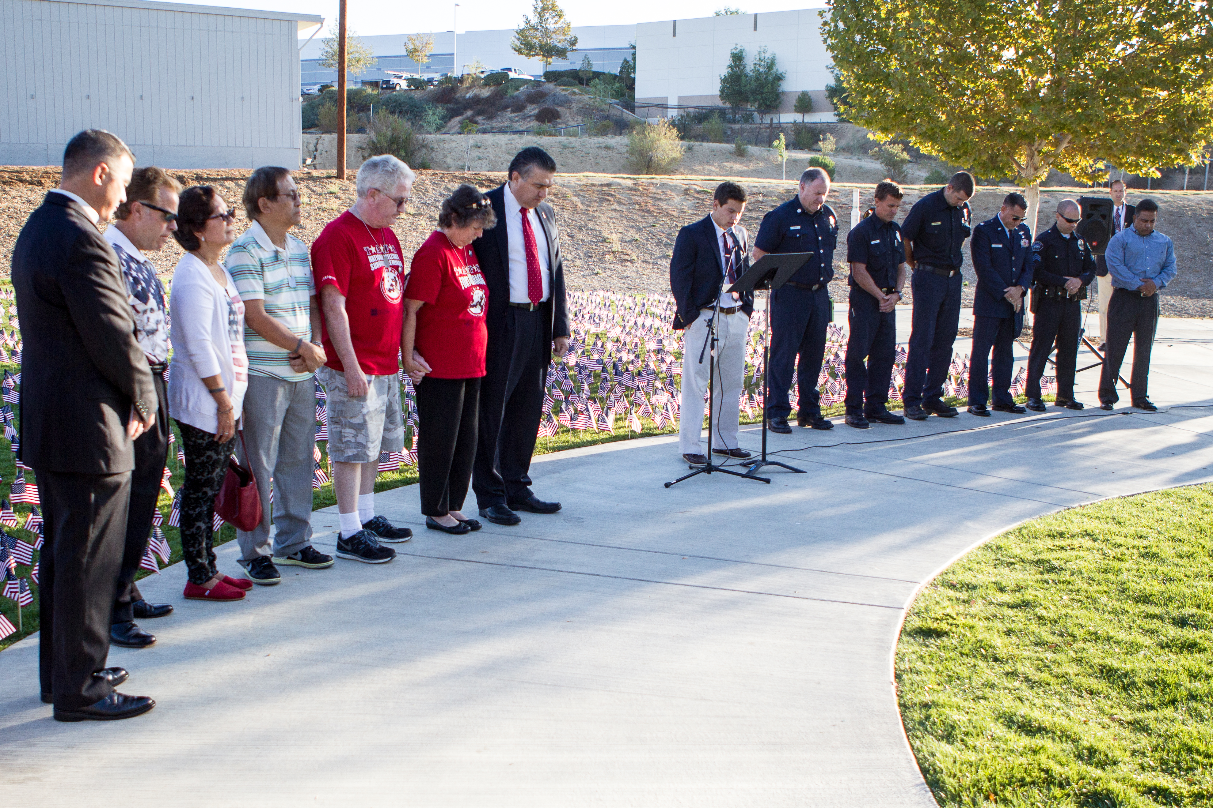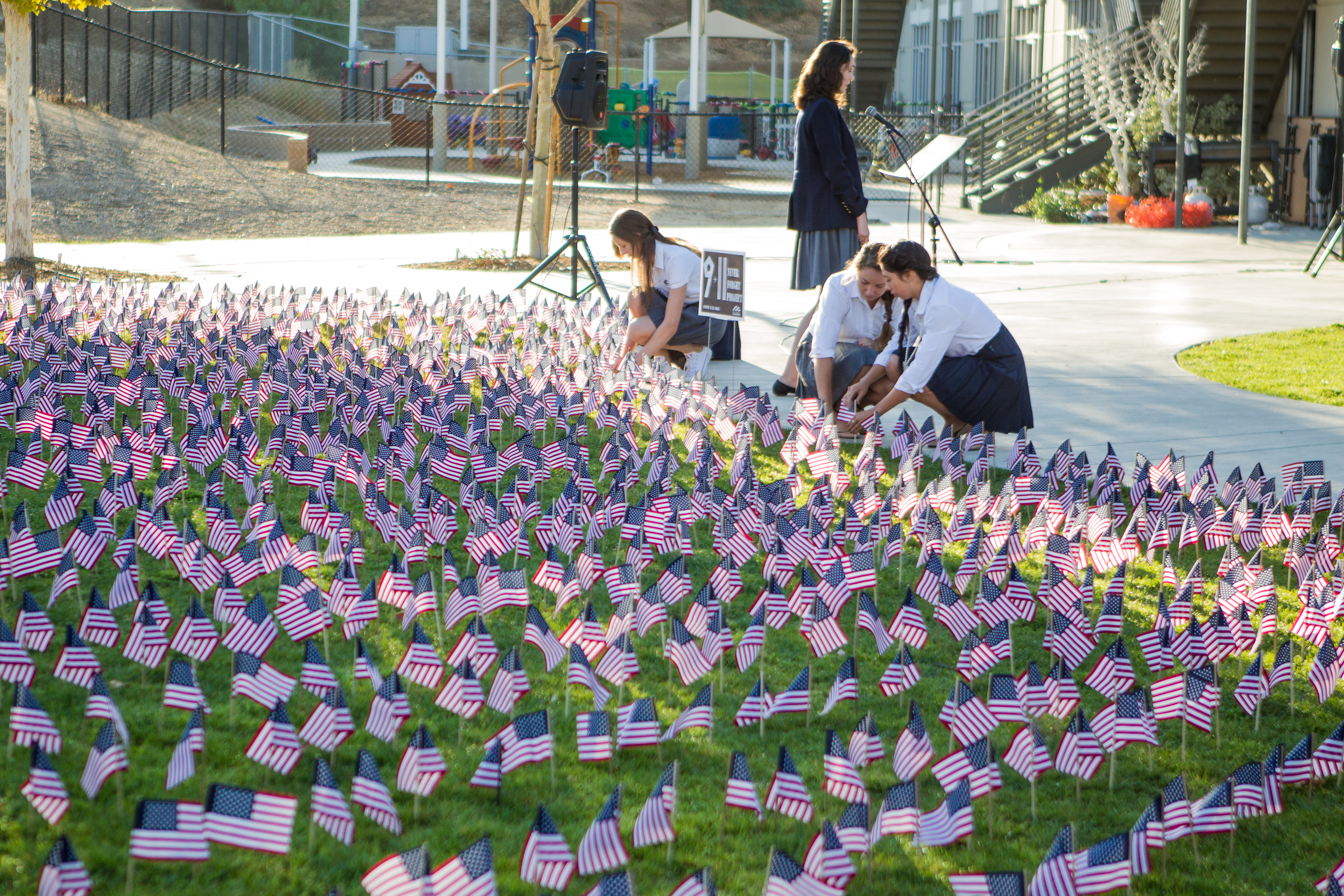 Uploaded 09/11/2014 Photos courtesy of Wally Caddow, Trinity Classical Academy Hundreds of students, administrators, parents and special guests attended a 9/11 memorial ceremony Thursday at Trinity Classical Academy in Valencia. The commemoration was organized by the school’s chapter of Young Americans for Freedom, a campus club led by advisor Megan Wosniak, that teaches students about our nation’s founding principles, the Constitution, and what it means to live as a free people, said Liz Caddow, head of the school. Students honored each of the 2,977 victims who died in the September 11, 2001 terrorist attacks in New York City, Pennsylvania, and Washington, D.C. by placing an American flag for each victim on the campus front lawn Wednesday evening. The four American officials who died in the 2012 terrorist attack in Benghazi, Libya were honored with flags as well. The YAF 9/11: Never Forget Project, is designed to create a community of remembrance, reflection and continued awareness, according to a press release sent out by school officials. More than 200 schools across the country participate in the project each year. This is the second year Trinity Classical Academy has participated. “I think it’s particularly important for my generation because while doing research, I found so many online video postings of parodies of 9/11,” said YAF President and student Kayla Perry. “It was disgusting, appalling and crude. And all of these people who had posted these videos were around my age and were citizens of America. I think just showing my generation that this was a real event and it hit us hard. It’s not something to joke about.” We are so proud of our Rhetoric School students who organize and participate in this beautiful and moving tribute,” Caddow said. “Our entire school and the administration wholeheartedly support these students’ effort to honor those who died and those who subsequently lost their lives protecting ours.”
