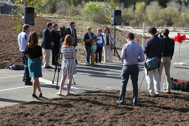 The project widened the McBean Parkway Bridge to eight lanes to improve traffic flow, and made several additions to the bridge, including a raised landscaped median, a dedicated bike path on the bridge to connect the Santa Clara River Trail and the South River Trail, and a trail connection beneath the north side of the bridge to connect the east and west portions of the Santa Clara River Trail. “The McBean Parkway Bridge is one of the most heavily-traveled corridors in the City of Santa Clarita,” said Mayor Laurene Weste. “This project will help reduce congestion on the roadway, and provides a direct link between the South River and Santa Clara River Trails to benefit the many residents who enjoy biking, walking and running along them.”
