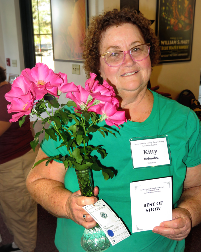 Uploaded 11/02/2014 The Santa Clarita Valley Rose Society held its 21st annual Wild West Roses show and third annual art exhibition Saturday and Sunday at William S. Hart Park in Newhall. Best of Show went to society co-founder and multi-award winner Kitty Belendez for her display of pinkish-lavender Playgirl roses, which were first bred in the United States in 1986. The show, featuring hundreds of roses and several works of framed art, was co-sponsored by the Los Angeles County Department of Parks and Recreation. |