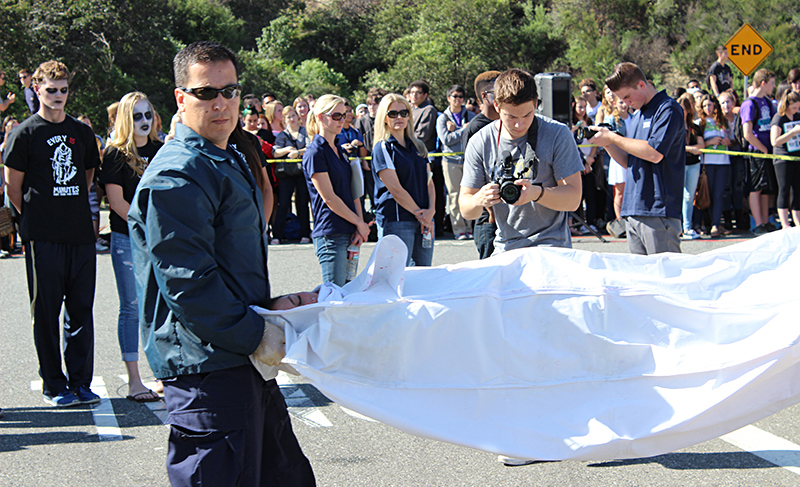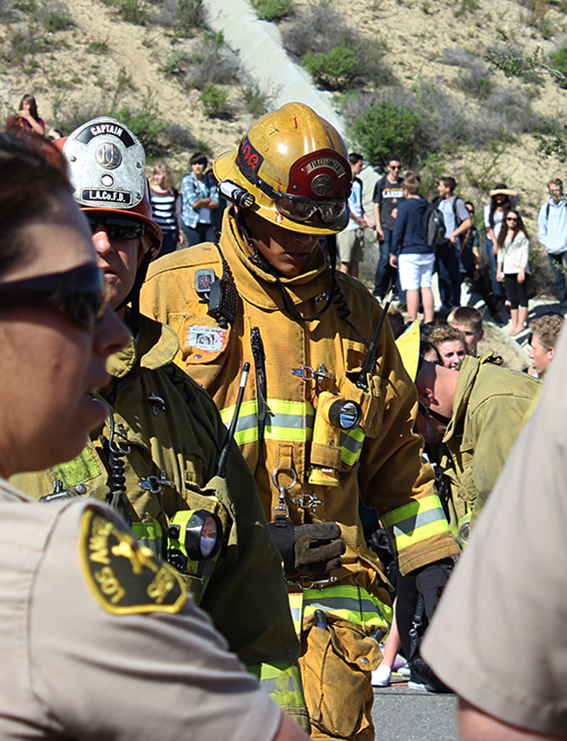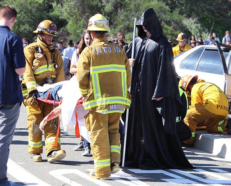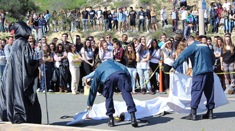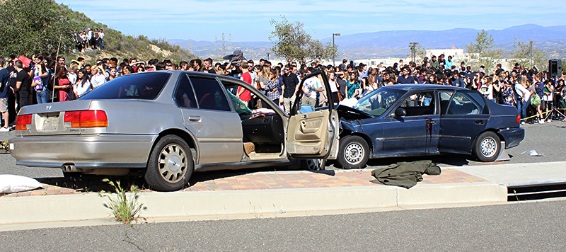 West Ranch High School students learned the ultimate lesson Thursday when they watched as their classmates simulated death in a drunken driving collision as part of the “Every 15 Minutes” program. Hundreds of high school juniors and seniors watched as their friends and classmates were pulled out cars that collided head on and put into “body bags.” “Every 15 Minutes” is a two-day program which demonstrates to junior and senior high school students the impact impaired driving has on friends, family and their community, according to the news release. Local law enforcement and emergency officials simulated a response to a fatal collision involving a drunk driver Thursday morning while the students watched. “I believe that Every 15 Minutes is particularly important in this valley because of the extraordinary amount of driving age students in the valley,” said CHP Officer John Lutz, in a previous interview. Along with the California Highway Patrol, the City of Santa Clarita, the William S. Hart Union High School District and West Ranch High School, the Los Angeles County Fire Department, Los Angeles County Sheriff’s Department, Los Angeles County District Attorney’s Office, Henry Mayo Newhall Memorial Hospital, American Medical Response, Eternal Valley Mortuary, the Hyatt Regency Valencia, and many other community partners and affiliates participate in the simulation. The Every 15 Minutes program is funded by a grant from the California Office of Traffic Safety through the National Highway Traffic Safety Administration, according to the news release. Valencia High and Golden Valley High School students participated in the “Every 15 Minutes” program last year. “The main goal of this powerful, high impact and very emotional program is to educate all individuals regarding the severe dangers awaiting those who make these choices, particularly those related to reckless driving, speed contests, drinking alcohol or using drugs and driving, and now distracted driving and texting,” said officials from the event in a previous interview. “This emotionally charged program is an event designed to dramatically instill teenagers with the consequences associated with drinking alcohol, reckless driving and life choices,” said Deputy Josh Dubin of the Santa Clarita Valley Sheriff’s Station, in a previous interview. “The program will challenge students to think about personal safety and the responsibility of making mature decisions.” |