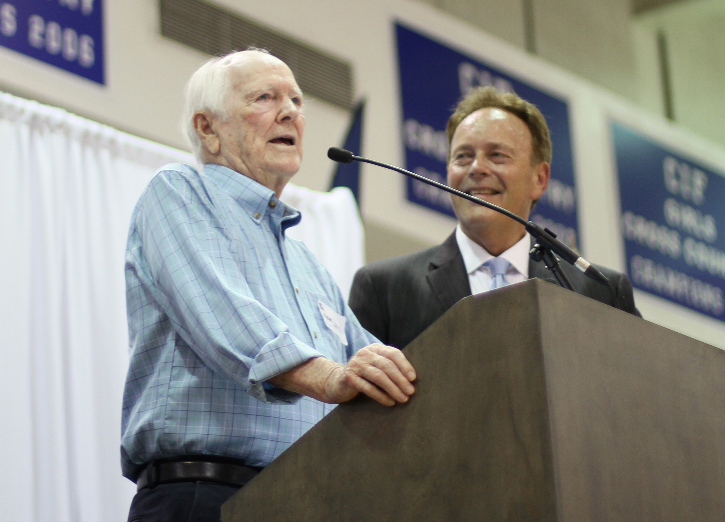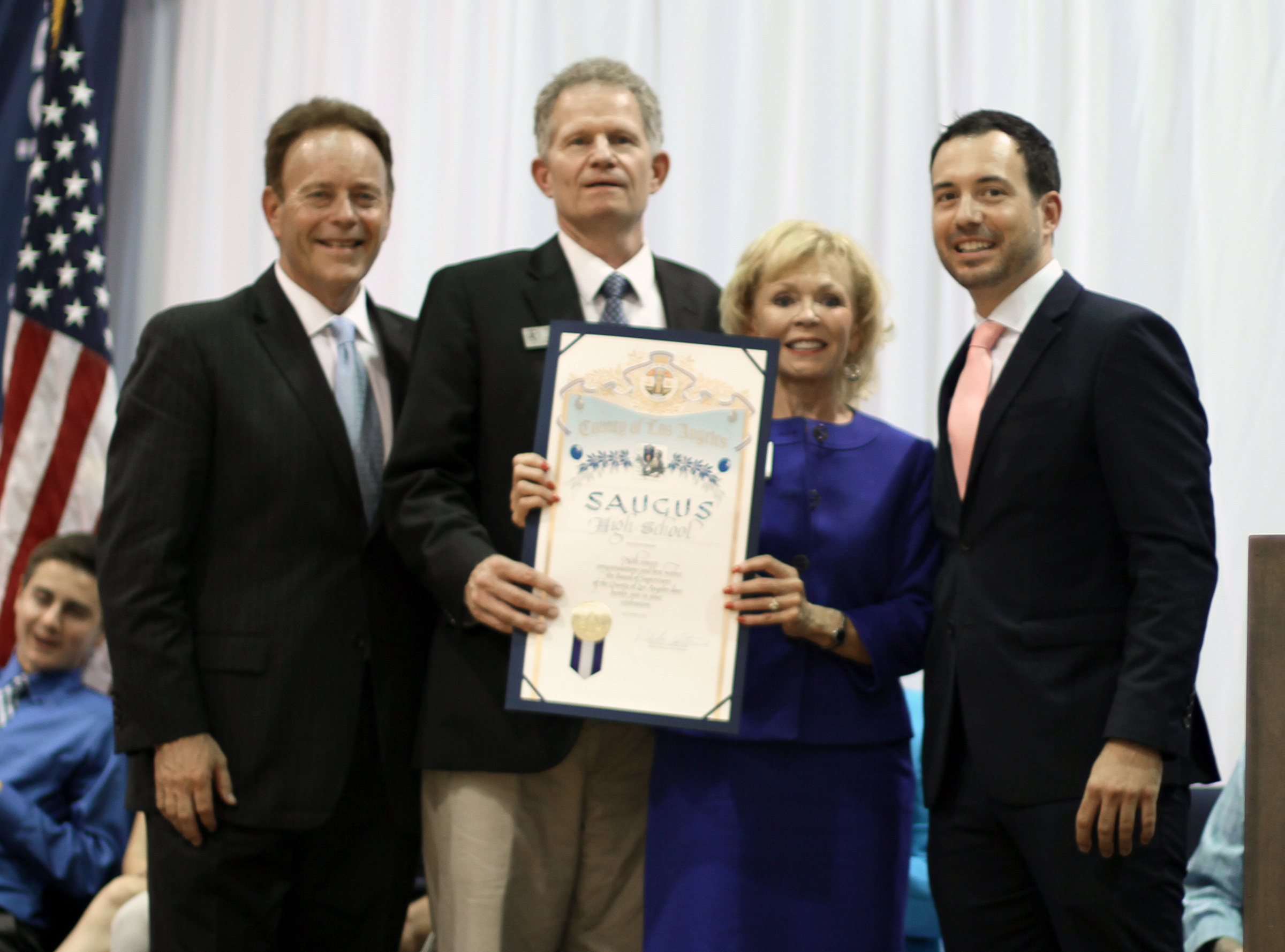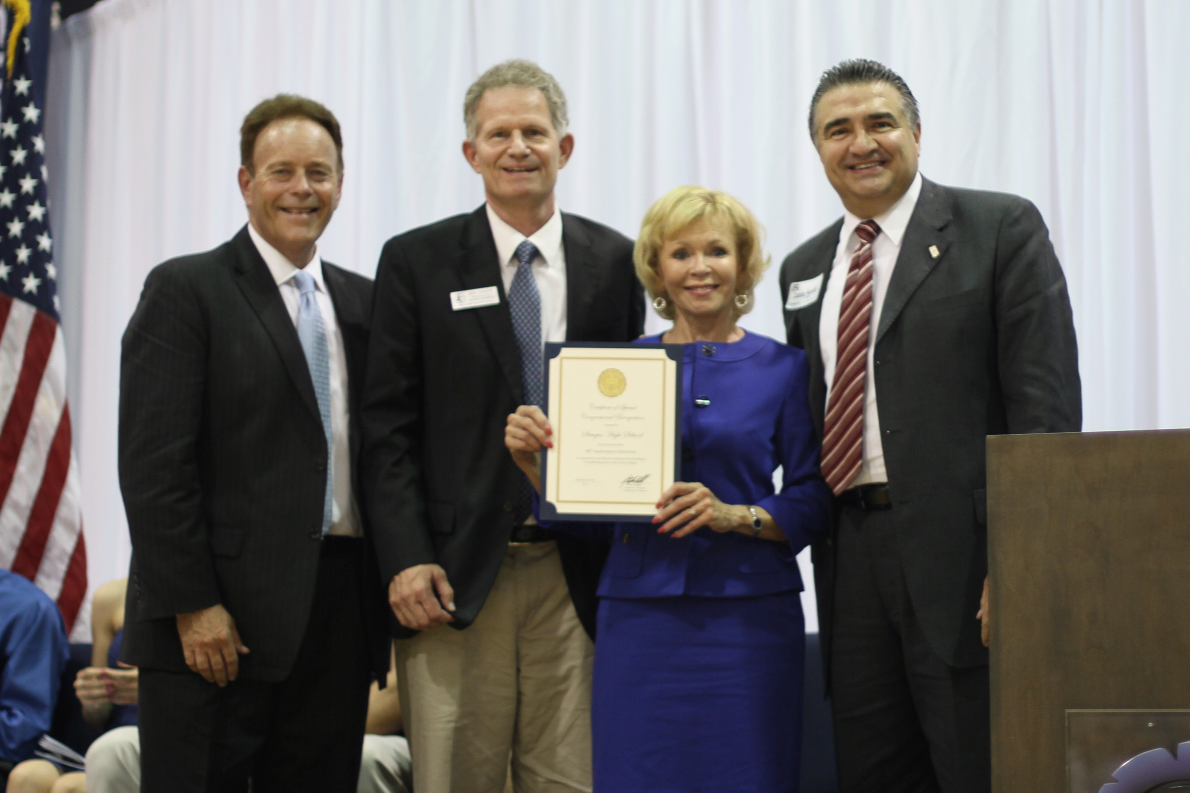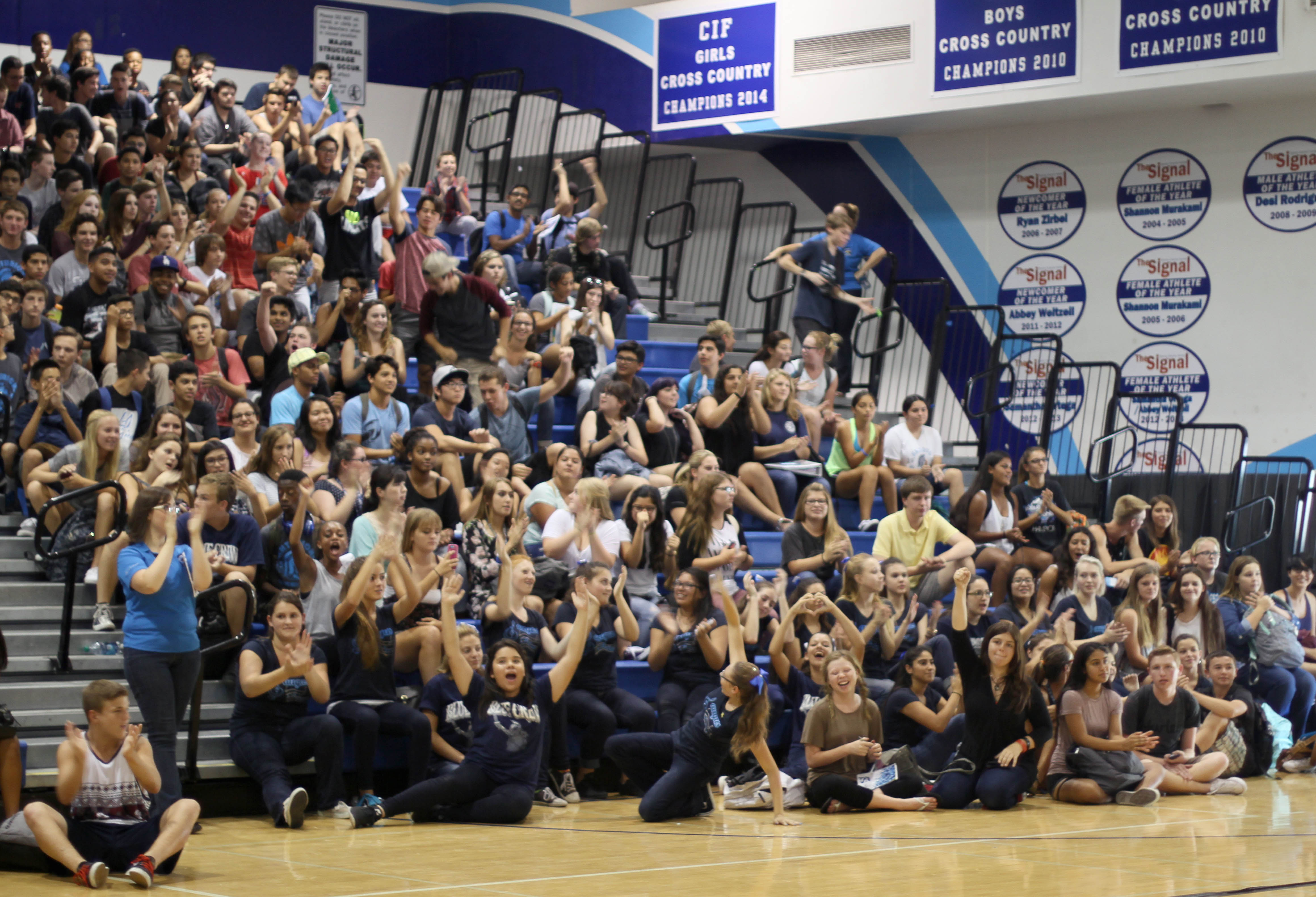 Uploaded 09/08/2015 Photos by Leon Worden / Story by Heather Harbin, Hometownstation.com To commemorate Saugus High School’s 40th anniversary, thousands of Saugus High School past and present students, staff, guest speakers and politicians filled the Saugus gymnasium Tuesday morning. Saugus High School opened on Sept. 6, 1975, with 43 teachers and 15 classified employees who helped facilitate the instruction of 870 ninth and 10th grade students, said Bill Bolde, the current principal at Saugus High School. “(Saugus High School has) changed over the past 40 years and we’re a very respectable school in the state of California,” said Bolde. “Fantastic people started Saugus High School. For four decades, this school has thrived on excellence… I’m proud to know we are centurions because they stand for so much honor and integrity and dignity.” Saugus High School invited alumni and former staff back to the campus for tours and an assembly involving current Saugus High School students, as well as guest speakers. “What makes today really special, is the former staff members and former students who have returned to their old stomping grounds and (reconnected) with their past,” said Bolde. Among the former staff members who returned was the 91-year-old founding principal of Saugus High School, Dr. Myron Sproul. “It is overwhelming to be here,” said Sproul. “The Saugus that I opened is not the Saugus of today… It is remarkable the changes that have taken place.” Hart School District Superintendent Vicki Engbrecht was among the guest speakers. “We’re very proud of the rich history and all of the outstanding contributions Saugus High School has made to the community,” Engbrecht said. Saugus High School was built with 6.9 million taxpayer dollars in 1975, said Bolde. The Performing Arts Center Saugus High School plans to built in the next year or so will cost approximately twice as much, Bolde said. “No one loves Saugus more than I do. Saugus has so many great traditions today and it’s come so far,” said Doug Worley, a founding faculty member and baseball coach at Saugus High School. “I think what I, of all people, have so much to be grateful for is that literally God gave me the opportunity to teach and coach at Saugus High School.” Many students who went to Saugus High School said they loved the school, said Worley. “I will tell you very honestly and sincerely, that when kids talk to me, I always simply ask them, how do you feel looking back at Saugus,” said Worley. “I swear to you that overwhelmingly, they love it.” Recognitions were given to Saugus High School on behalf of U.S. Rep. Steve Knight, L.A. County Supervisor Michael Antonovich, Sen. Sharon Runner, Assemblyman Scott Wilk and Santa Clarita City Councilman Dante Acosta. |