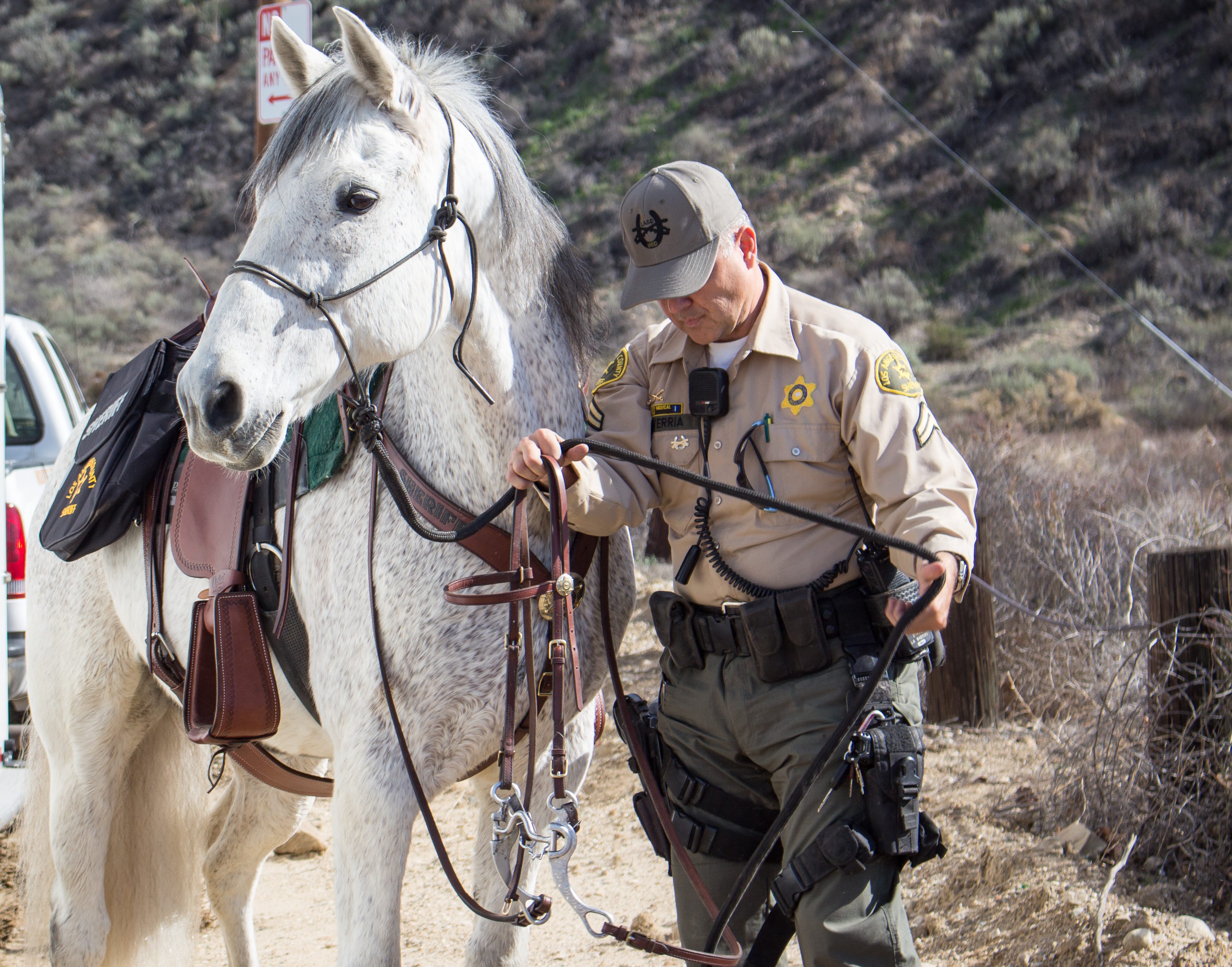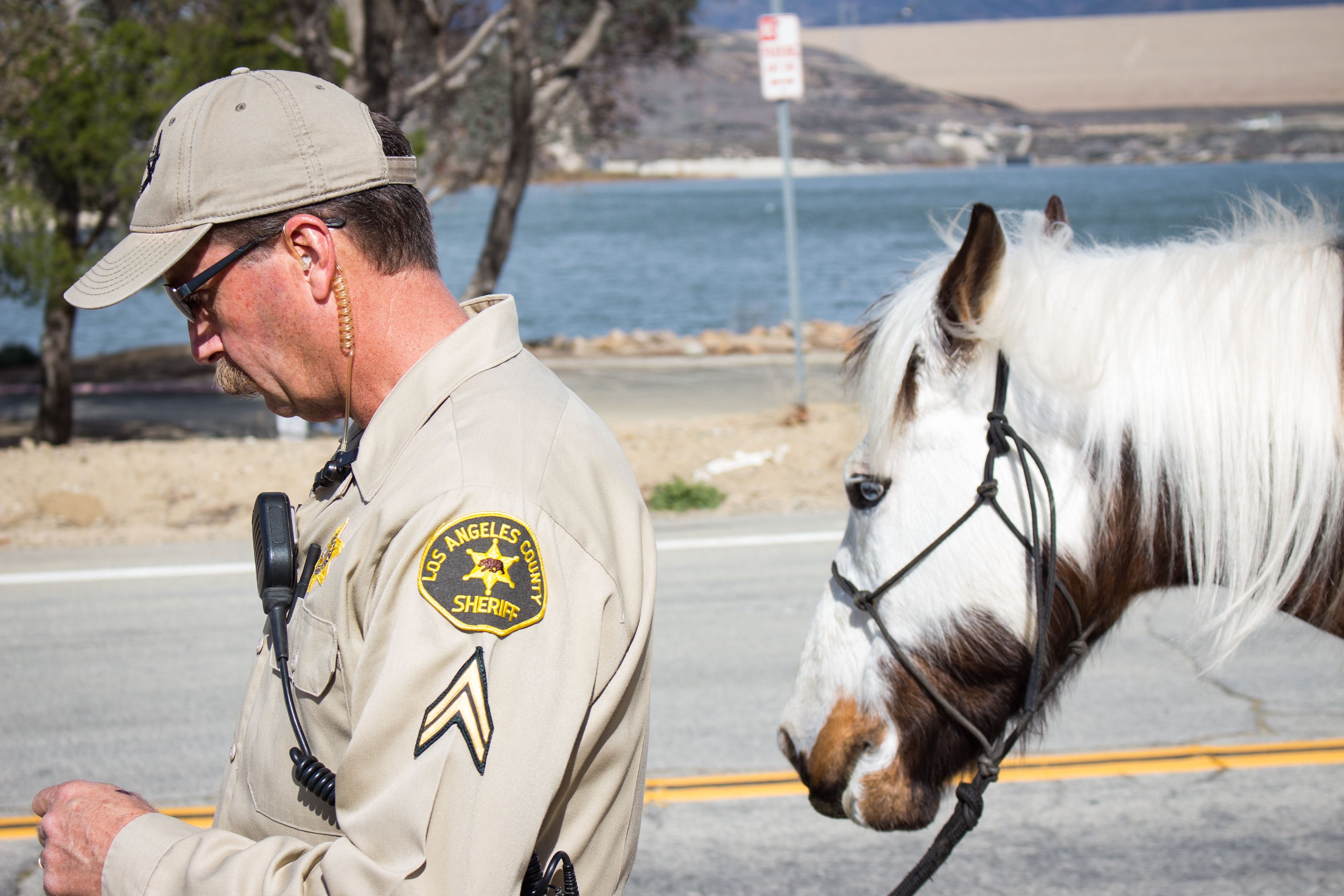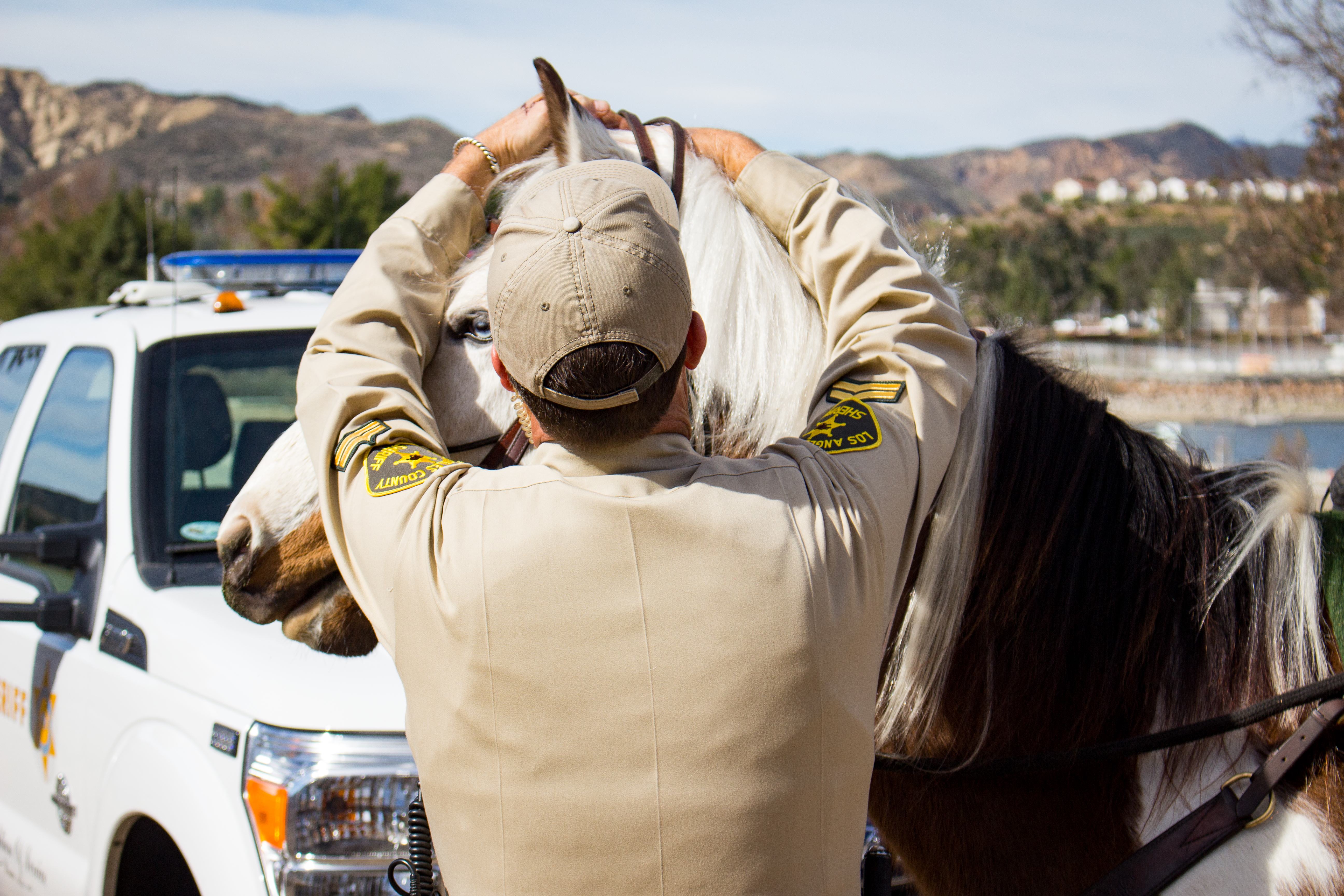 Uploaded 02/03/2016 Photos by Halie Cook The Los Angeles County Sheriff’s Department Mounted Enforcement Detail is known for patrolling the county’s more troubled inner city parks and is usually seen at large events around the city. What many Santa Clarita natives don’t realize is that even in a small city like this, mounted patrol officers are still looking out for trouble. There are over 150 parks in Los Angeles County and the Mounted Enforcement Unit focuses most of their time on 20 of those parks, primarily inner-city, that have a history of crime and gang activity. “My team and I get on our trusty steads and patrol the park and vicinity looking for criminal activity,” said Sgt. David Sauer, the officer in charge of the unit for Los Angeles County. “People smoking, drinking, doing drugs, vandalizing, graffiti, gang activity, and the myriad of things that would detract from having a good time in the park.” Sauer says the most common crimes the unit runs into are weapons violations, and drug-and-alcohol violations. “It’s funny because horses can sneak up on people. You wouldn’t think that a big animal like that would be easy to sneak up on people, but when people are focused on what their doing – whether they’re walking along the street or whether they are tagging the side of a water tank horses can sneak right up to them,” said Sauer. “It’s pretty funny to see the surprised look on people’s faces.” Officers snuck up on two men tagging the water tower in Veteran’s Park, prompting the suspects to drop their spray cans and make a run for it – right into a backyard birthday party. The taggers then asked the partygoers to “hide them” as they are running from the police. What they didn’t know was that the party was for an off-duty police officer and all the guests were also part of the force. “You know it’s not your day when you run from one set of cops right into the arms of another set of cops. Don’t buy a lotto ticket today dude,” said Sauer. As a part of the force, deputies have to be able to respond quickly in high-stress incidents. Officers were put to the test in April 2015 when three deputies on horseback approached a suspicious car that was parked in a secluded area of the park with the driver inside. Deputies suspected there was a drug-deal happening and asked the driver some standard questions. The suspect became violent and overpowered the three deputies and managed to grab a hold of an arm and take off in the car. He floored the gas peddle, sending dirt flying in all directions and dragging one deputy with him. At this point, one of the officer’s pulled his weapon and shot at the suspect. He missed but left the suspect disoriented for long enough for the deputy to free himself. The suspect was later arrested and charged for multiple crimes. “My favorite part of the job is working with the guys that I work with,” said Sauer. “We started our friendship riding horses together for the police department and here we are riding horses together full-time.”