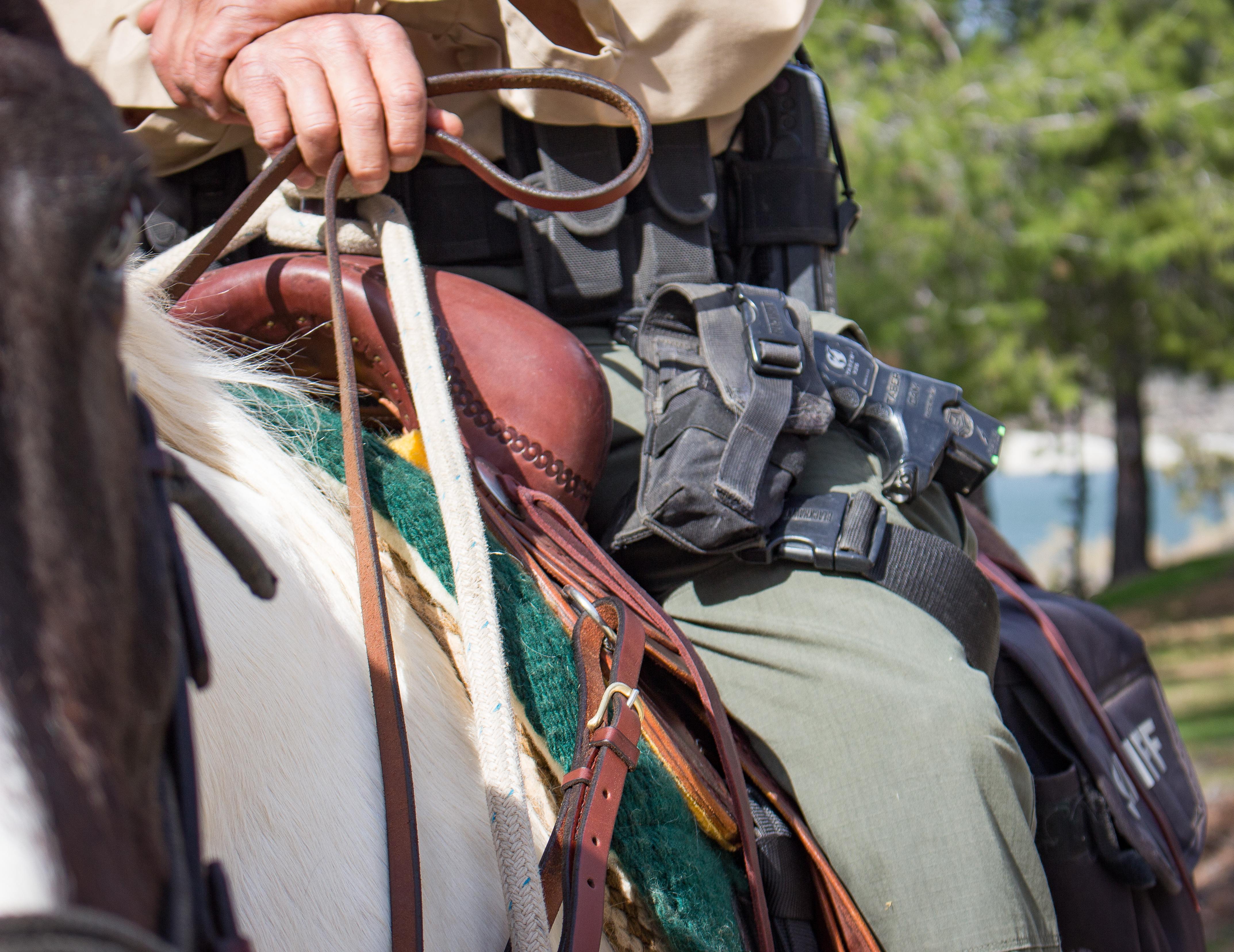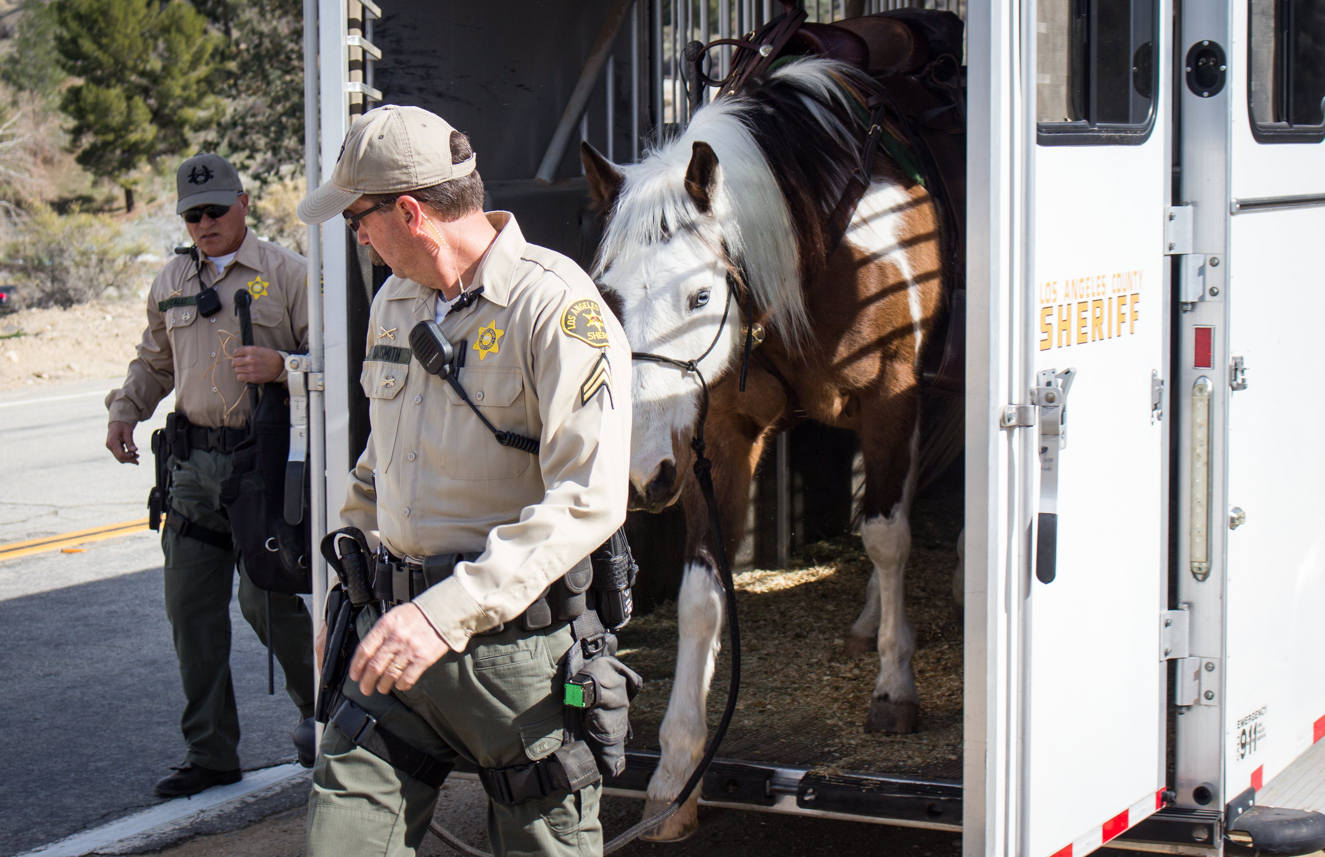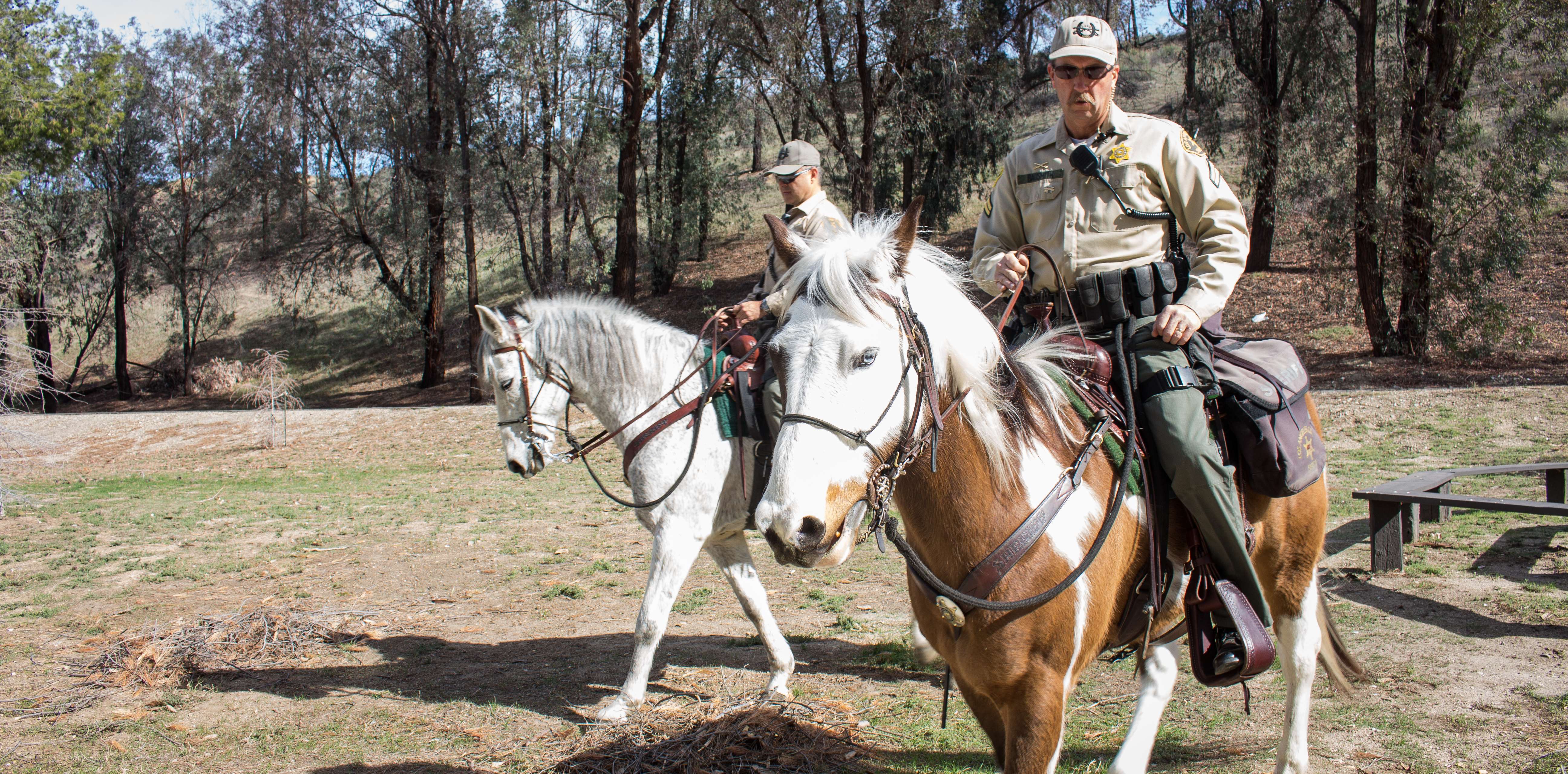 Uploaded 02/03/2016 Photos by Halie Cook The Los Angeles County Sheriff’s Department Mounted Enforcement Detail is known for patrolling the county’s more troubled inner city parks and is usually seen at large events around the city. What many Santa Clarita natives don’t realize is that even in a small city like this, mounted patrol officers are still looking out for trouble. There are over 150 parks in Los Angeles County and the Mounted Enforcement Unit focuses most of their time on 20 of those parks, primarily inner-city, that have a history of crime and gang activity. “My team and I get on our trusty steads and patrol the park and vicinity looking for criminal activity,” said Sgt. David Sauer, the officer in charge of the unit for Los Angeles County. “People smoking, drinking, doing drugs, vandalizing, graffiti, gang activity, and the myriad of things that would detract from having a good time in the park.” Sauer says the most common crimes the unit runs into are weapons violations, and drug-and-alcohol violations. “It’s funny because horses can sneak up on people. You wouldn’t think that a big animal like that would be easy to sneak up on people, but when people are focused on what their doing – whether they’re walking along the street or whether they are tagging the side of a water tank horses can sneak right up to them,” said Sauer. “It’s pretty funny to see the surprised look on people’s faces.” Officers snuck up on two men tagging the water tower in Veteran’s Park, prompting the suspects to drop their spray cans and make a run for it – right into a backyard birthday party. The taggers then asked the partygoers to “hide them” as they are running from the police. What they didn’t know was that the party was for an off-duty police officer and all the guests were also part of the force. “You know it’s not your day when you run from one set of cops right into the arms of another set of cops. Don’t buy a lotto ticket today dude,” said Sauer. As a part of the force, deputies have to be able to respond quickly in high-stress incidents. Officers were put to the test in April 2015 when three deputies on horseback approached a suspicious car that was parked in a secluded area of the park with the driver inside. Deputies suspected there was a drug-deal happening and asked the driver some standard questions. The suspect became violent and overpowered the three deputies and managed to grab a hold of an arm and take off in the car. He floored the gas peddle, sending dirt flying in all directions and dragging one deputy with him. At this point, one of the officer’s pulled his weapon and shot at the suspect. He missed but left the suspect disoriented for long enough for the deputy to free himself. The suspect was later arrested and charged for multiple crimes. “My favorite part of the job is working with the guys that I work with,” said Sauer. “We started our friendship riding horses together for the police department and here we are riding horses together full-time.”