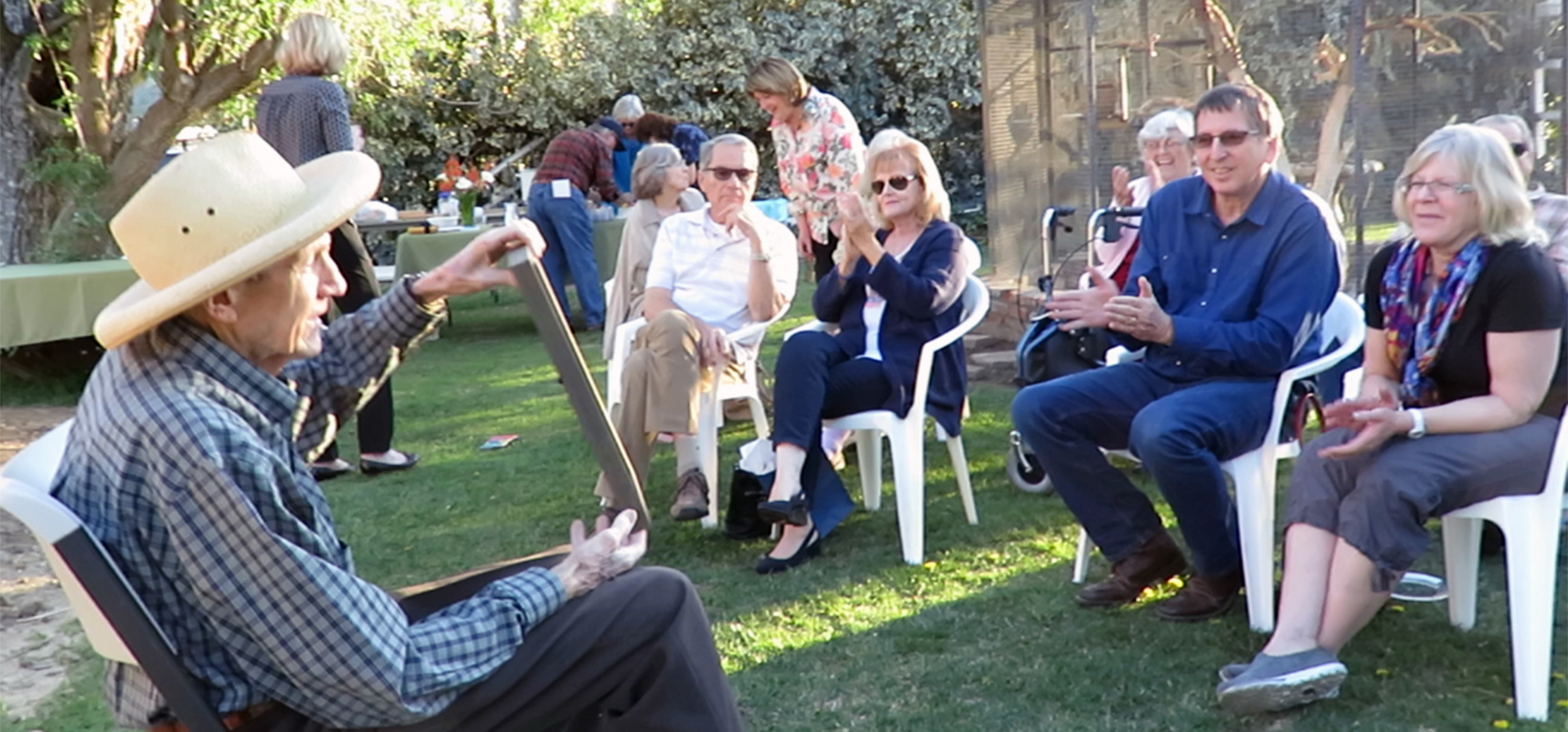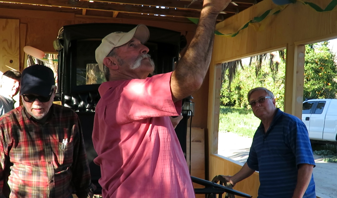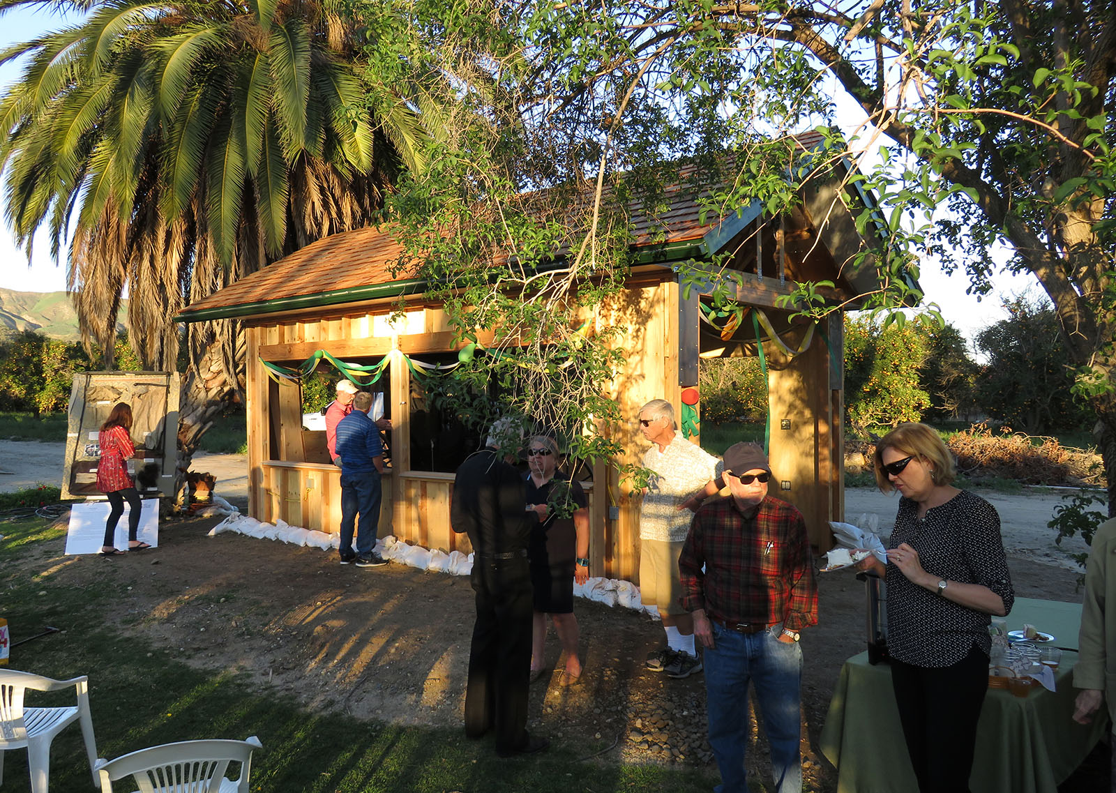 Uploaded 02/21/2016 The new, two-horse buggy that the Del Valle family purchased in 1861 and brought around Cape Horn to their 48,000-acre Rancho San Francisco (aka the Santa Clarita Valley) was in sad shape when Rancho Camulos Museum volunteer Ralph Rees and his wife Pat took it upon themselves to restore it to its former glory in 2009. Recently, Ralph came up with the idea of building a carriage house with a 270-degree view so the buggy could be seen, appreciated and protected. Ralph designed the carriage house and managed a group of fellow volunteers who helped him build it on the museum grounds (10 miles west of Valencia on scenic Highway 126). The new carriage house is nearly complete; a pecan tree that fell on the ranch property last year will provide lumber for the exterior siding. On Sunday the buggy was rolled into the new carriage house for a formal dedication. The event doubled as a celebration of Ralph’s 90th birthday. – Leon Worden |