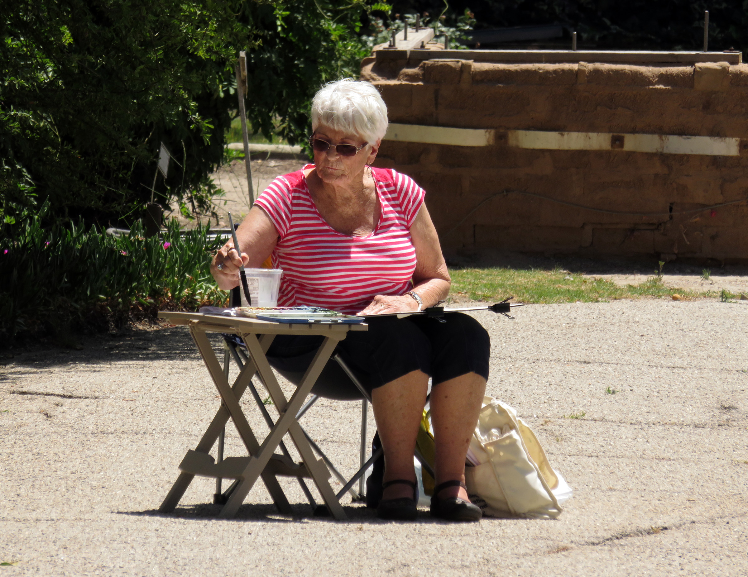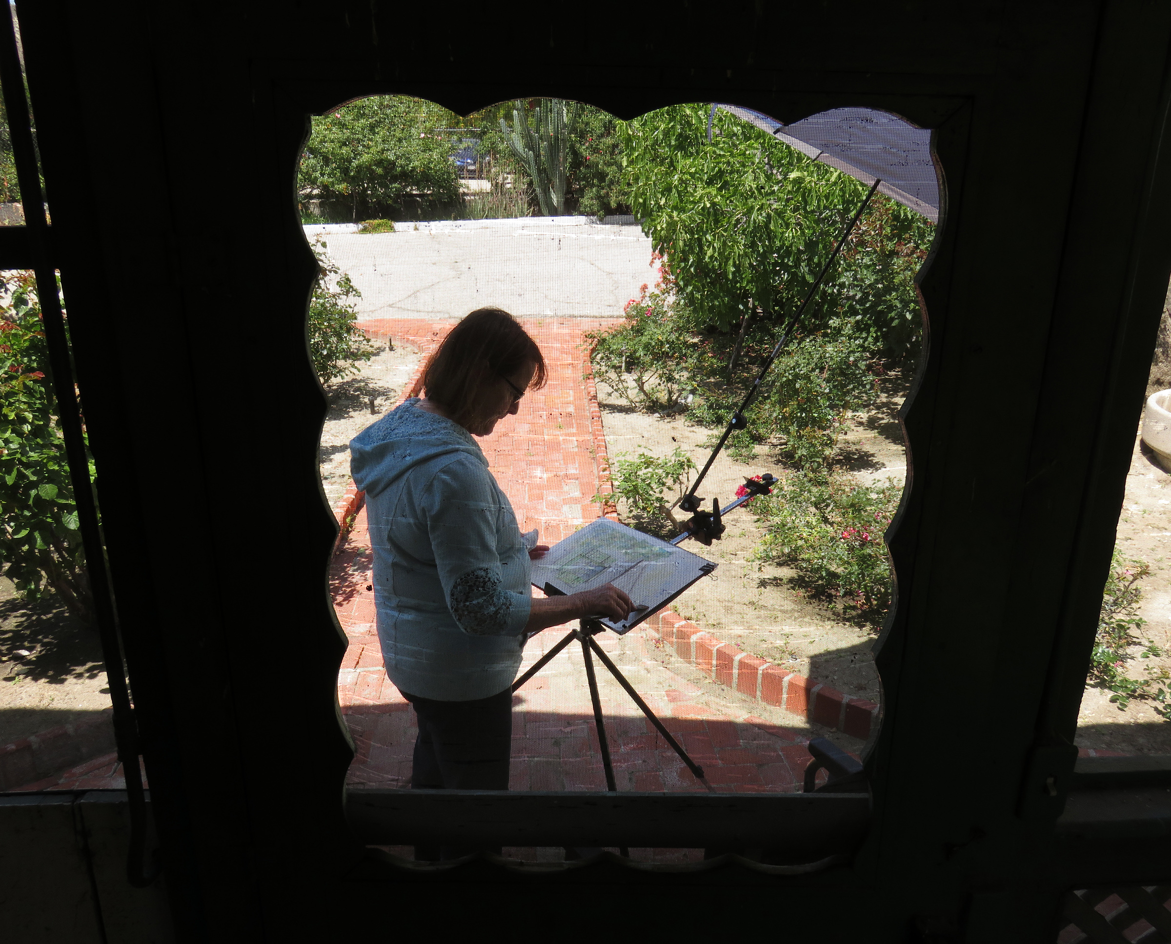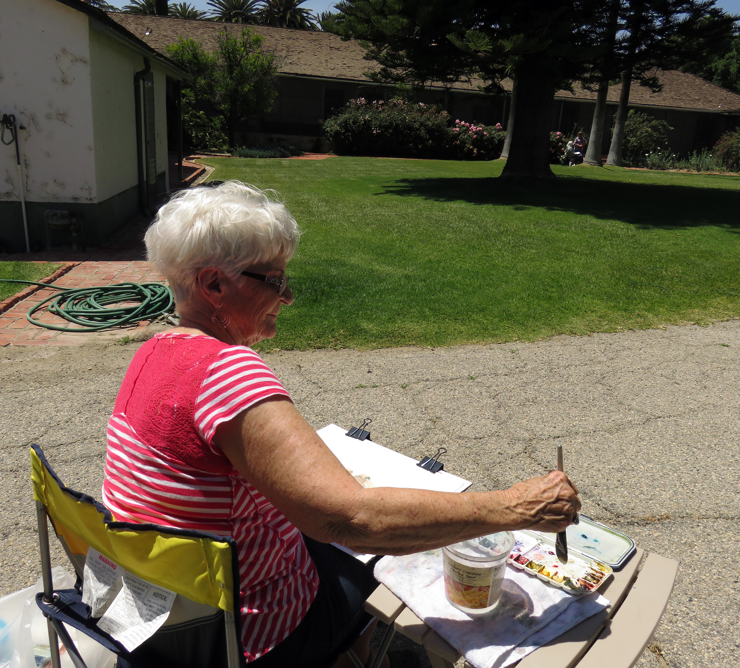 Uploaded 05/15/2016 Rancho Camulos, garden spot of the Santa Clarita Valley, known as the “Home of Ramona” and an idyllic location for a wedding, was turned into an artist’s tableau Saturday as plein-air painters participated in the annual Artists Day at the historic California rancho. A pleasant spring breeze accentuated the views of the 1853 adobe home of the Del Valle family, as well as the famous rose gardens, the 1867 winery building, the chapel, and the schoolhouse built in 1930 by the rancho’s second owner, August Rübel. Artists spread themselves throughout the grounds of the Rancho Camulos Museum and were treated to lunch and guided tours by museum docents. Open for public viewing on Sundays, Rancho Camulos Museum is located 10 miles west of Valencia on scenic Highway 126. For more information about Rancho Camulos, click here. For the history and old photos of the ranch, click here.