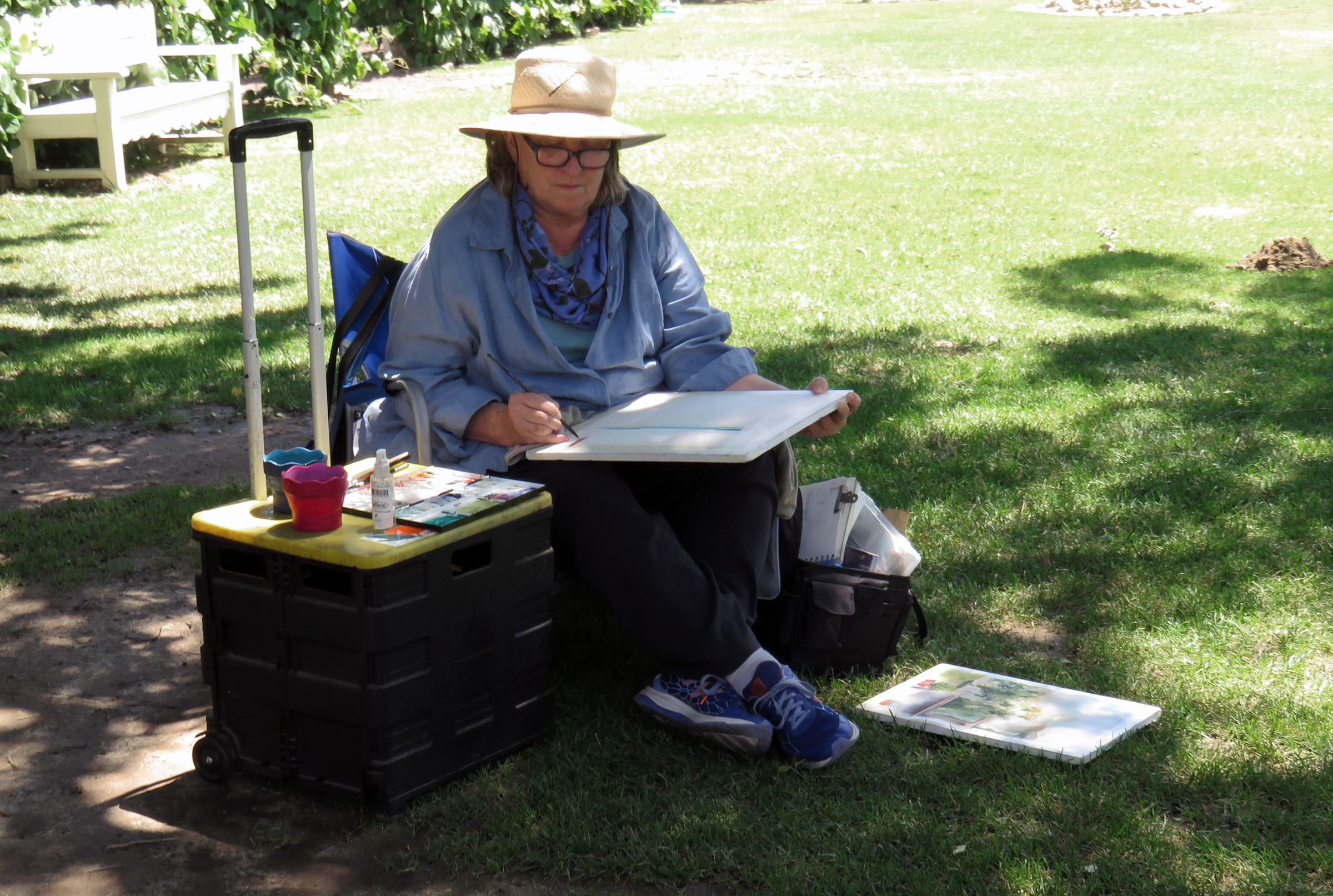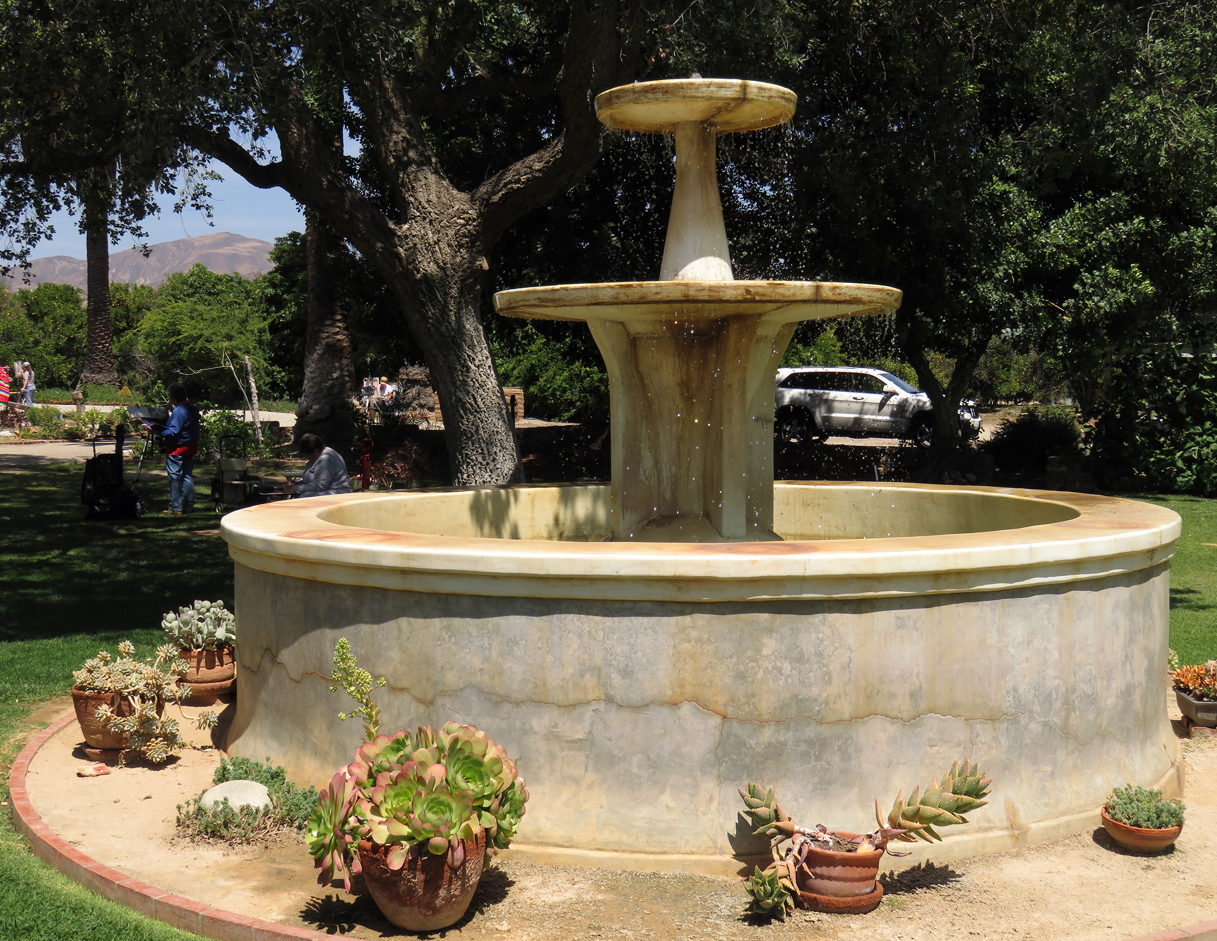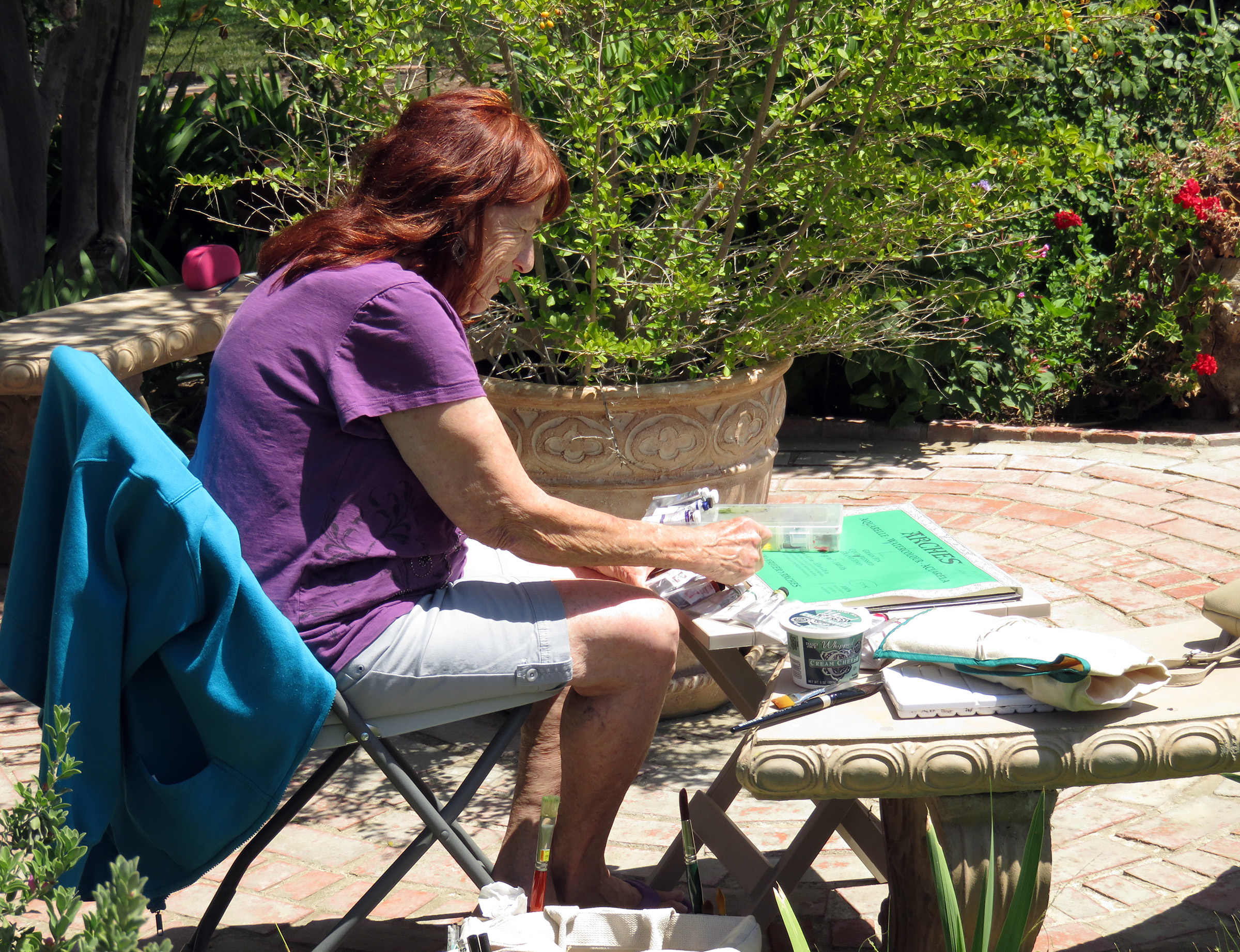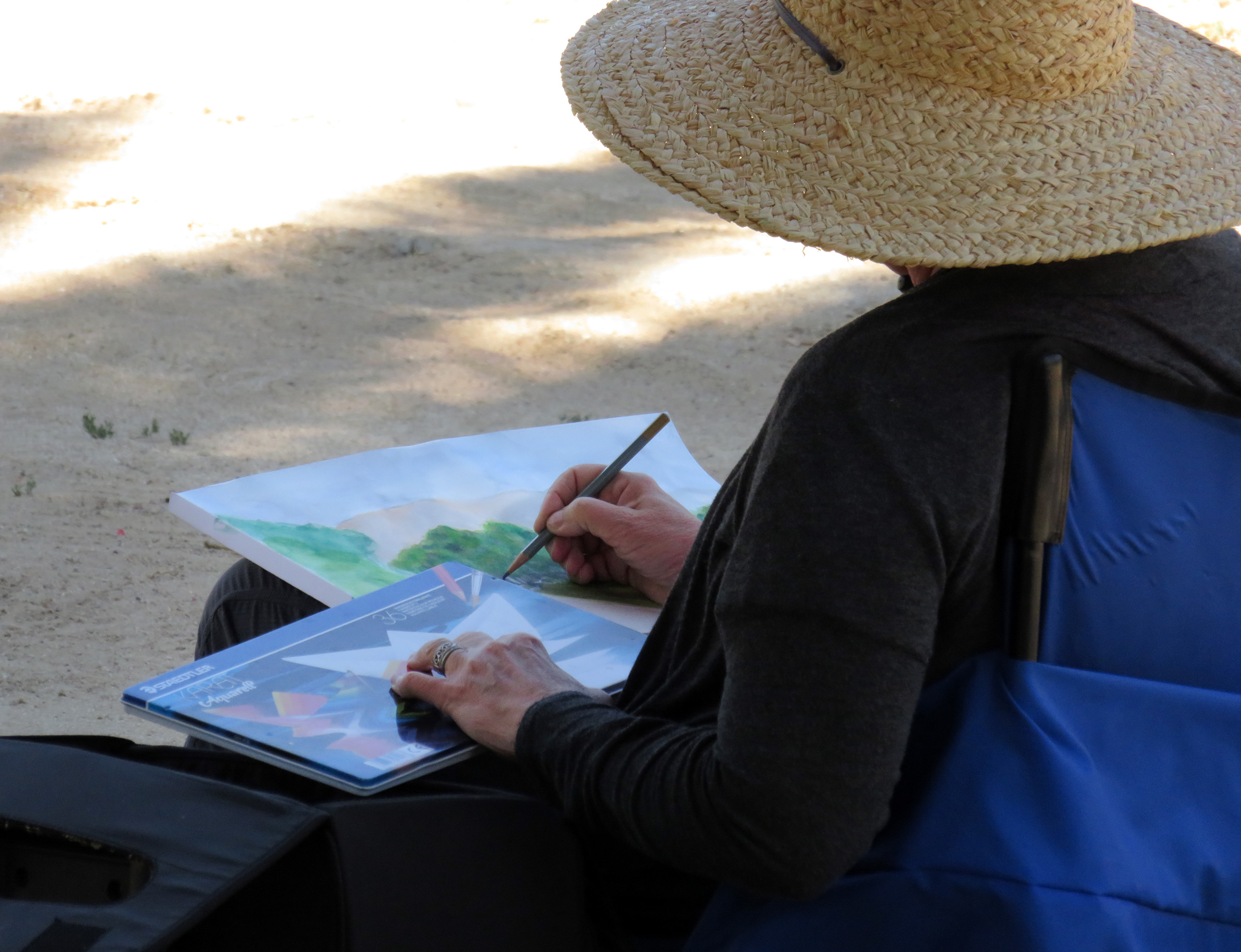 Uploaded 05/15/2016 Rancho Camulos, garden spot of the Santa Clarita Valley, known as the “Home of Ramona” and an idyllic location for a wedding, was turned into an artist’s tableau Saturday as plein-air painters participated in the annual Artists Day at the historic California rancho. A pleasant spring breeze accentuated the views of the 1853 adobe home of the Del Valle family, as well as the famous rose gardens, the 1867 winery building, the chapel, and the schoolhouse built in 1930 by the rancho’s second owner, August Rübel. Artists spread themselves throughout the grounds of the Rancho Camulos Museum and were treated to lunch and guided tours by museum docents. Open for public viewing on Sundays, Rancho Camulos Museum is located 10 miles west of Valencia on scenic Highway 126. For more information about Rancho Camulos, click here. For the history and old photos of the ranch, click here.