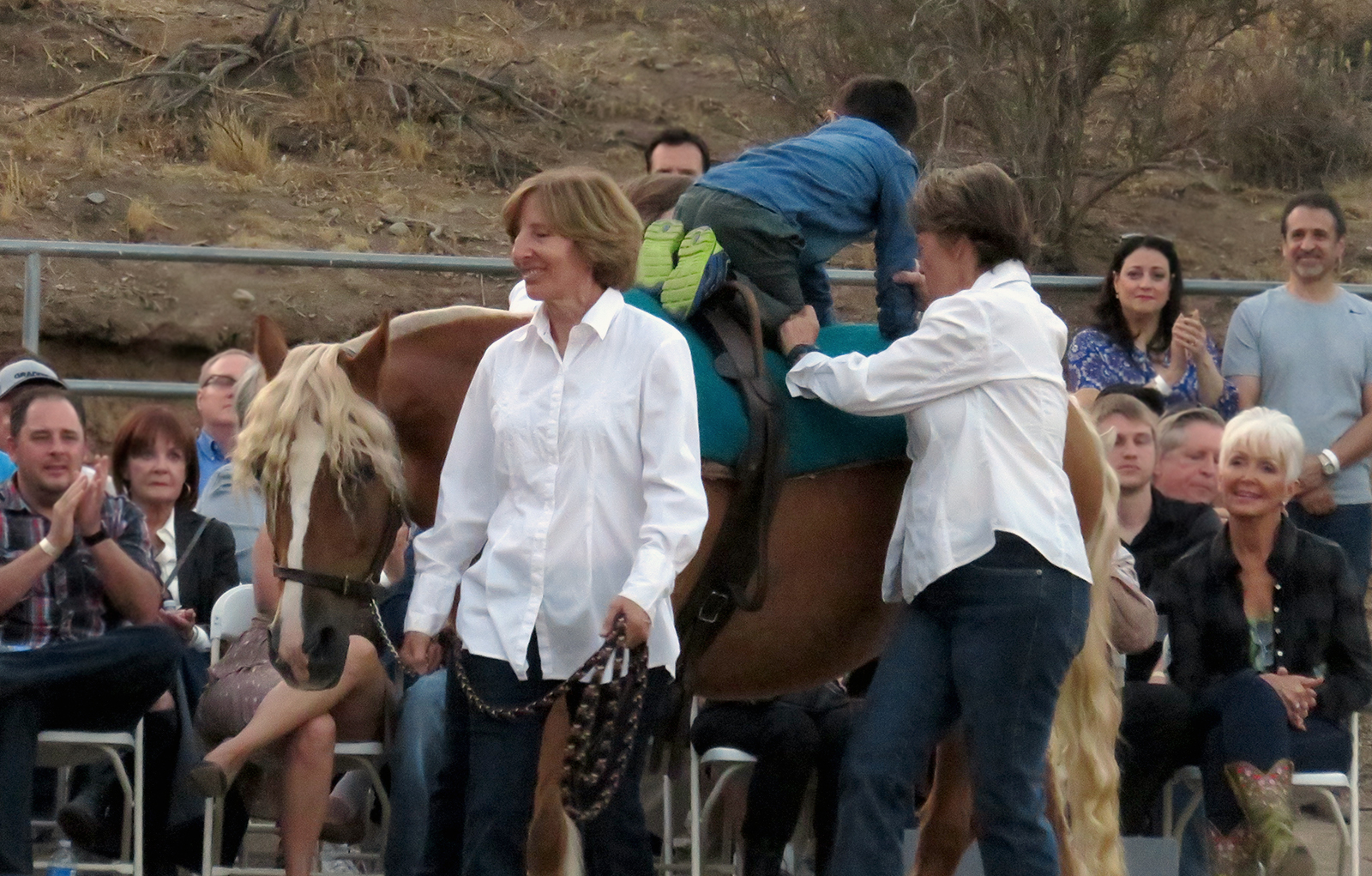 Uploaded 08/28/2016 Saturday’s 20th annual Heart of the West fundraiser was a sell-out as hundreds of supporters returned to Carousel Ranch in Agua Dulce for a full evening of fun and entertainment. Highlight of the event – which included live music from Rebel Heart, silent and live auctions with two puppies and and an after-party poker game – was a demonstration showcasing the amazing work Carousel Ranch does to improve the lives of special-needs children and young adults through equestrian therapy. Carousel Ranch is a nonprofit organization dedicated to providing developmental therapeutic and recreational programs for disabled and disadvantaged children through horses. Established in July 1997, this exciting concept in equestrian therapy combines vaulting (gymnastics on a moving horse) and therapeutic riding (both English and Western), resulting in an exceptional goal orientated program for special needs children. The goals and benefits are different for every child, depending on their individual needs. The movement of the horse causes an inherent response from the child, relaxing muscles that are tight, increasing tone in muscles that are weak, building balance, coordination and control, which in turn enables children to use hands and arms, sit, stand and walk. More: CarouselRanch.org |