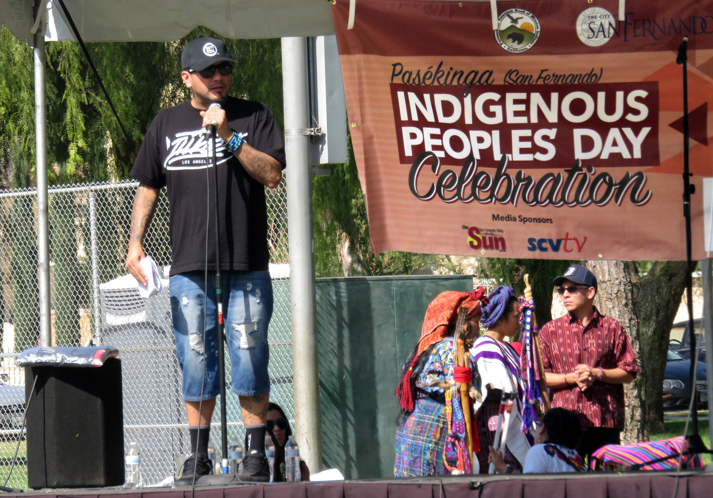 Uploaded 10/15/2016 A reminder that what Christopher Columbus actually discovered was a continent full of people, the Fernandeno-Tataviam Band of Mission Indians hosted its first-ever Indigenous Peoples Day Celebration Saturday in a park in San Fernando – which city became the first in Southern California last year to recognize the day and co-hosted Saturday’s event. This year, Seattle and Phoenix joined the growing ranks of cities that have either replaced or augmented the Columbus Day holiday. Led by Chairman Rudy Ortega Jr., the Fernandeno-Tataviam Band is the local tribe, consisting of indigenous people who trace their ancestry to the Santa Clarita and San Fernando valleys prior to the summer of 1769 when the first Europeans – a group of Spanish soldiers, missionaries and guides – set foot here and encountered them. According to one missionary’s diary entry, the villagers of the Santa Clarita Valley of 1769 were hospitable and provided the visitors with food and guides to help them along their way down the future Highway 126 corridor toward Ventura. With powwow dancers, birdsingers, storytellers, arts and craft vendors and frybread, Saturday’s event was as much an extended family get-together as it was an educational opportunity and a celebration of pan-American native activism, which reached a boiling point in the United States this year with the controversy over the Dakota Access Pipeline. Currently under construction, the pipeline would transport oil from the Bakken Formation in North Dakota to Texas. As approved by the Army Corps of Engineers, the pipeline would cut under and across the Missouri River, just beyond the borders of the Standing Rock Sioux Tribe’s reservation. Community members fear a leak would foul their water supply. Since April, thousands of Native Americans from all points on the map have heeded the cry, “Water Is Life,” converging on the Standing Rock Reservation to join the fight. Most tribal authorities across the country and several municipalities, including the city of Los Angeles, have formally supported the tribe’s position, which will ultimately play out in court. In the meantime, the Obama administration has ordered a halt to construction on federal lands near the reservation, including the passage across the Missouri. In attendance at Saturday’s event in San Fernando was Mato Gleska, aka Joanne Spotted Bear, an Oglala-Lakota Sioux activist from South Dakota who was picked by her clan leaders to file for standing as an intervenor in the court case, on the theory that treaty rights are vested in the people, not agencies (tribal government entities). On Saturday she said she’s in the process of filing court papers documenting her familial relationship to signers of 18th and 19th-century treaties. – Leon Worden |