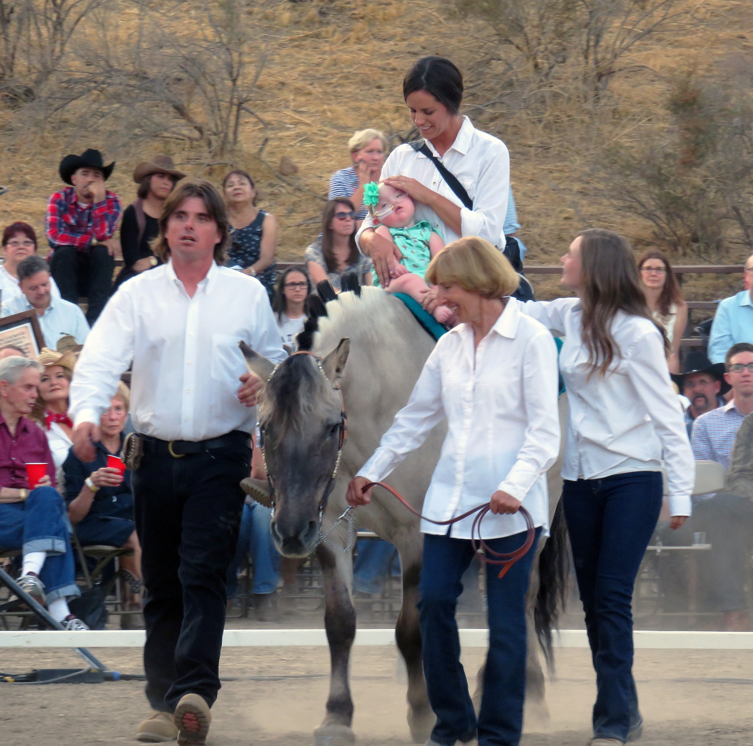 Uploaded 08/26/2017 A sellout crowd spent oodles of money (that’s an approximation) Saturday night to support the programs at Carousel Ranch, an equestrian therapy clinic in Mint Canyon that treats children and young adults who have a variety of special needs. Highlight of the evening was a horseback riding demonstration by Anthony Faggioli, 16, Anthony Lanzara, 12, Jalen Fender, 4, and baby Lilly Taylor – four of the organization’s 130 young clients. The latter figure represents a 30 percent increase over last year, said Executive Director Denise Redmond, thanks to a $100,000 grant from the county for a workforce preparedness program and ongoing support from the Santa Clarita Valley community through events such as Saturday’s 21st annual Heart of the West fundraiser. Funds poured in through both a silent and live auction, the sentimental favorite of which was a 9-week-old Labradoodle puppy that went to Carousel Ranch board member Wayne Crawford’s wife, Dianne.