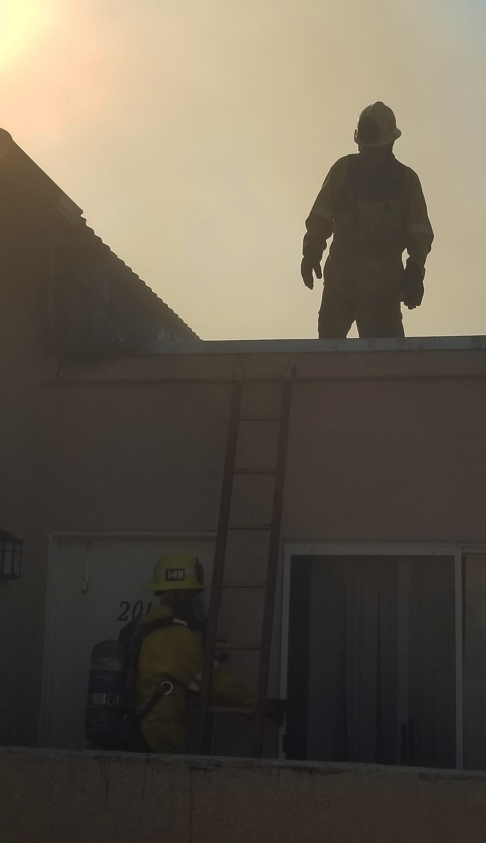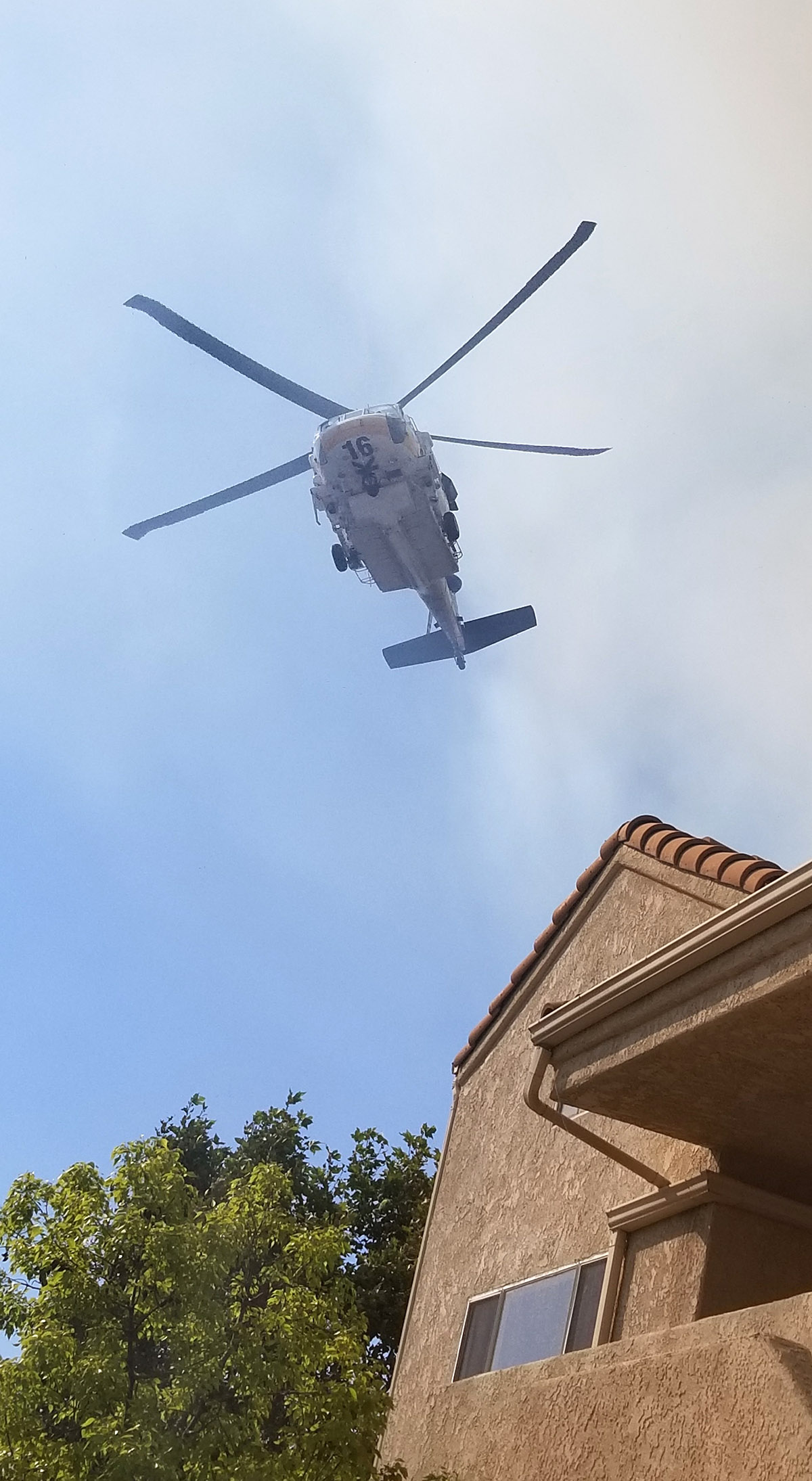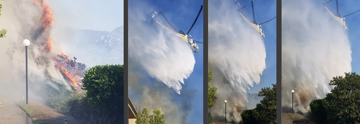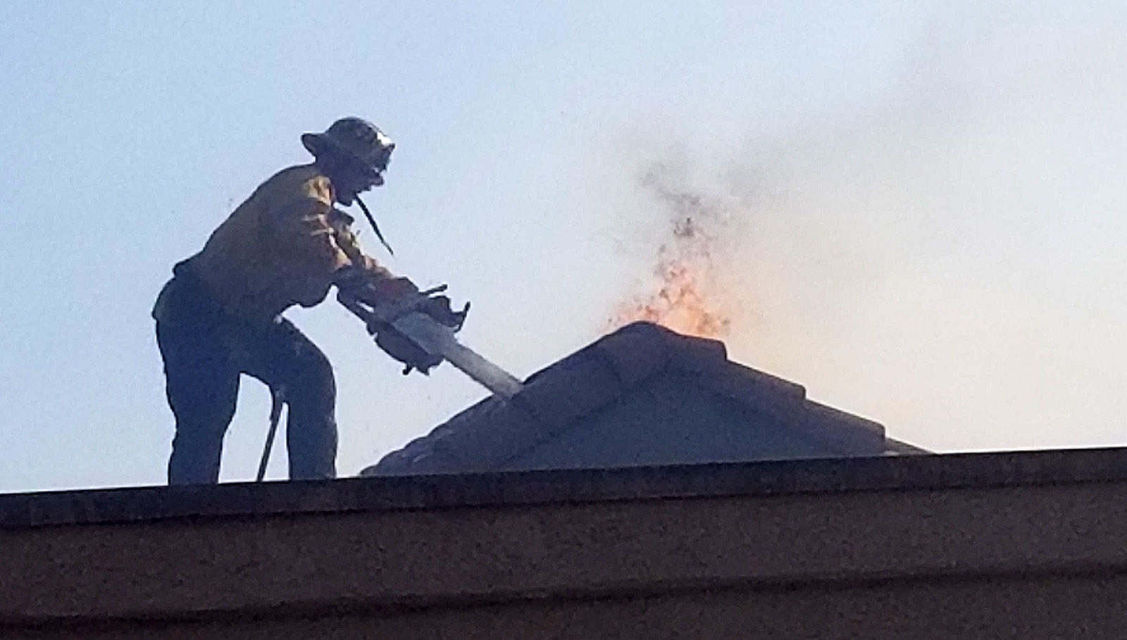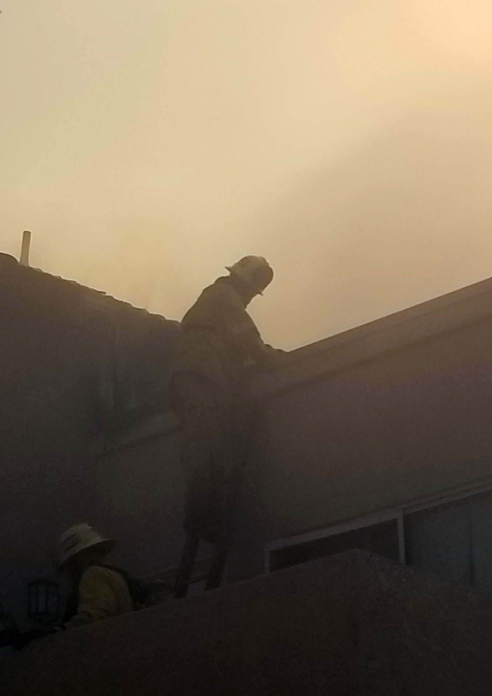 The fireman on the roof with the axe on the chainsaw was great. They all did a great job. The water drops really put it out on the hillside. It’s too bad it got into the apartments.