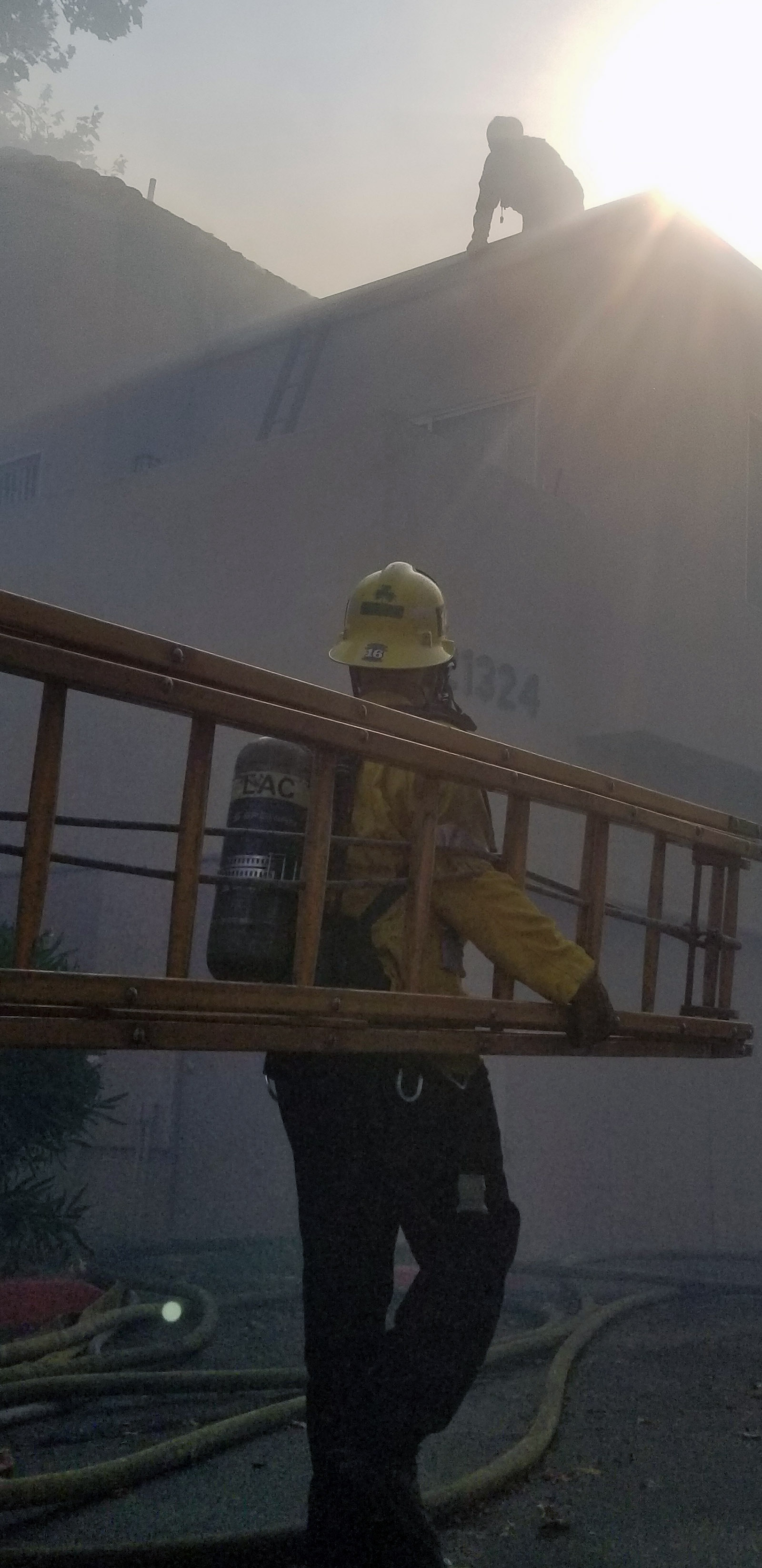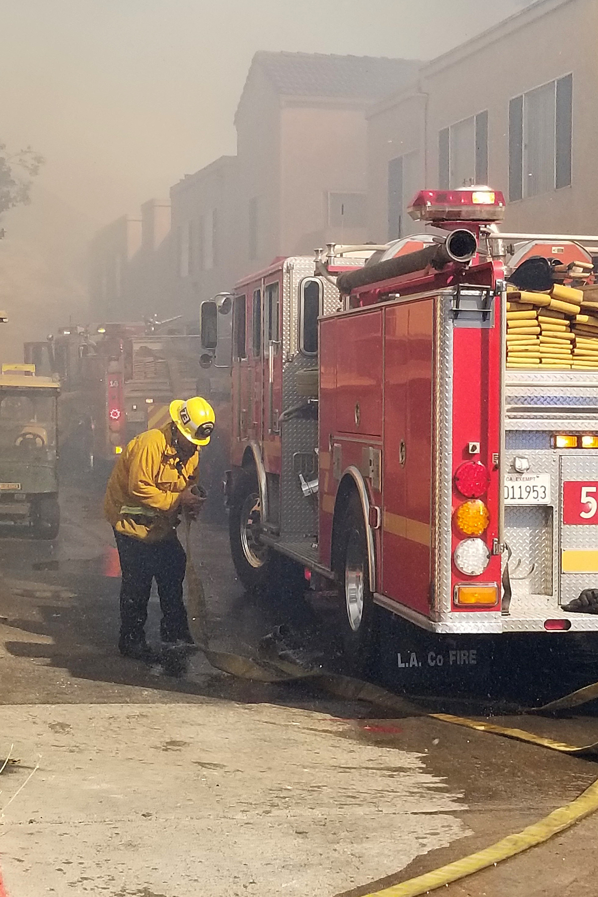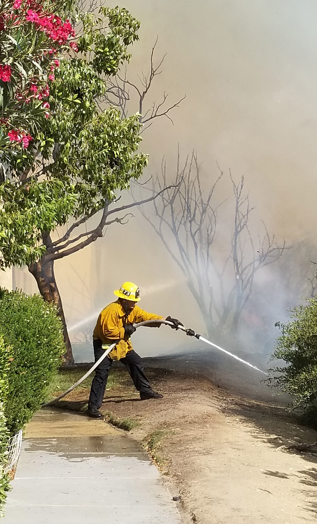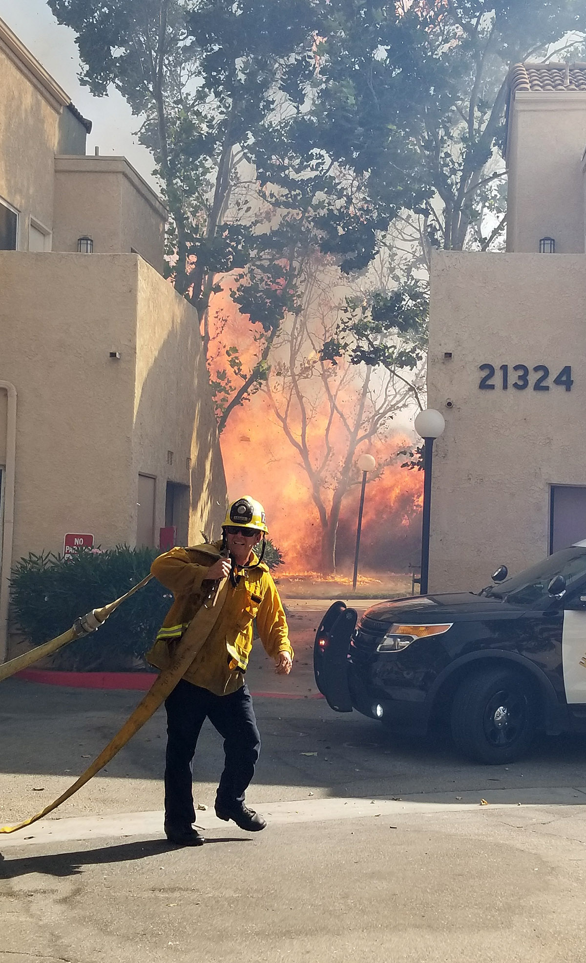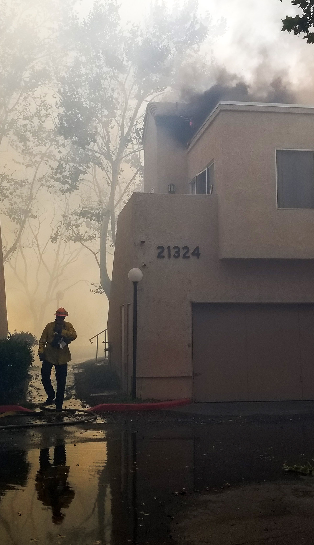 The fireman on the roof with the axe on the chainsaw was great. They all did a great job. The water drops really put it out on the hillside. It’s too bad it got into the apartments.