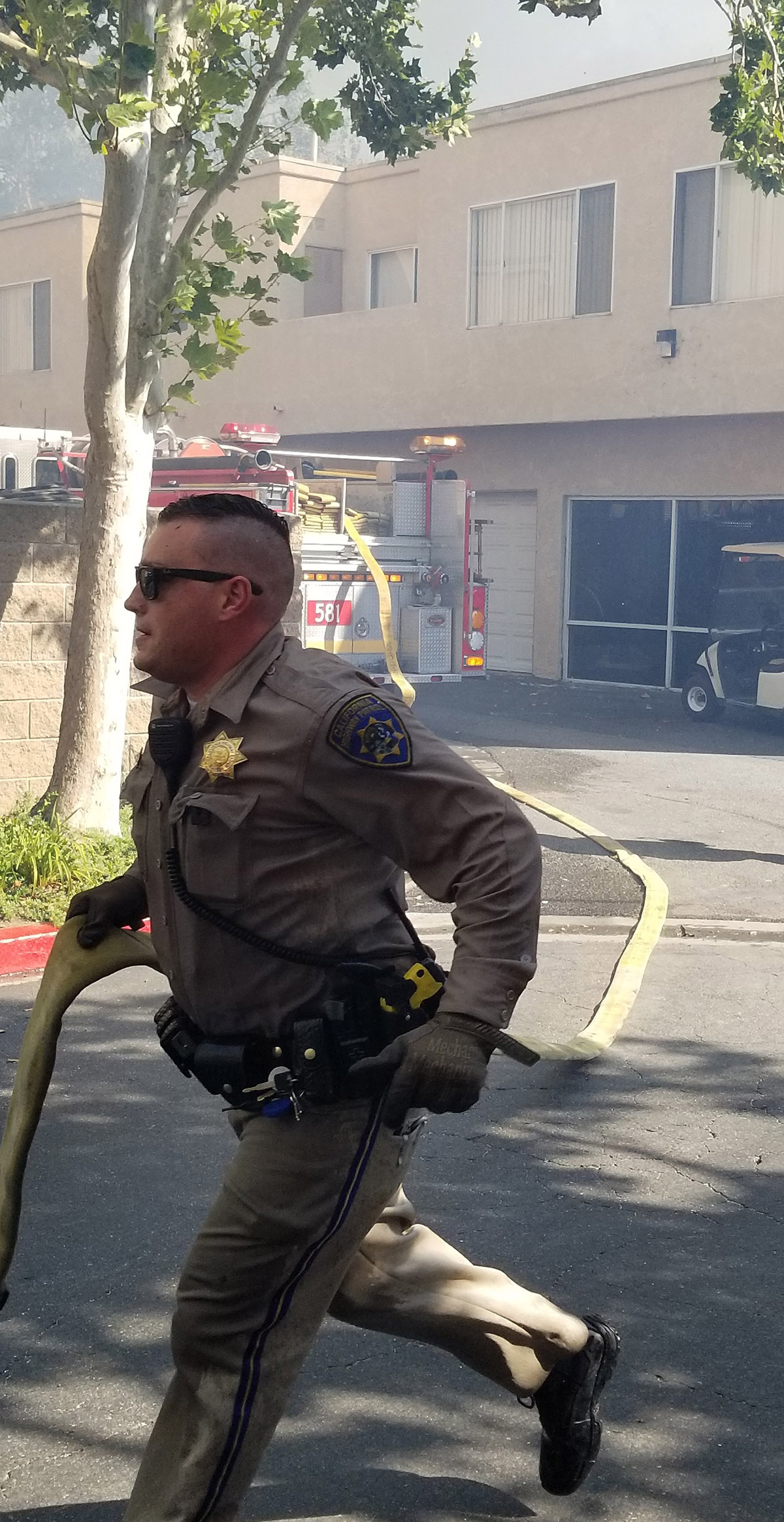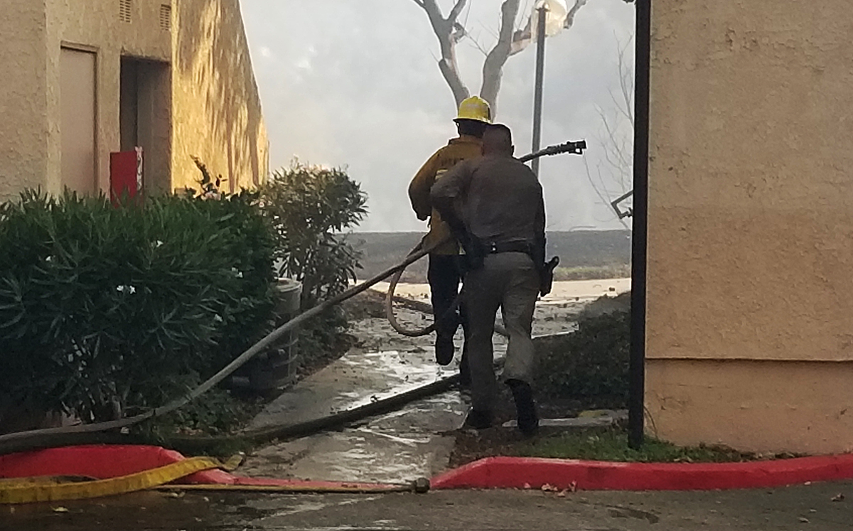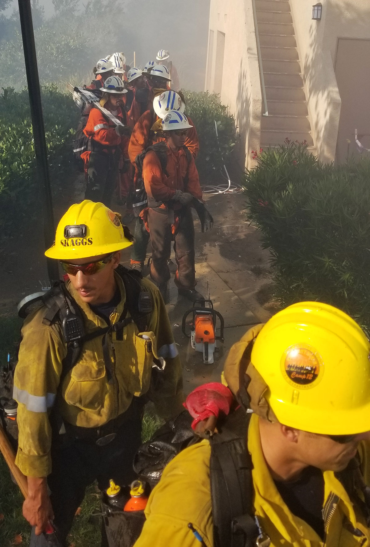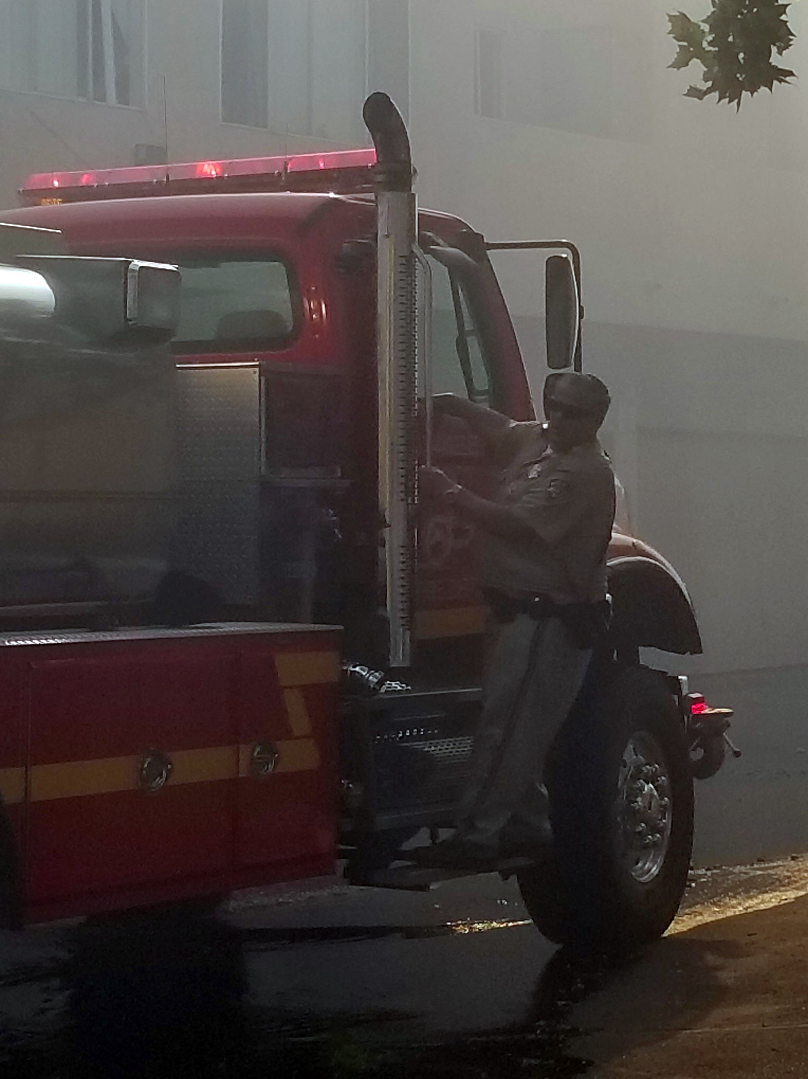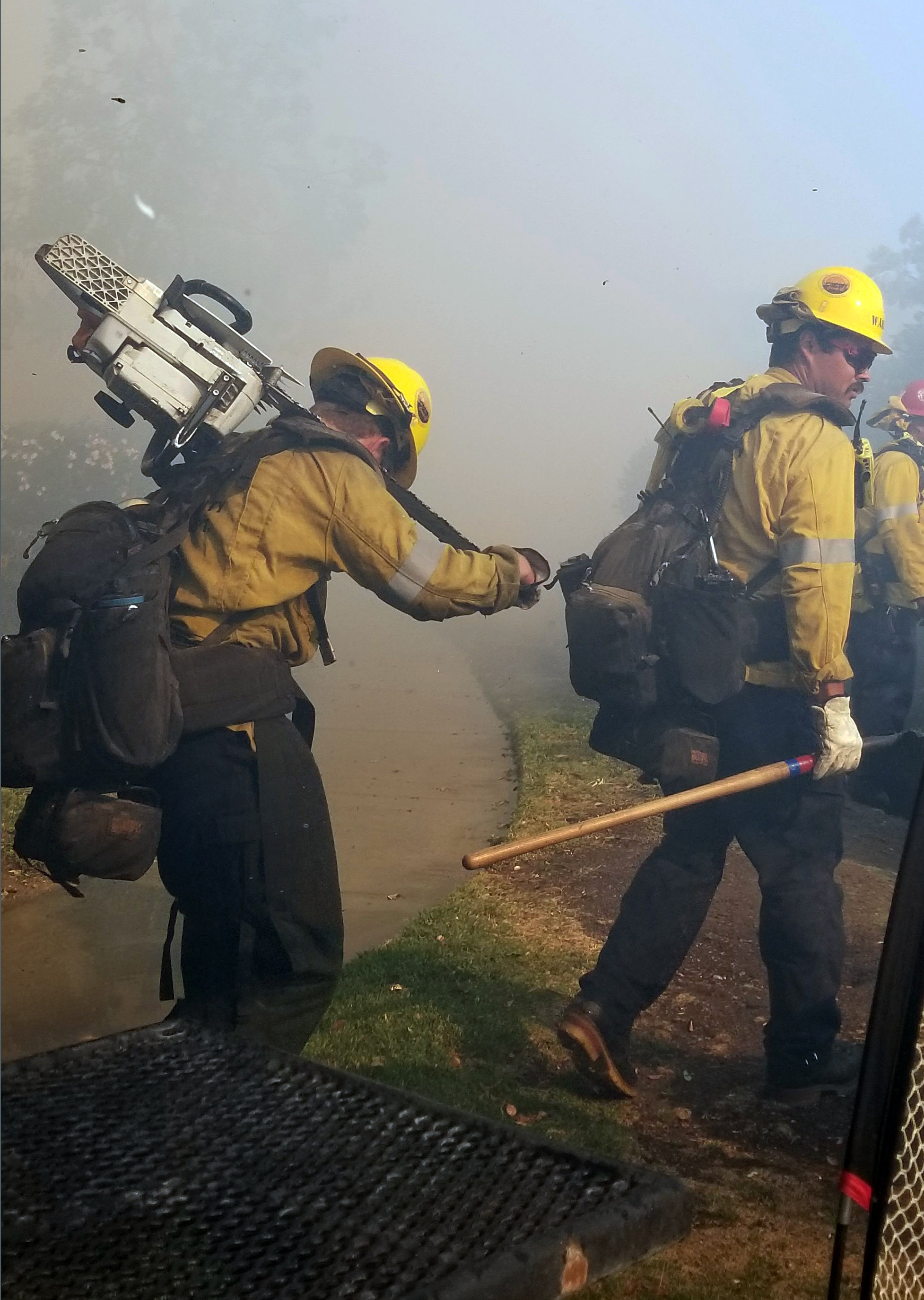 The fireman on the roof with the axe on the chainsaw was great. They all did a great job. The water drops really put it out on the hillside. It’s too bad it got into the apartments.