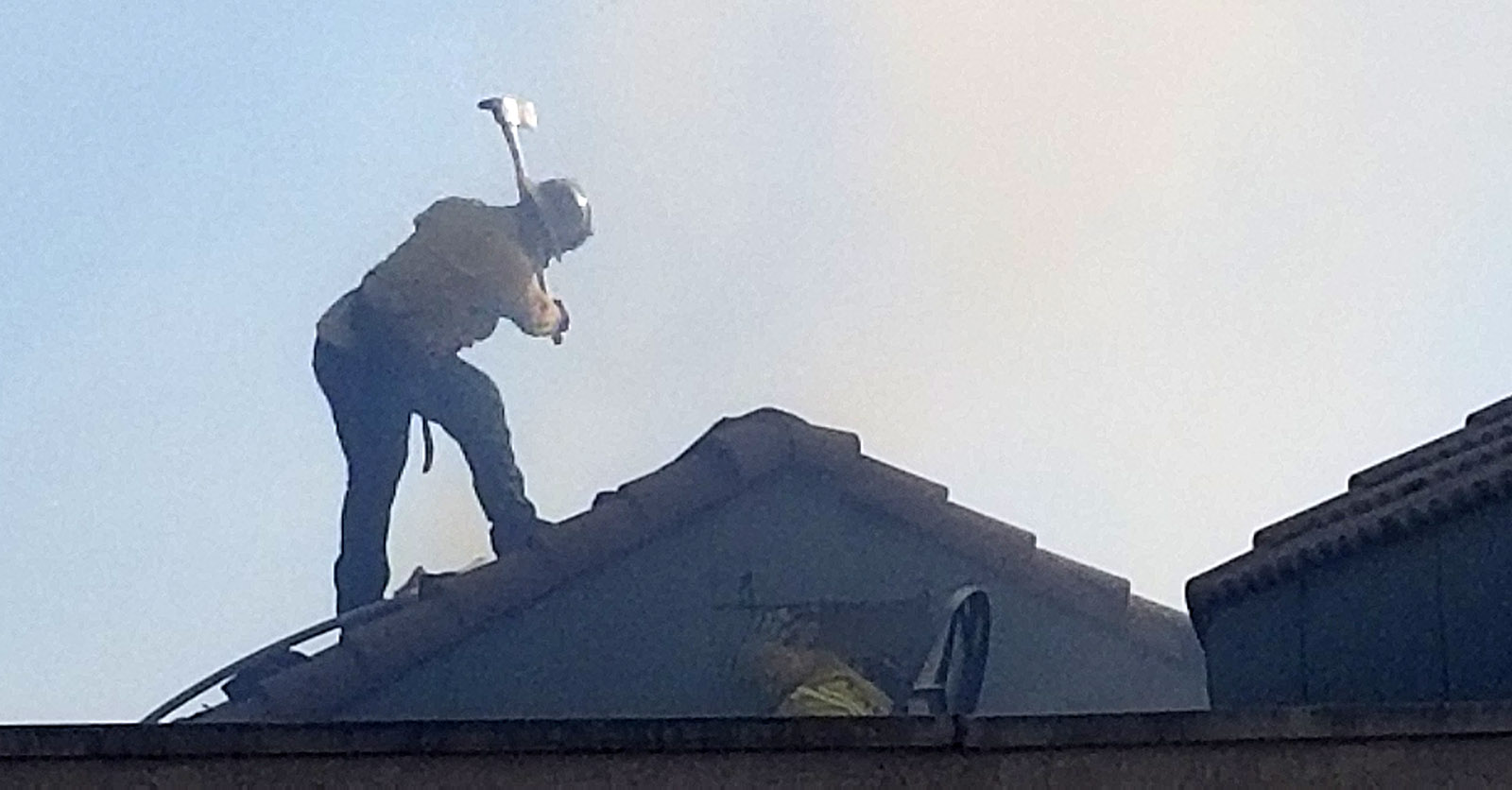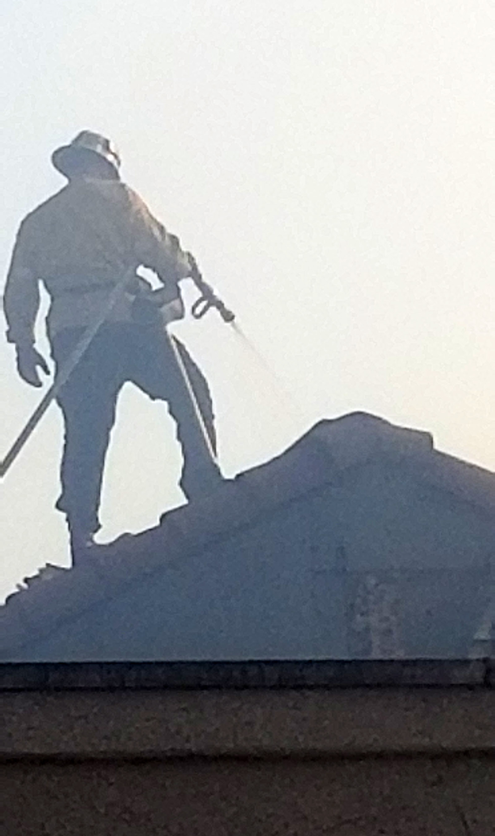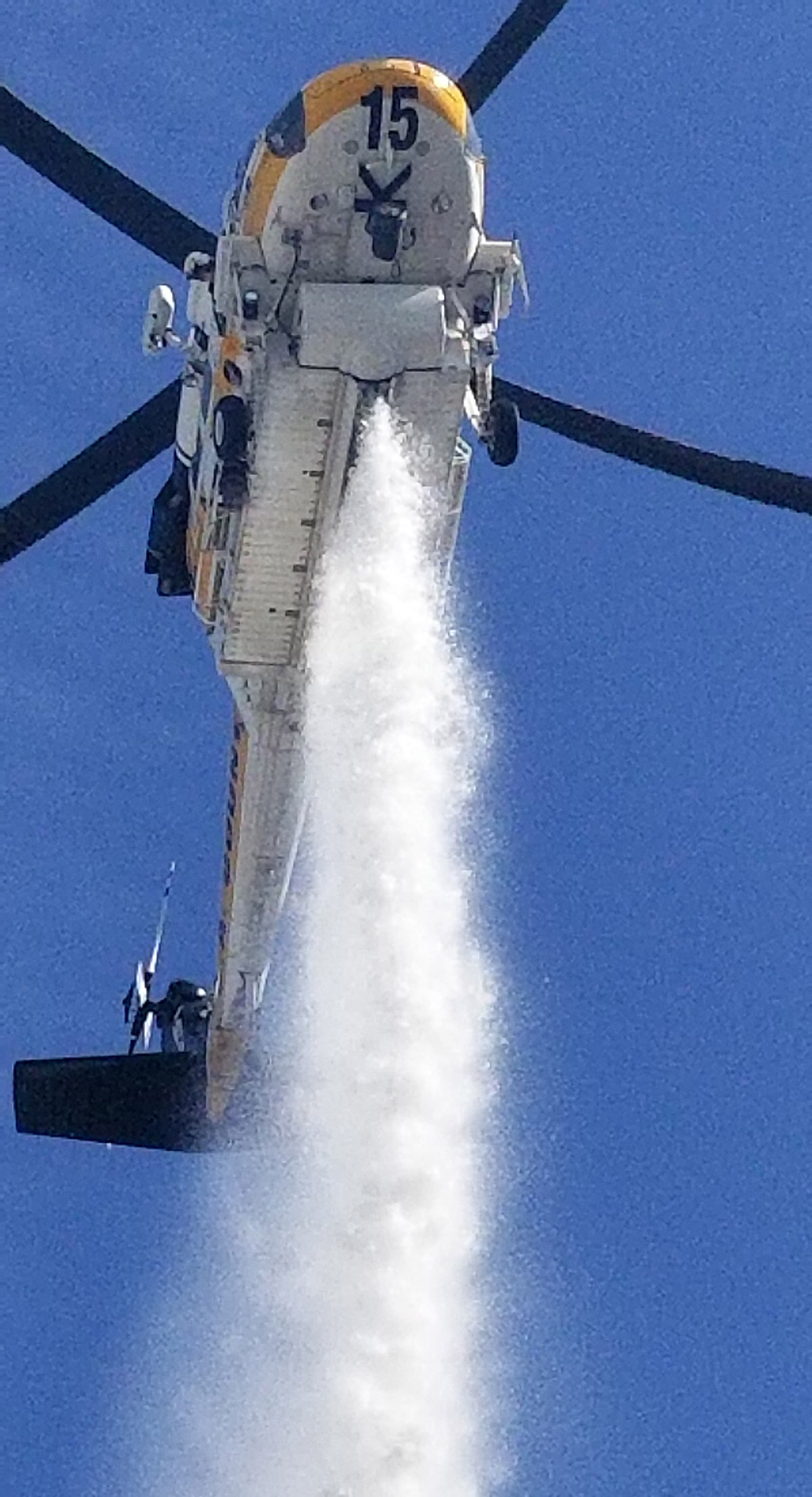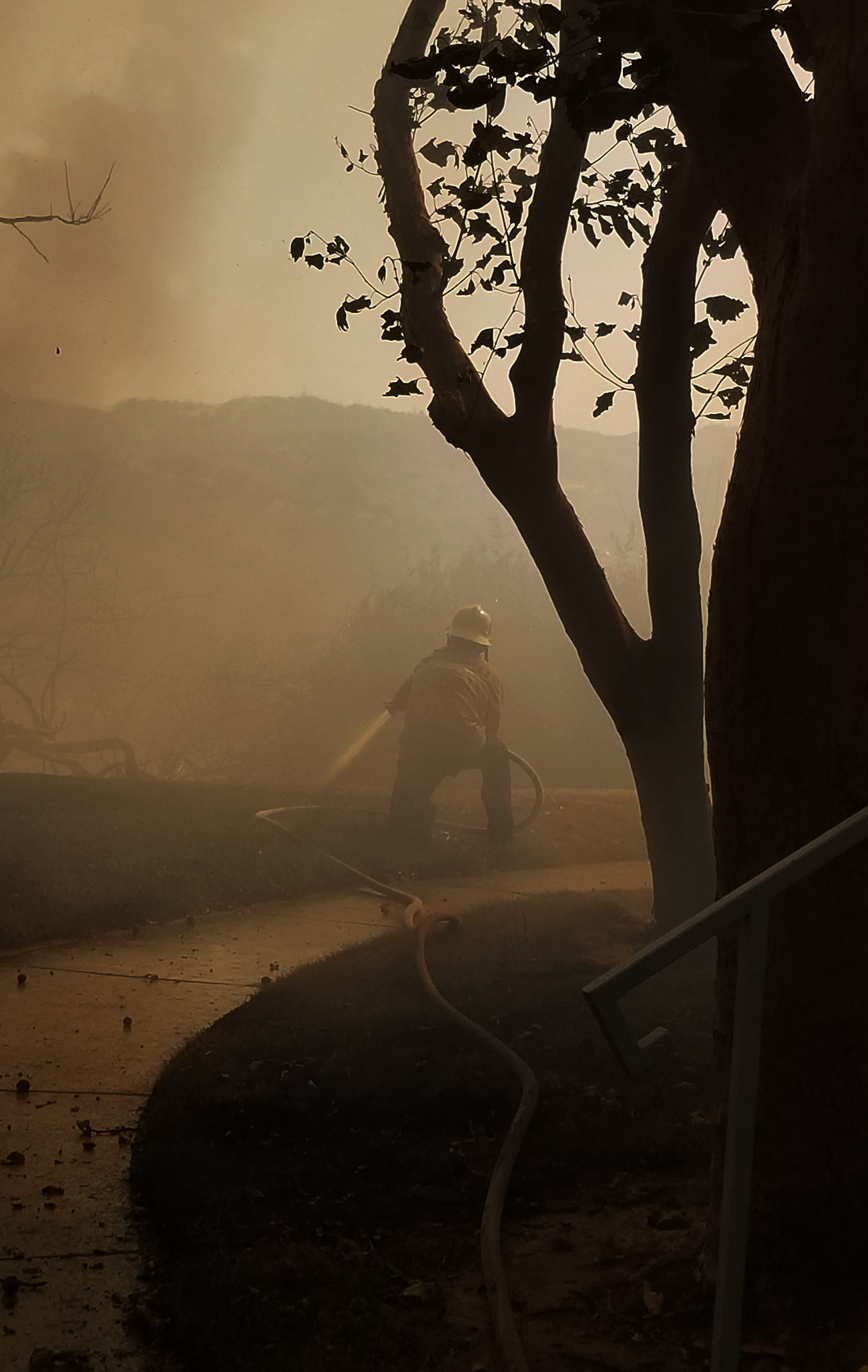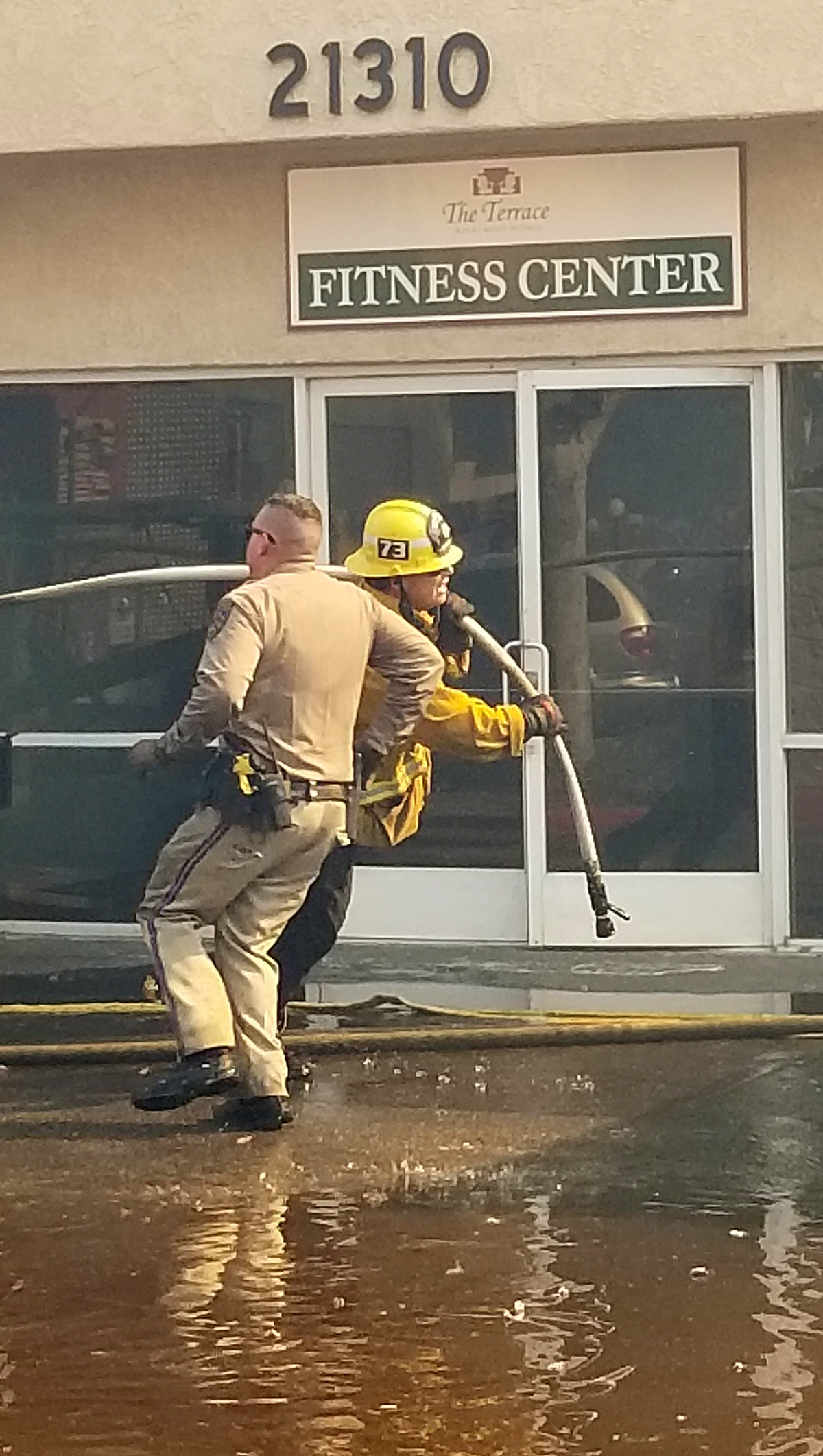 The fireman on the roof with the axe on the chainsaw was great. They all did a great job. The water drops really put it out on the hillside. It’s too bad it got into the apartments.
