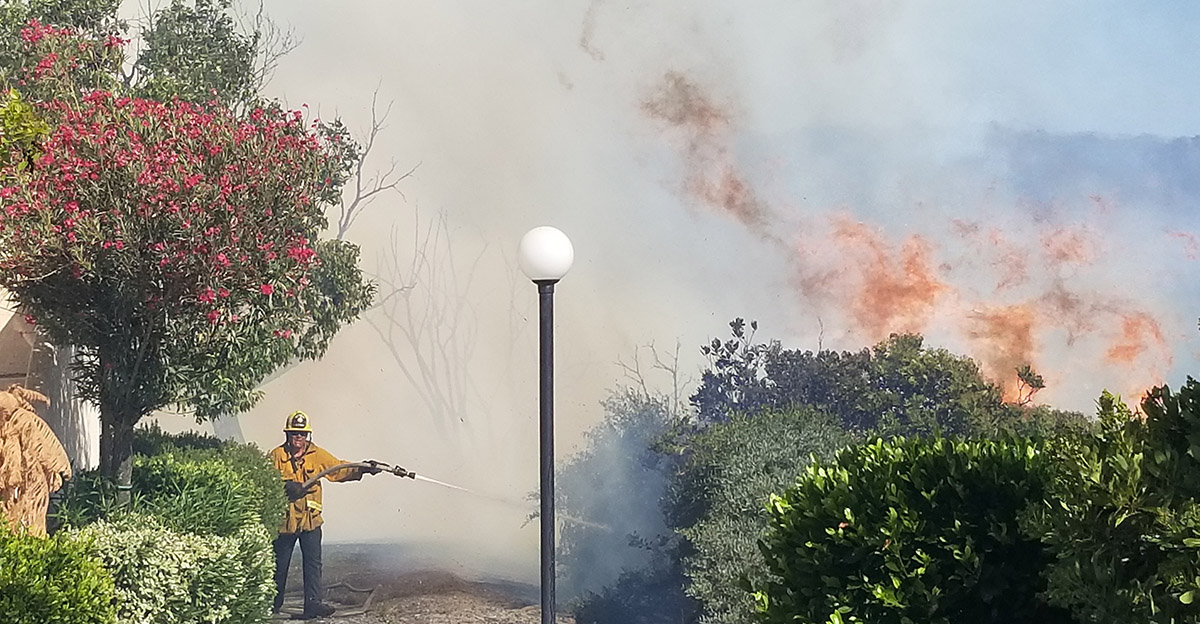 Fire burned through dense brush in the Valle del Oro section of Newhall Monday afternoon and reached the Terrace Apartments. SCVTV photojournalist Will Davison documents the battle from the first hose lines to the bitter conclusion. Also: [Read Story] [Watch Video] |