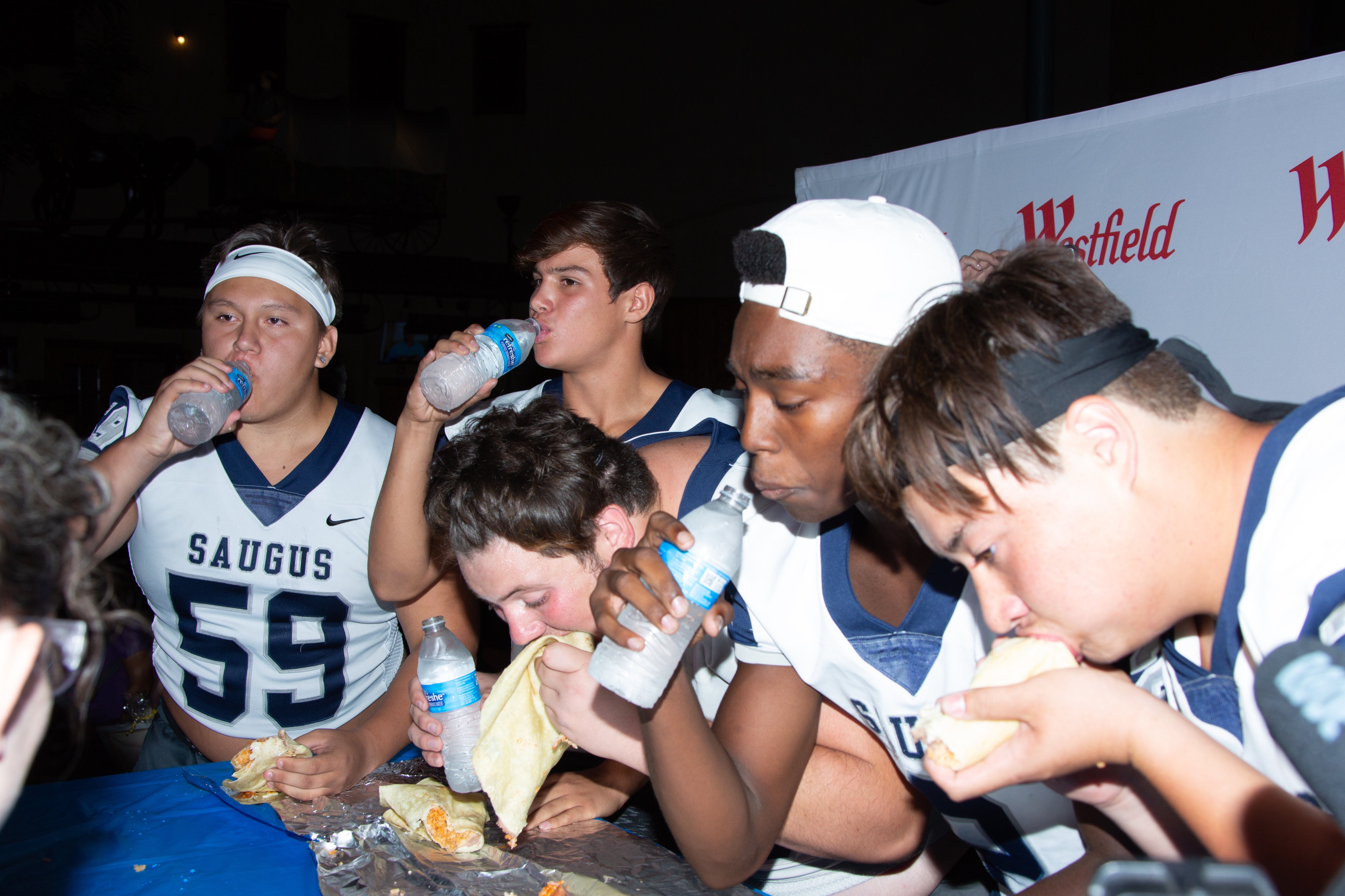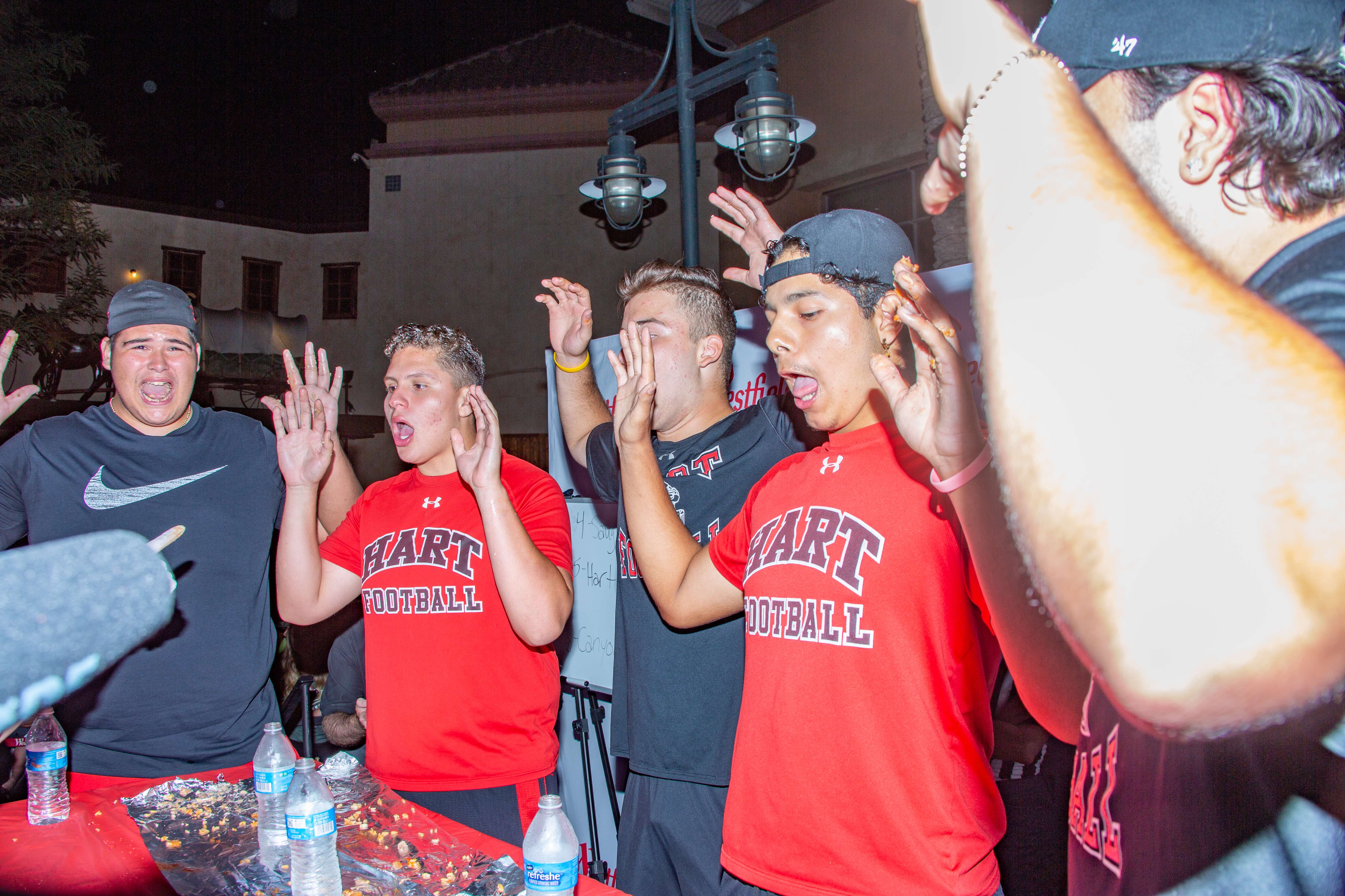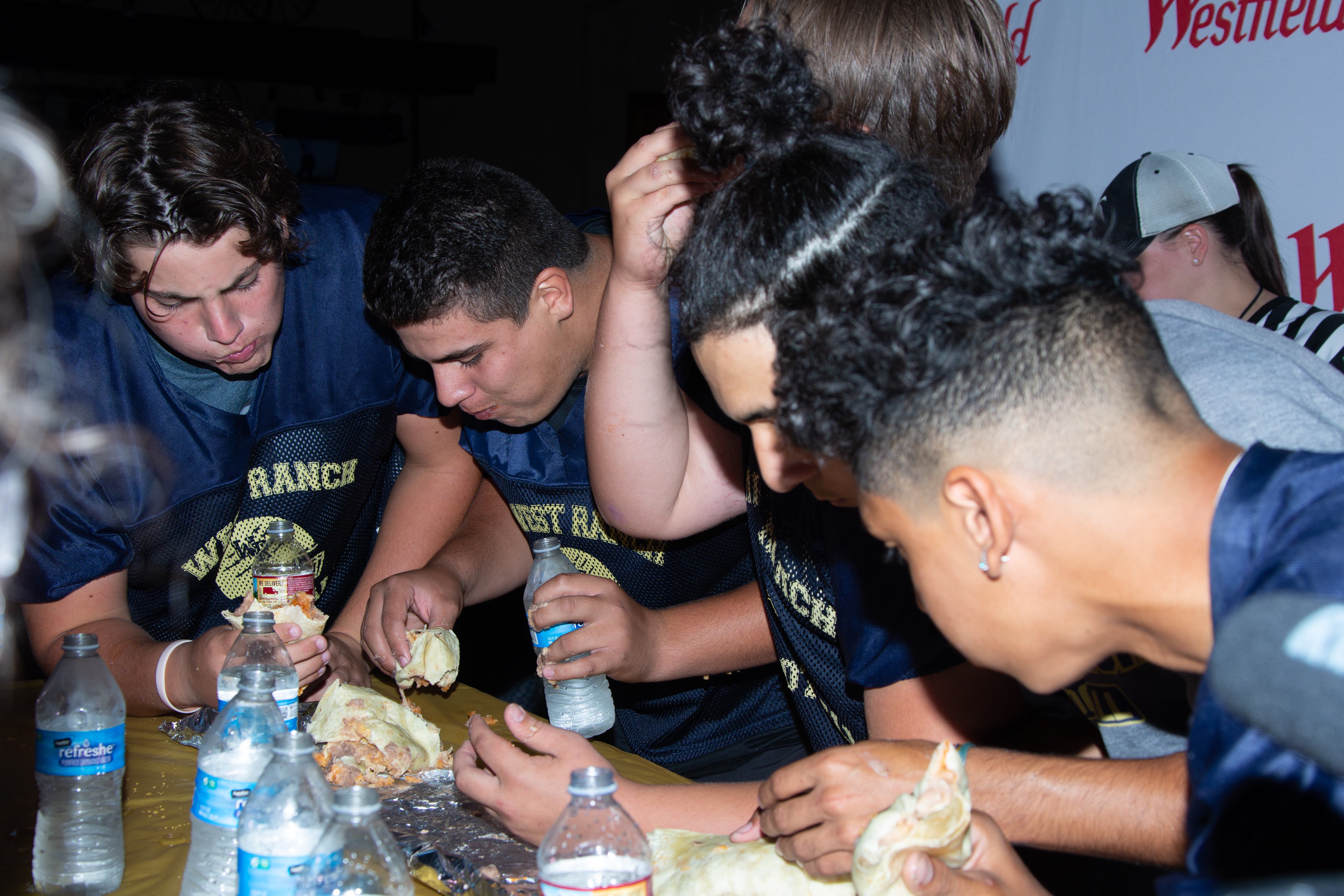 Uploaded 08/15/2018 In a race to see which school could consume their burrito the fastest, Hart High School were crowned the champions of this year’s Burrito Bowl with a record time of one minute and 26 seconds. The Burrito Bowl is a fundraiser hosted by the WiSH Education Foundation that supports each public high school within the Hart District. Hart High’s football and cheer program each won $1000 for winning this year’s event. Photos courtesy of Cory Rubin, SCV Signal