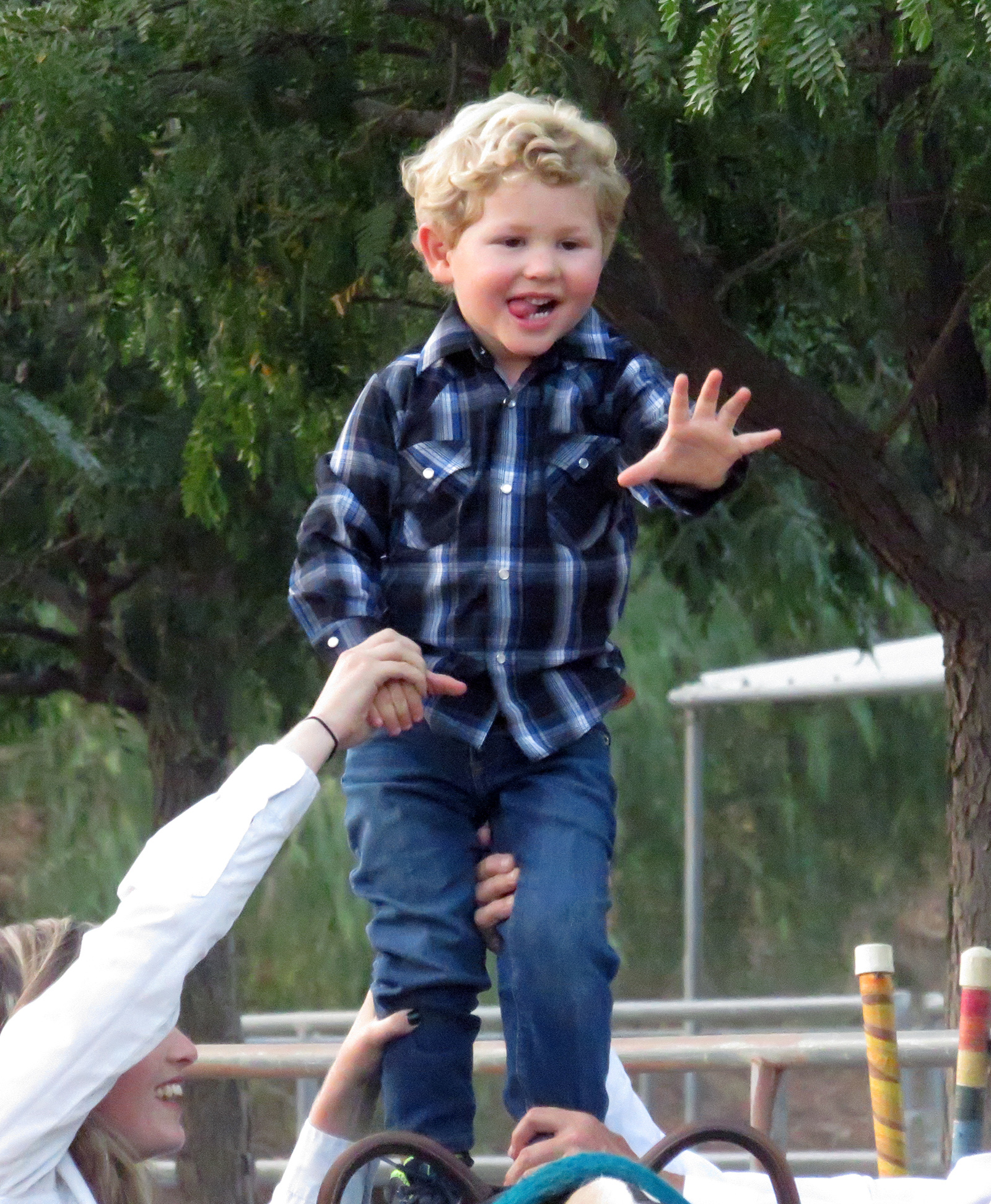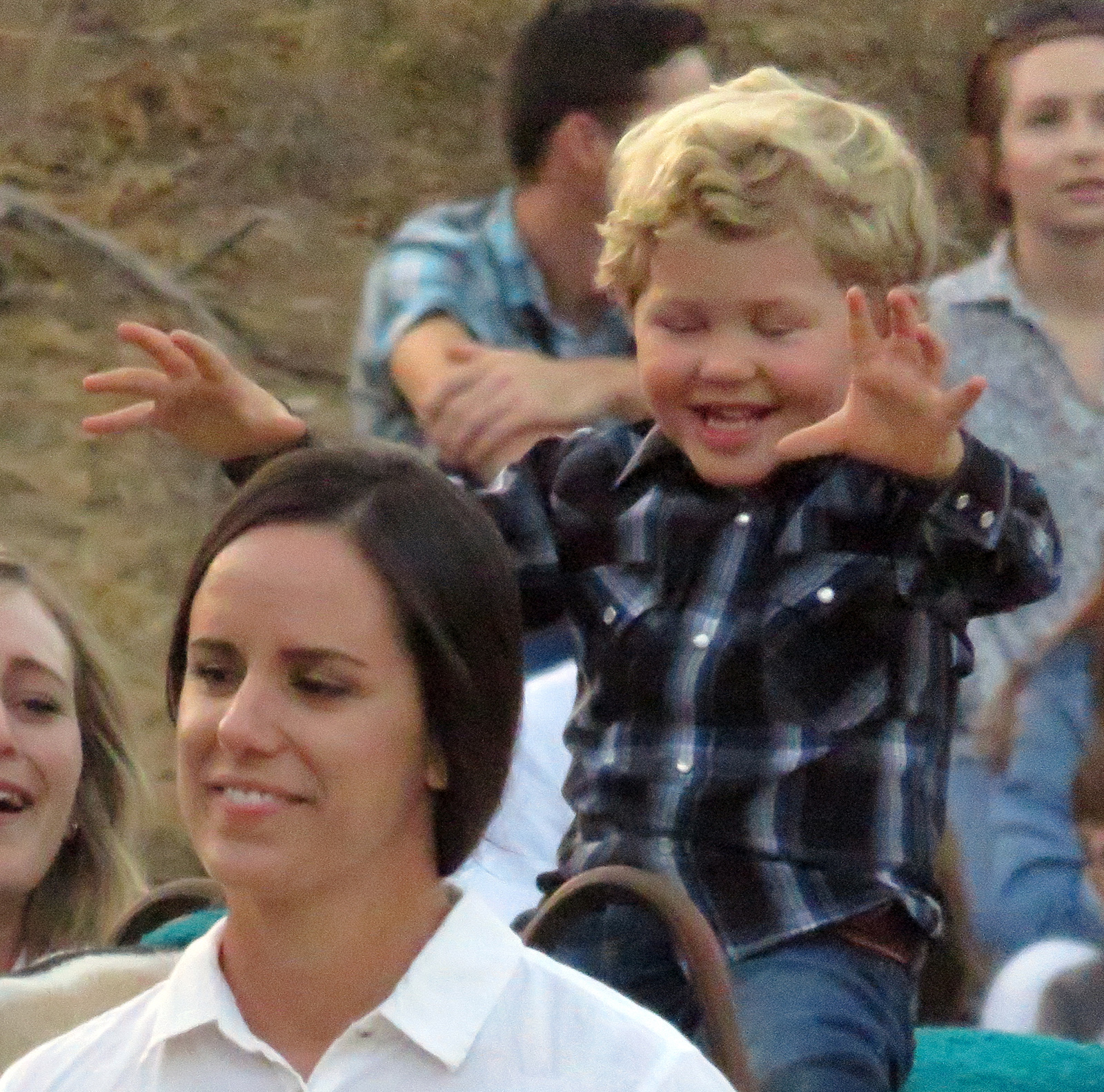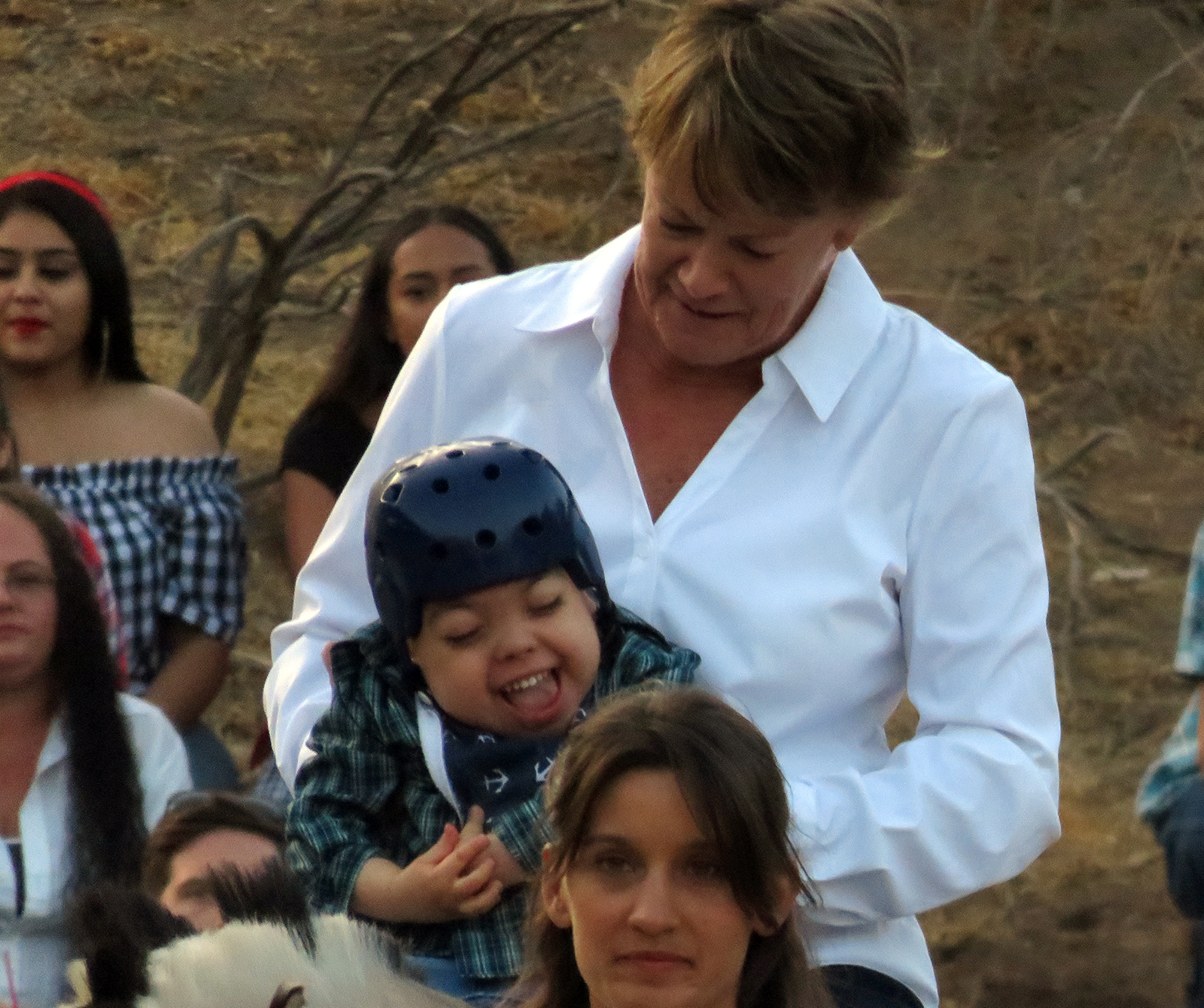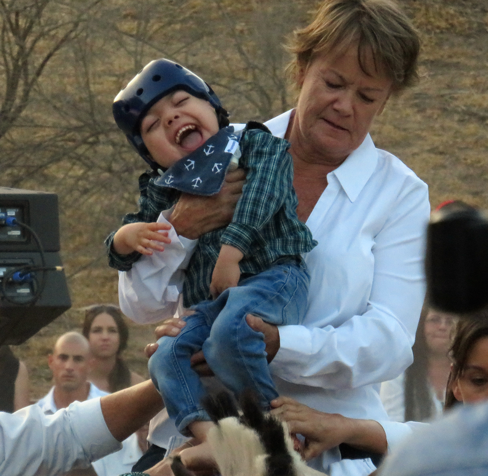 Earlier in the week, the Crawfords were invited to the ranch in Agua Dulce for the unveiling of a large sign atop the covered riding arena declaring the structure the “Crawford Family Arena.” “It was surprise,” said Redmond. “We were trying to come up with something to give to the Crawford family that would be meaningful, or significant.” Family patriarch Wayne Crawford said he was “overwhelmed” when he saw the sign. “If it wasn’t for the Crawford family, all of this wouldn’t exist,” said Redmond. “There wouldn’t be this facility, there wouldn’t be this arena, we couldn’t serve all these kids.” Crawford said the entire family has embraced Carousel Ranch. He said he still remembers the first time he saw a riding demonstration in 2001. “The work done by Carousel Ranch with kids just grabbed me the first time I saw a riding demonstration,” he said. “I was crying. It blew me away.” Daughter-in-law Jeanna Crawford took the Heart of the West event under her wing 14 years ago and transformed it into one of the Santa Clarita Valley’s “must attend” social events. It has raised more than $3.5 million to support the Carousel Ranch programs. “This event is so important for Carousel Ranch, it provides a third of our operating budget,” said Redmond. Jeanna and Kyle Crawford’s son, Caynen, 6, is a participant in the Carousel Ranch program. “No parent expects this to happen. We don’t plan for it,” said Jeanna Crawford. “The love we get here is immeasurable. It makes perfect sense that Caynen feels comfortable here because home is where the heart is, so this is where ours is.” Crawford son-in-law Eric Stroh has also given his time and talents to the Carousel Ranch cause. He served five years as president of the board and founded the Heart of the West Trap Shoot fundraiser, held each May at the Oak Tree Gun Club. “Carousel Ranch is a passion I’ve been proud of,” Stroh said. “Every time I see the kids have their lessons, it’s like the first time. It grabs your heart.”
