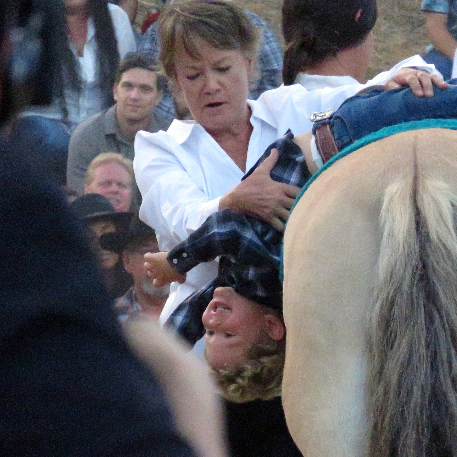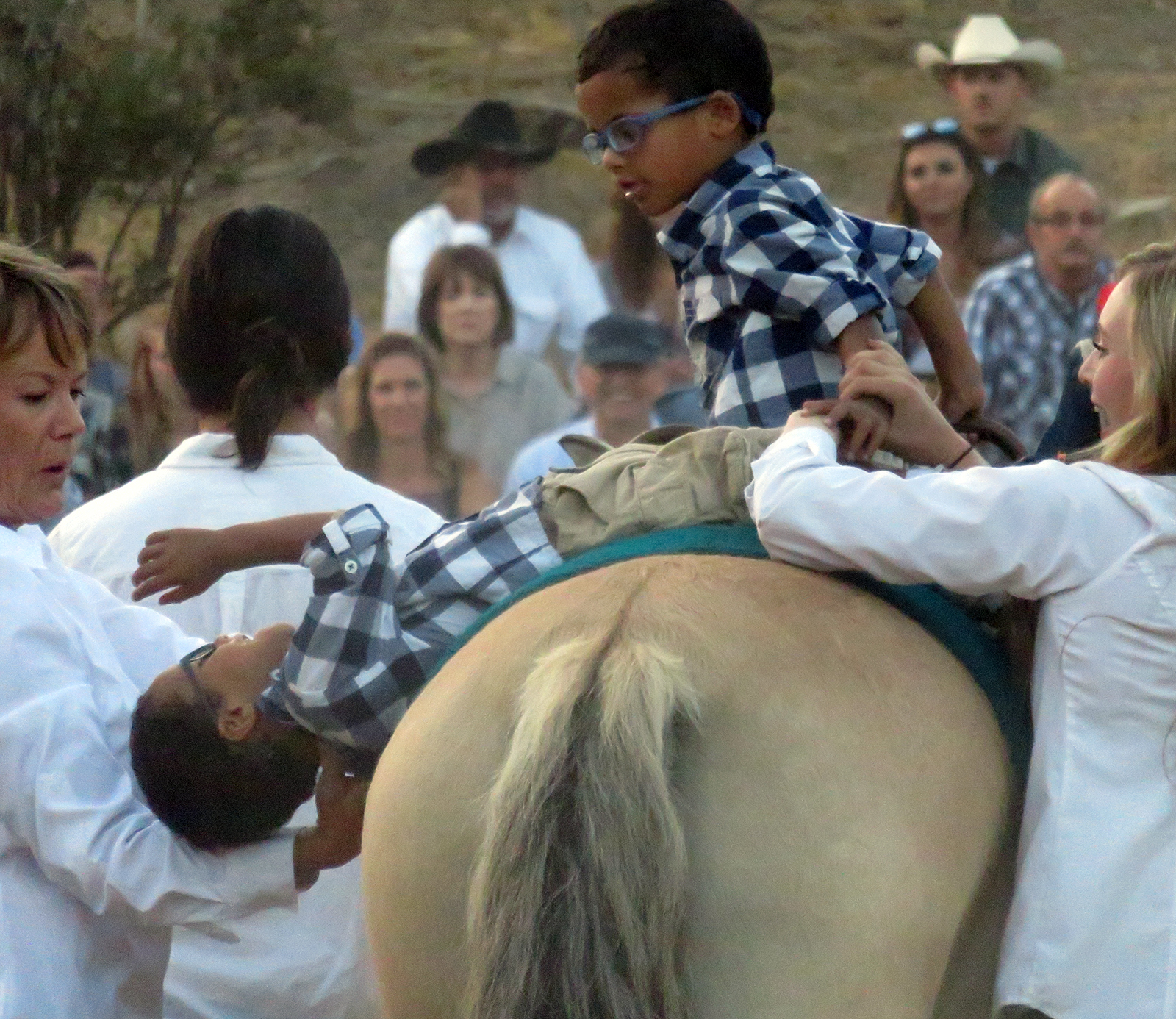 Riding Demonstration One of the most moving moments of the Heart of the West event is the annual riding demonstration showcasing Carousel Ranch equestrian therapy participants. Therese Edwards and daughter Olive emceed the riding demonstration. This year’s riders included Christopher Ochoa, 4, Luc King, 3, three-year-old twins Andrew and David Thompson and Tiffany Chairez, 18.