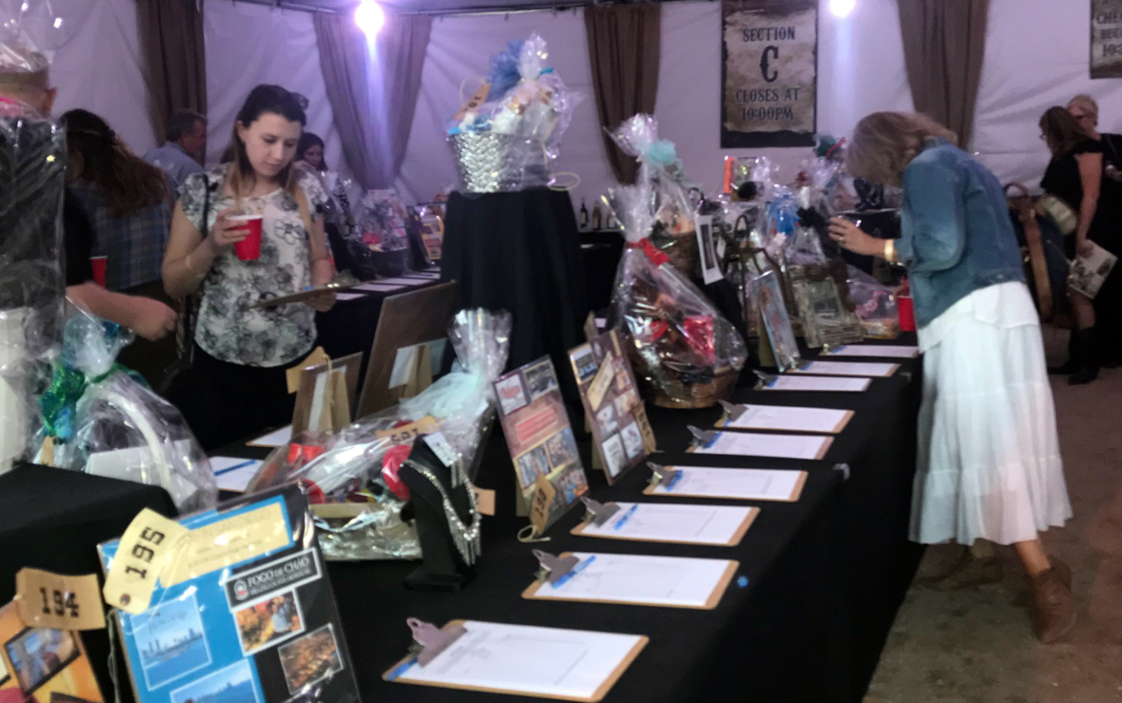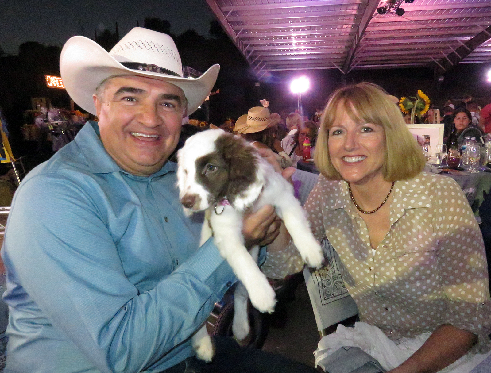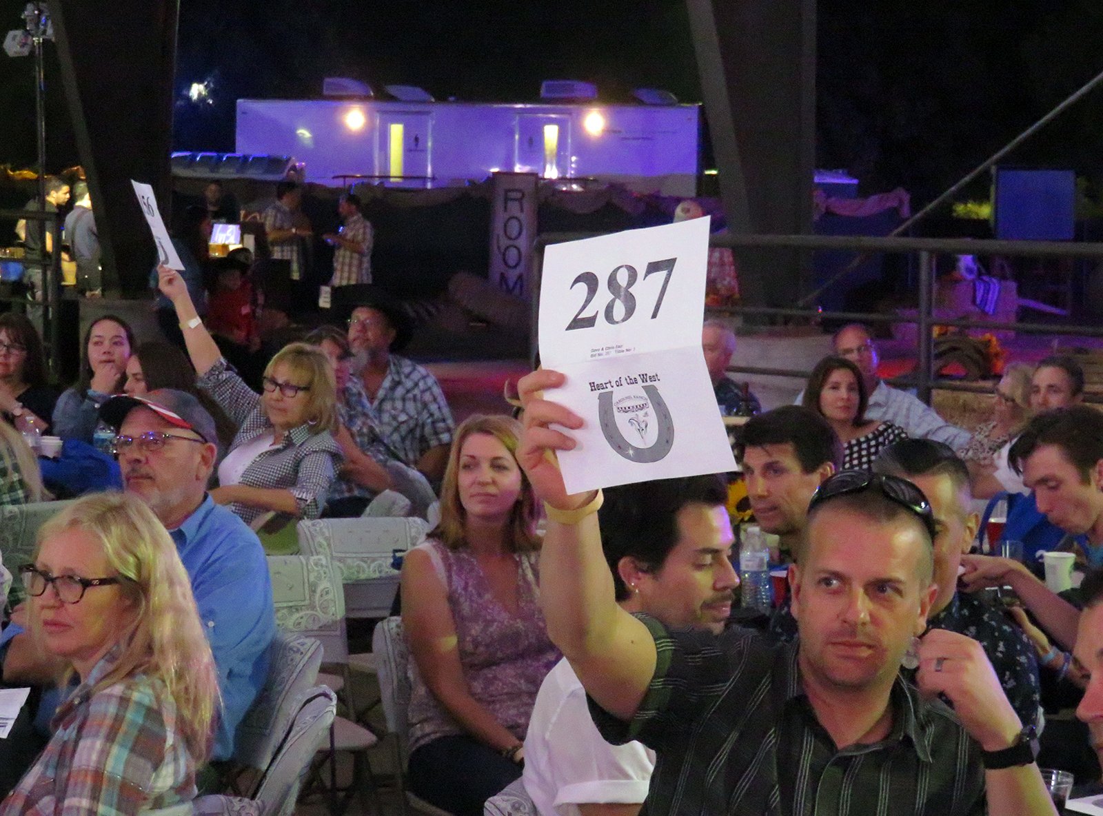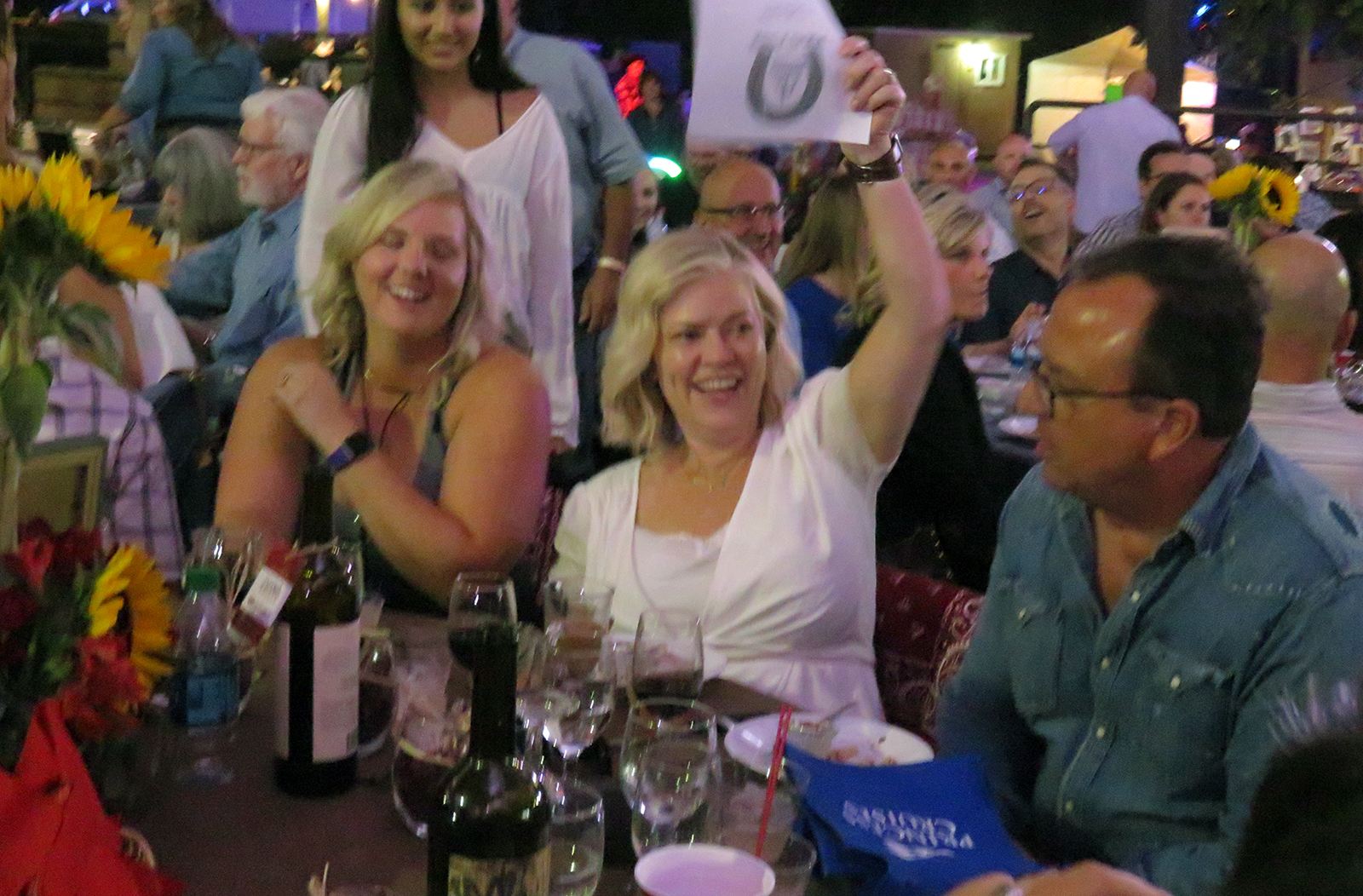 Live Auction Auctioneer Mark Drilling energetically worked the crowd during the 41-item live auction. Two puppies, an Australian labradoodle and a German shepherd mix rescue, were among the highly sought-after items. Jen Hilton purchased the rescue puppy with a bid of $2,500. “I’m a dog person. I love dogs,” she said. “They need a good home and need to be loved.” The labradoodle fetched a winning bid of $3,400 from Lori Rose-Moxie. “I wanted a puppy to play with my two grandsons,” she said. ![]() Wayne Crawford bids on the head table at the 2019 Heart of the West event, which will be held the Saturday before Labor Day. Dianne and Wayne Crawford bid $10,000 to retain the rights to the horseshoe-shaped head table for the 2019 Heart of the West event and donated another $10,000 in the “Fund A Need” appeal. Bidding frenzies erupted over several auction items including an antique 1860 Winchester Kings Improvement Rifle which may have originally been owned by R.J. Reynolds. The item was hammered down sold for $5,500. A private spa day for five at the five-star Balance Point Spa in Canyon Country raised $4,000, and a seven day stay at a 18th century French chateau was sold twice, earning Carousel Ranch $11,000. Four tickets to a sold-out Elton John concert at the Staples Center fetched $7,250, and a Princess Cruises Premiere Vacation package was sold twice, bringing in $14,000 for the nonprofit. Among the other unique items auctioned were a Sunset Trail Ride for 14 at Don-E-Brook Farms ($2,800); seven-night Tuscan, Italy, experience for one including four days of cooking classes ($4,000); Hydro Systems whirlpool bathtub and $1,000 in tile from Marty’s Flooring ($4,750); wine and food pairing at Chef Daniel Otto’s new Newhall restaurant Old Town Junction ($4,750); “Liquid Assets,” top shelf drink creations for 30 and your own signature martini on the menu for a year at Salt Creek Grille ($3,500) and a Channel Islands Harbor Tiki Bar cruise for six ($3,500). At the end of the auction, Drilling lauded the event volunteers. “Without the volunteers, Carousel Ranch doesn’t run, this event doesn’t run,” he said. The Fund-A-Need appeal alone raised nearly $90,000. A moving video featuring parents of Carousel Ranch children, as well as well as interviews with the Crawford family, preceded the appeal, which had entry points for everyone from $10,000 down to $100. “This is an opportunity for all of you to get involved, to give and make a difference this evening,” he said. “Tonight, you saw how the dollars make a difference so raise your bidder cards high.” Sponsorships, silent auction items and donations are still being tallied from the Heart of the West event. Following the dinner and auction, guests were invited to participate in casino games, cornhole games and dancing, and to visit the Carousel Ranch “kids” in the General Store and Tack Shack. “I want to thank everyone who attended Heart of the West,” Redmond said. “We raised so much money. Everyone was so generous.”
