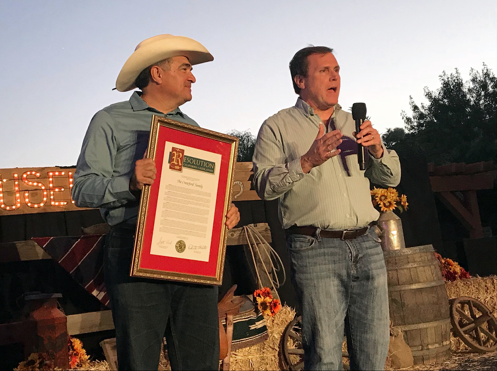 Crawfords honored The Crawford family – Wayne and Dianne Crawford, Jeanna and Kyle Crawford and Eric and Jacque Stroh – were honored for their 17-plus years of financial support and volunteer efforts on behalf of Carousel Ranch.