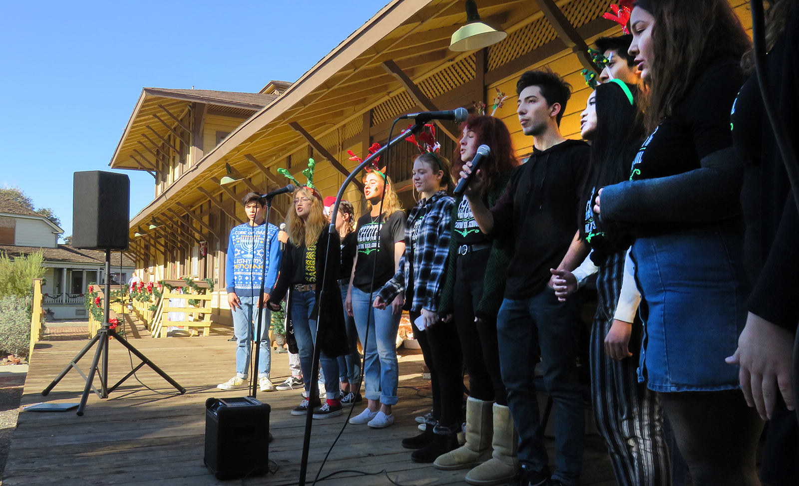 Uploaded 12/01/2018 It was beginning to look a lot like Christmas Saturday at Heritage Junction where the Santa Clarita Valley Historical Society hosted its 37th annual Christmas Open House. The event opened with Father Craig from Our Lady of Perpetual Help Catholic Church conducting a Blessing of the Animals at the Ramona Chapel, followed by caroling from the Canyon High School Madrigals at the 1887 Saugus Train Station, the duo of Beth Shemely and Marc Cornelius performing on the porch of the 1878 Kingsburry House, and tours of the historic homes, all decked out for the holidays by the Questers. Crafts for kids, photos with the vintage 1900 steam locomotive from actor Gene Autry’s collection, and a special visit from Santa Claus rounded out the day. Heritage Junction is located inside William S. Hart Park in Newhall. It is open for tours Saturdays and Sundays from 1-4 p.m. (Note: Holiday closures coming in late December.)