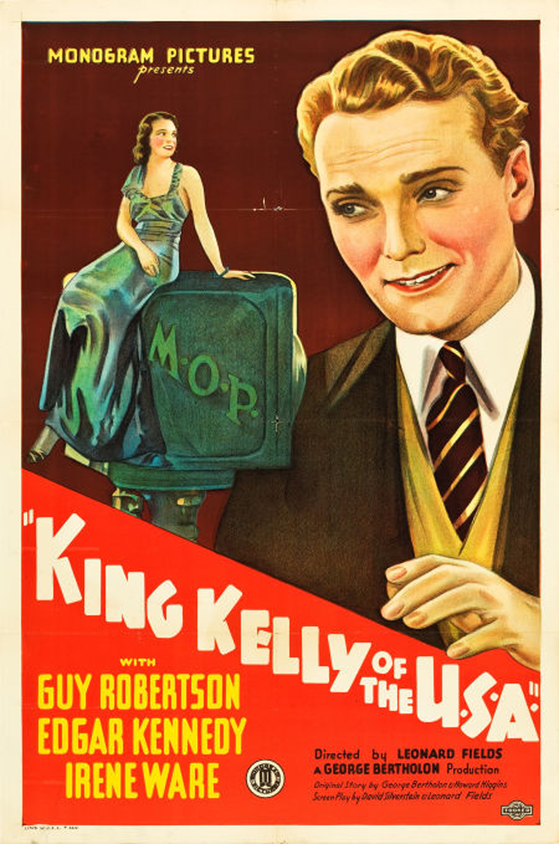 Directed by Leonard Fields (1900–1973), "King Kelly" features singer/showman Guy Robertson in his only known film role as James W. Kelly. Better known to movie fans are some of the supporting cast members, including Irene Ware (1929's Miss USA; there was no Miss America then) as the love interest; and the busy character actors Ferdinand Gottschalk as King Maximilian and Edgar Kennedy as Happy Moran.
