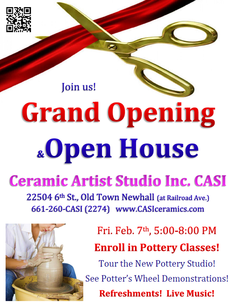 Town Newhall. Come to the grand opening to see a live potter's wheel