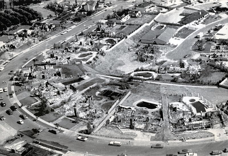 A Chatsworth neighborhood is destroyed in the Clampitt Fire, which started Sept. 25, 1970, in Newhall and burned through to the sea where it merged with another fire.