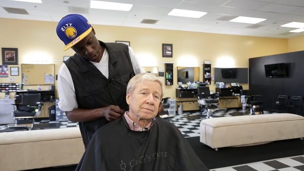 Board of Equalization Member George Runner visits a black-owned barbershop and beauty salon in the Natomas area of Sacramento to get a fresh haircut and talk state proposals to implement a sales tax on services.