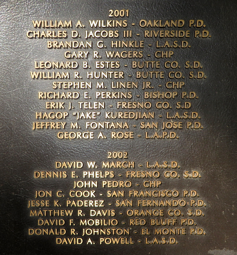 California Peace Officers Memorial in Sacramento. Among the more recent